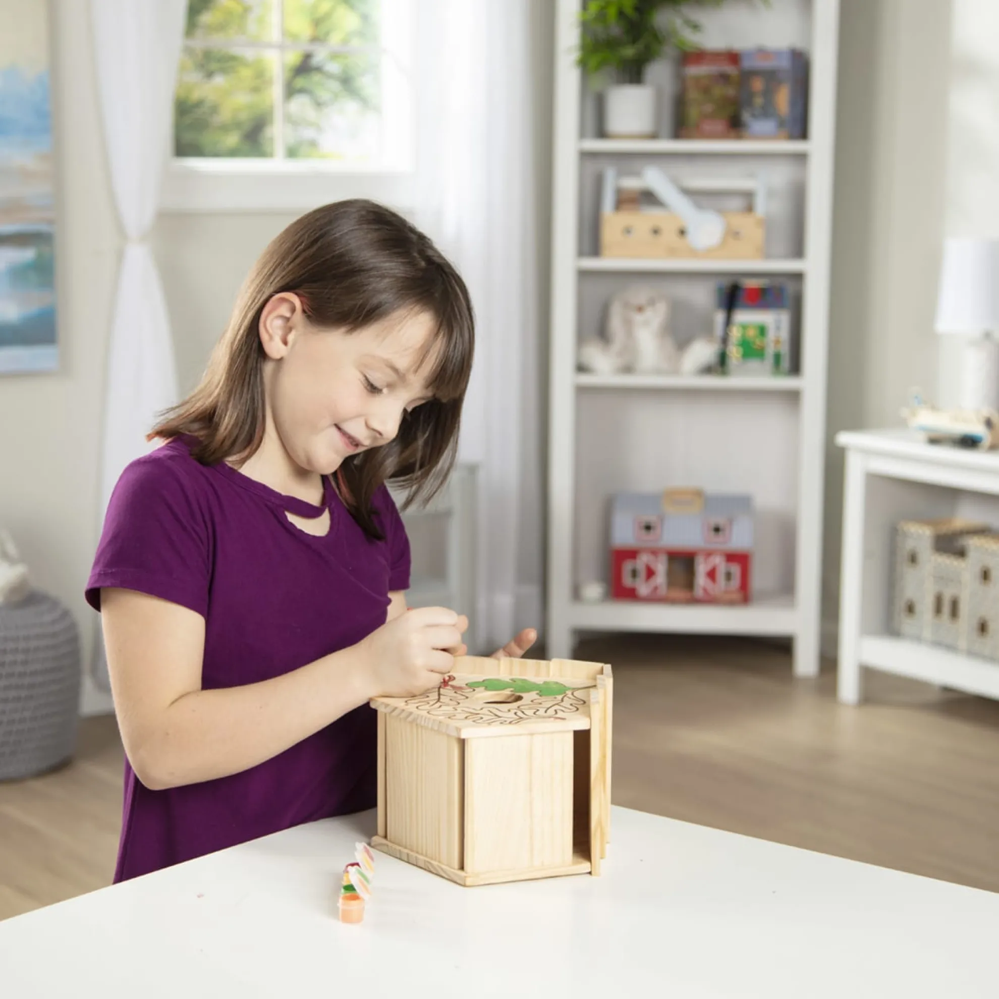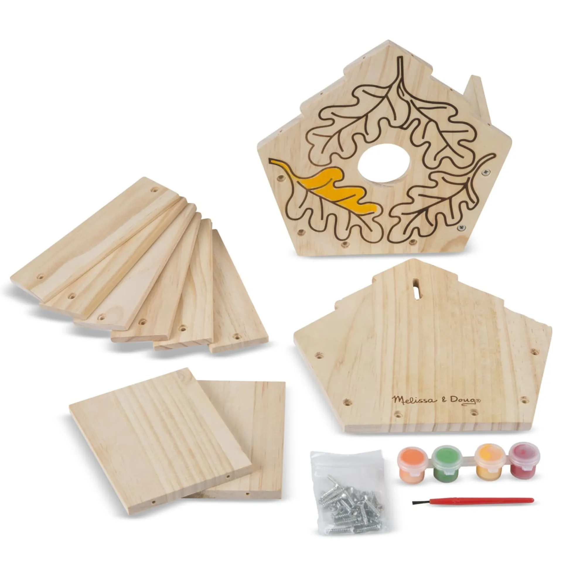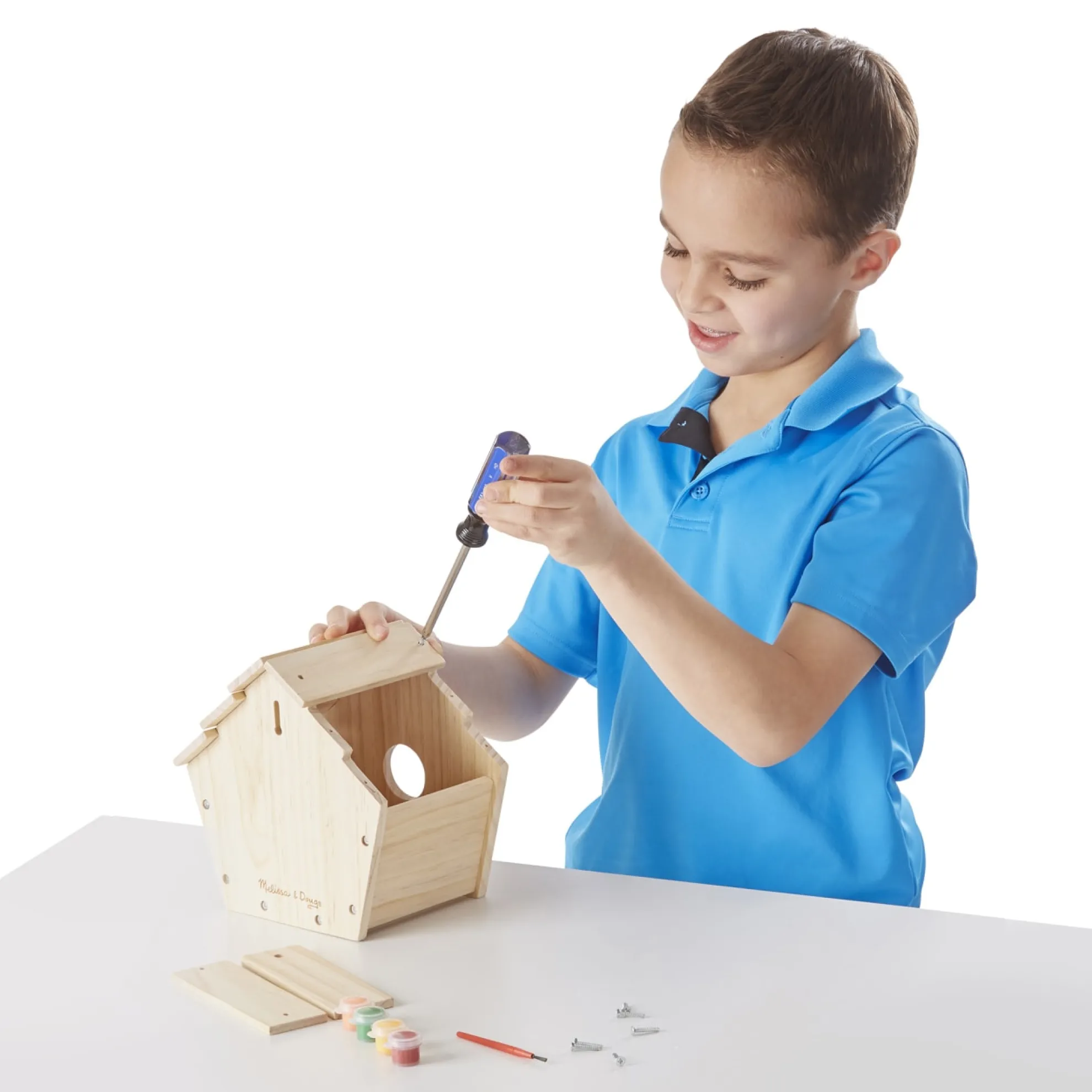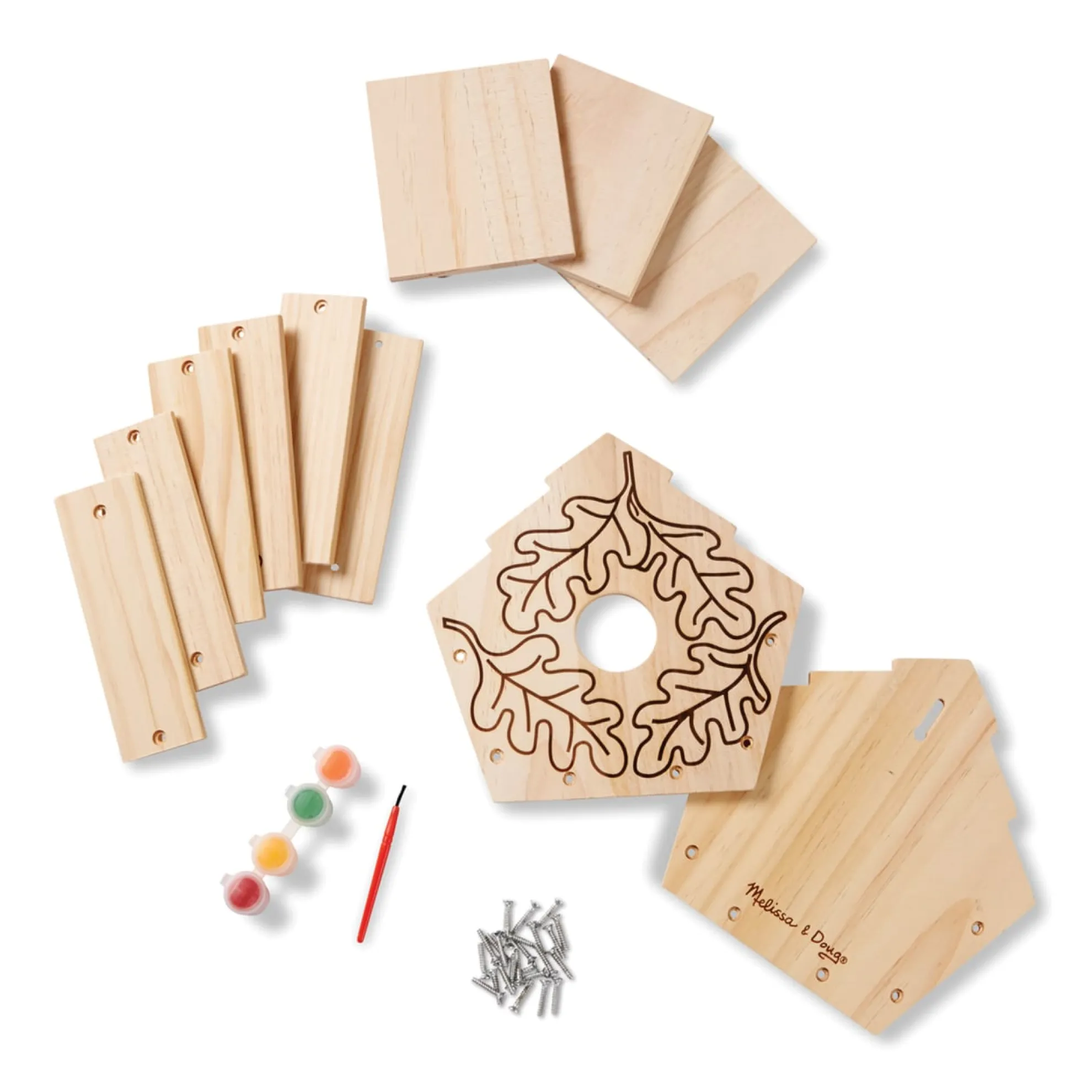 Add your unique personal touches to make an original craft inspired by you and your imagination! It’s fun and easy to assemble and decorate this adorable wooden birdhouse. Hang in the yard and feathered friends will love their home-tweet-home! Wooden panels, screws, 4 pots of paint and brush included.