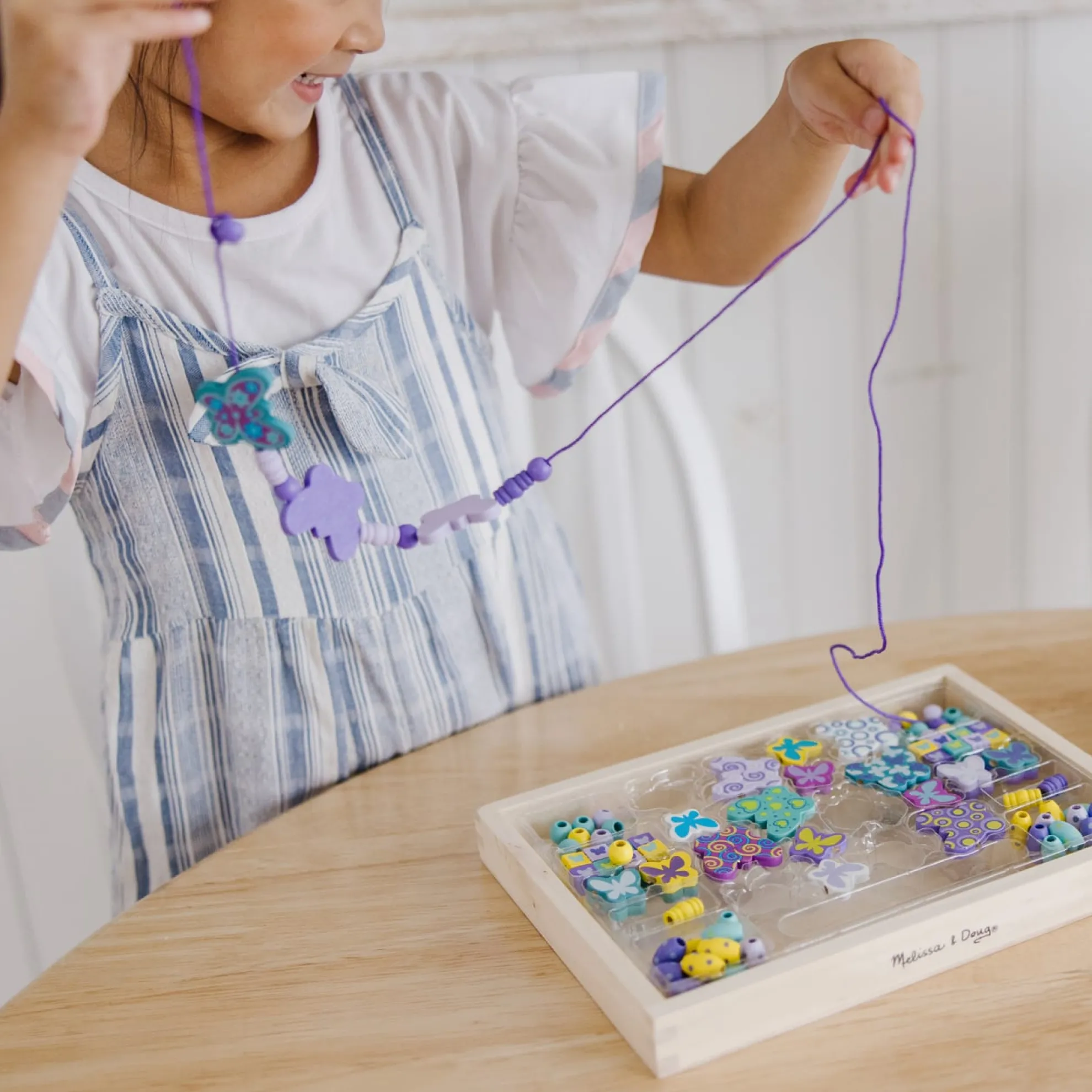 Here is a butterfly collection to set your young jewelry designer’s heart aflutter! Beautifully detailed and hand-crafted, the wooden butterfly beads in this kids jewelry set coordinate with five cords and an amazing selection of accent beads for distinctive creations.