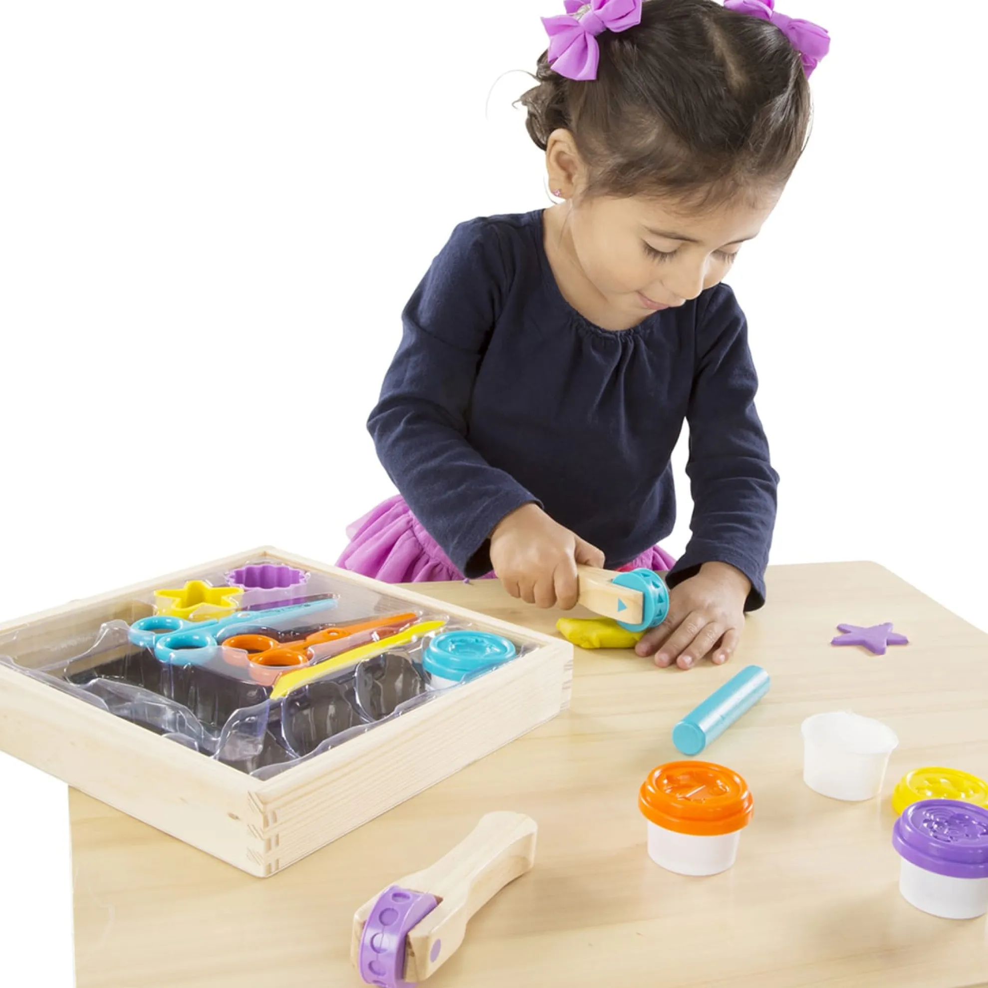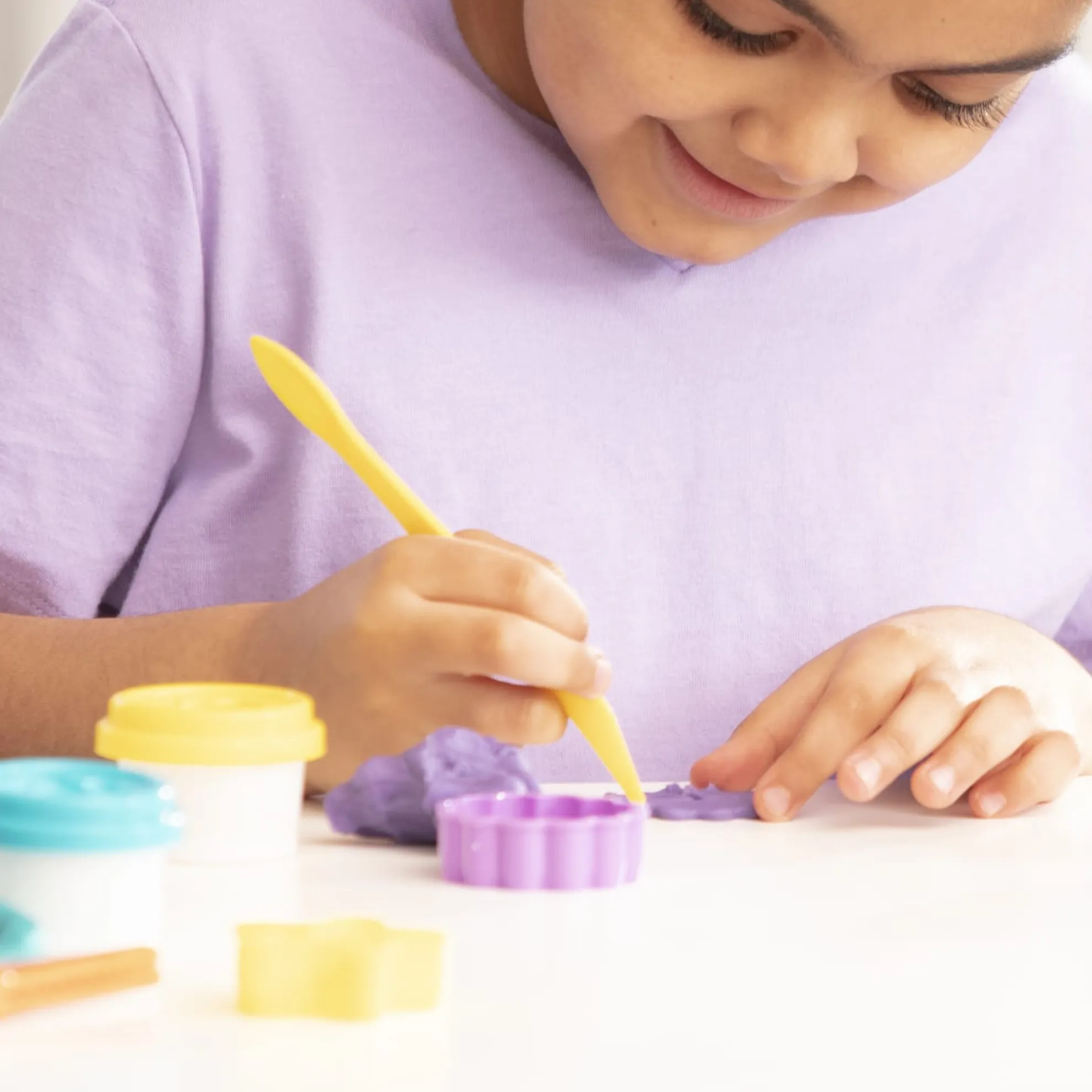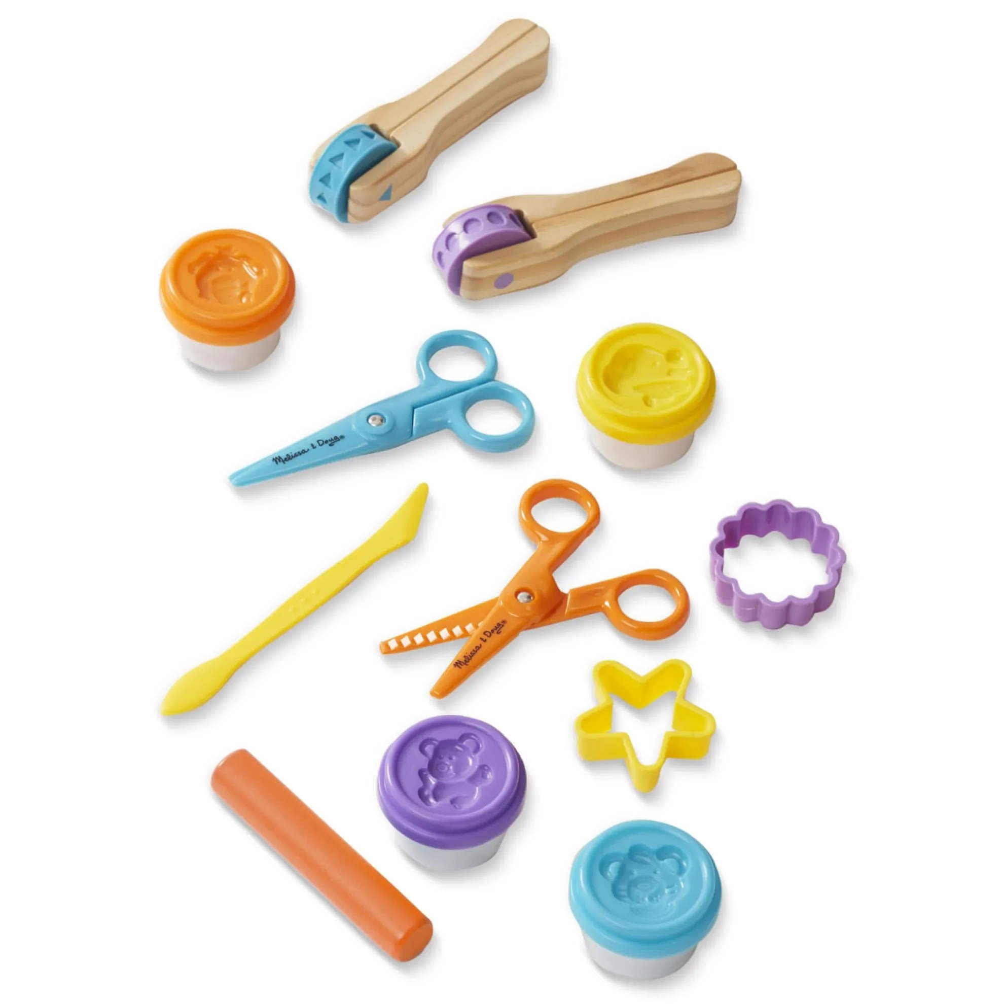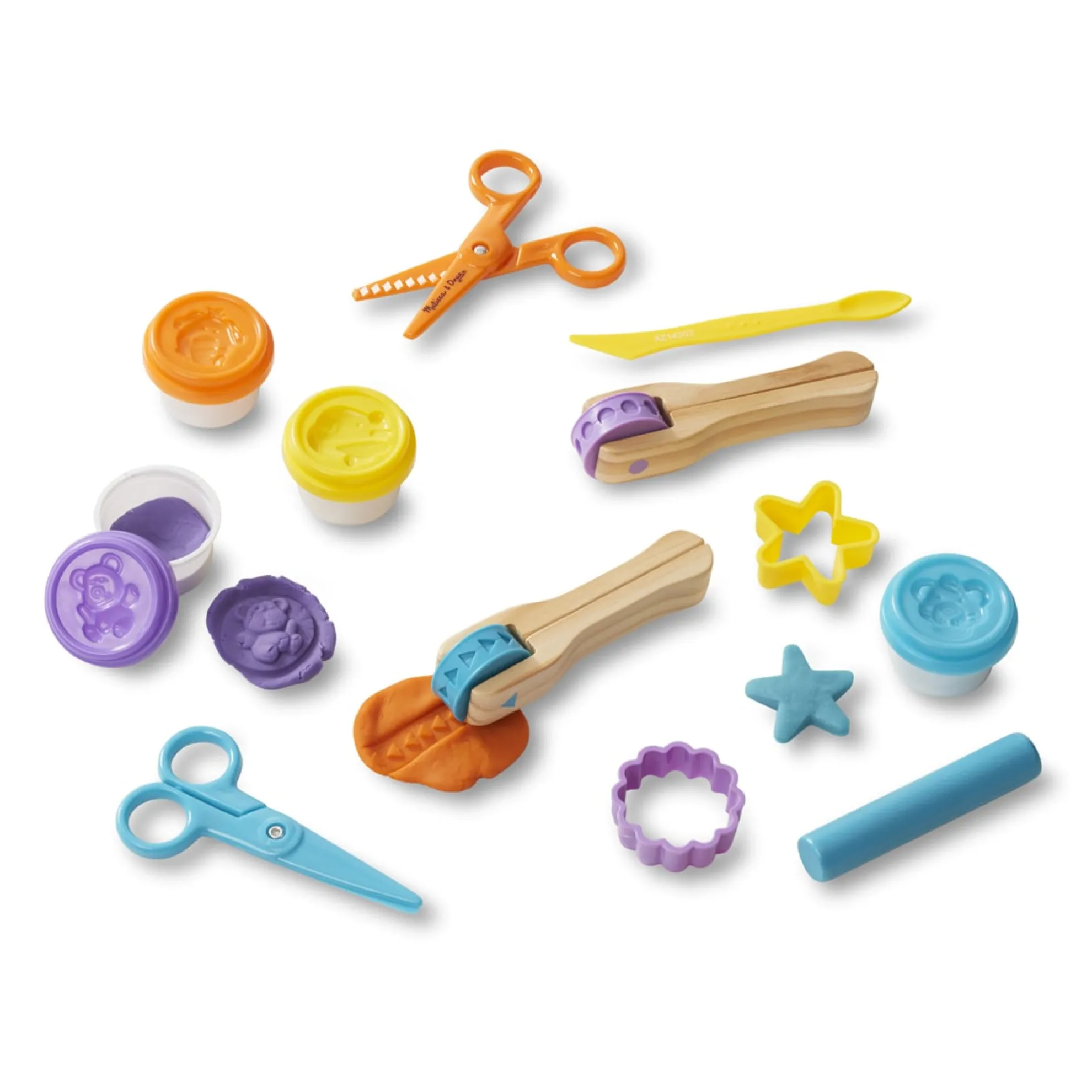 - Includes 2 pattern wheels, 2 scissors, 2 dough cutters, 4 tubs of modeling dough, sculpting tool, and more
