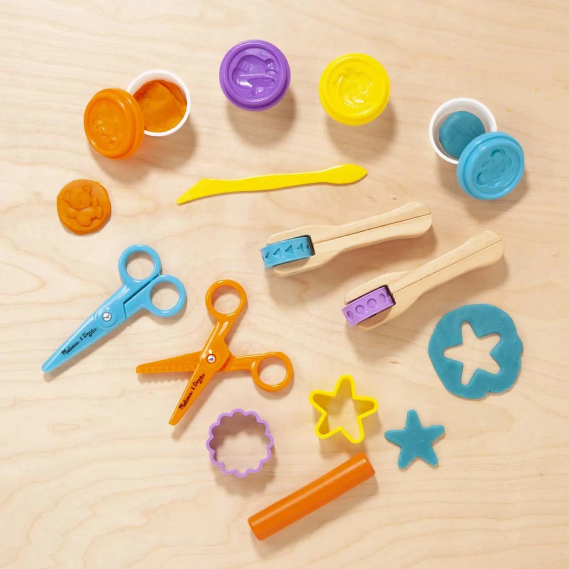 - Colorful set of modeling dough and sturdy wooden tools
