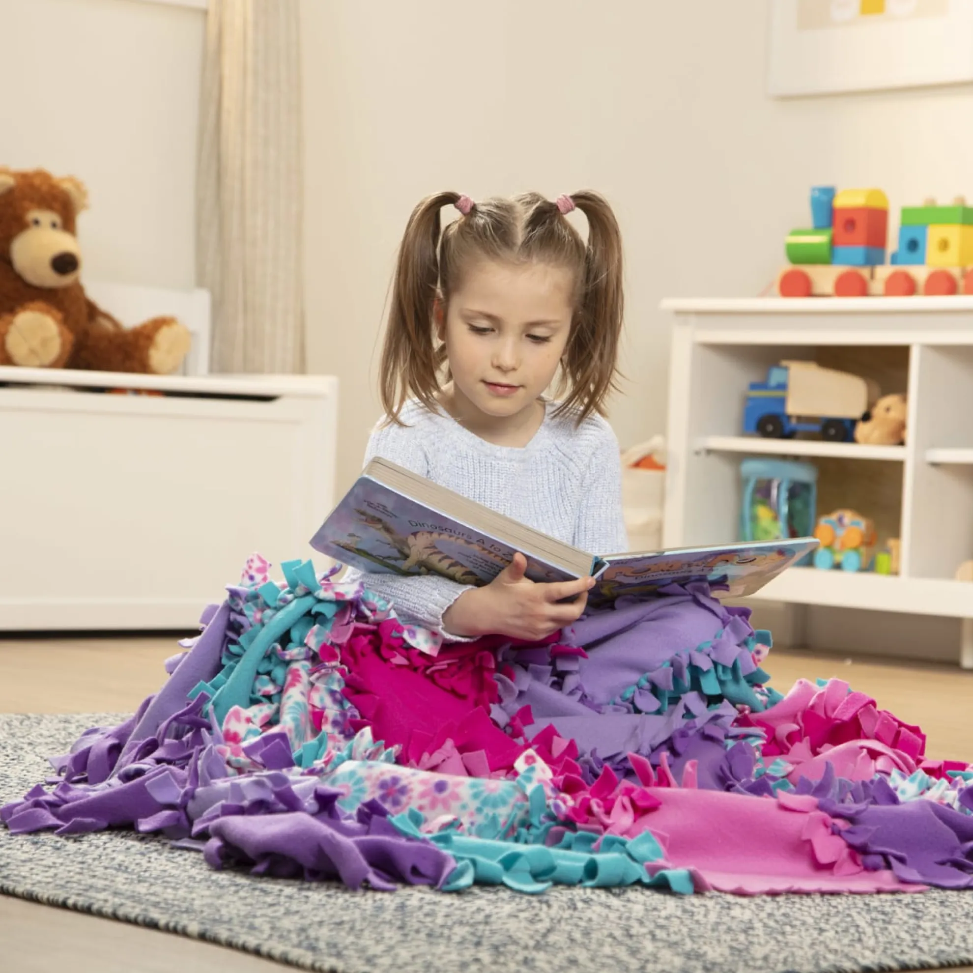 Want to make a super-cozy quilt in no time? Just knot it! We’ve made it fun and easy to make an extra-large, colorful fleece blanket. Just tuck the extra-wide and extra-long fringe into slits and tie single knots to piece together a uniquely you quilt! The fabric pieces are super thick, soft, and fuzzy on both sides for extra snuggling. The 48 12-inch by 12-inch pieces include fringe that’s nearly two inches long, making knotting fast and simple. The finished quilt is approximately four feet by five feet – or piece together fewer pieces to make scarves or smaller projects! Illustrated instructions and design ideas are included.