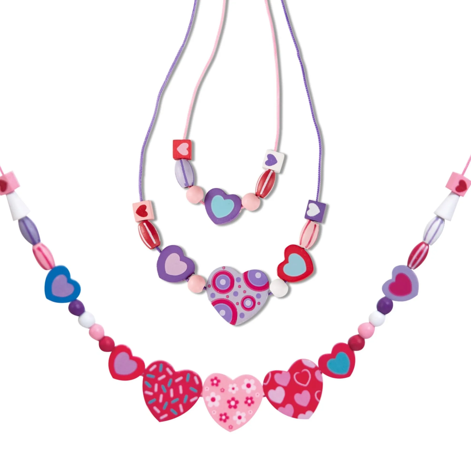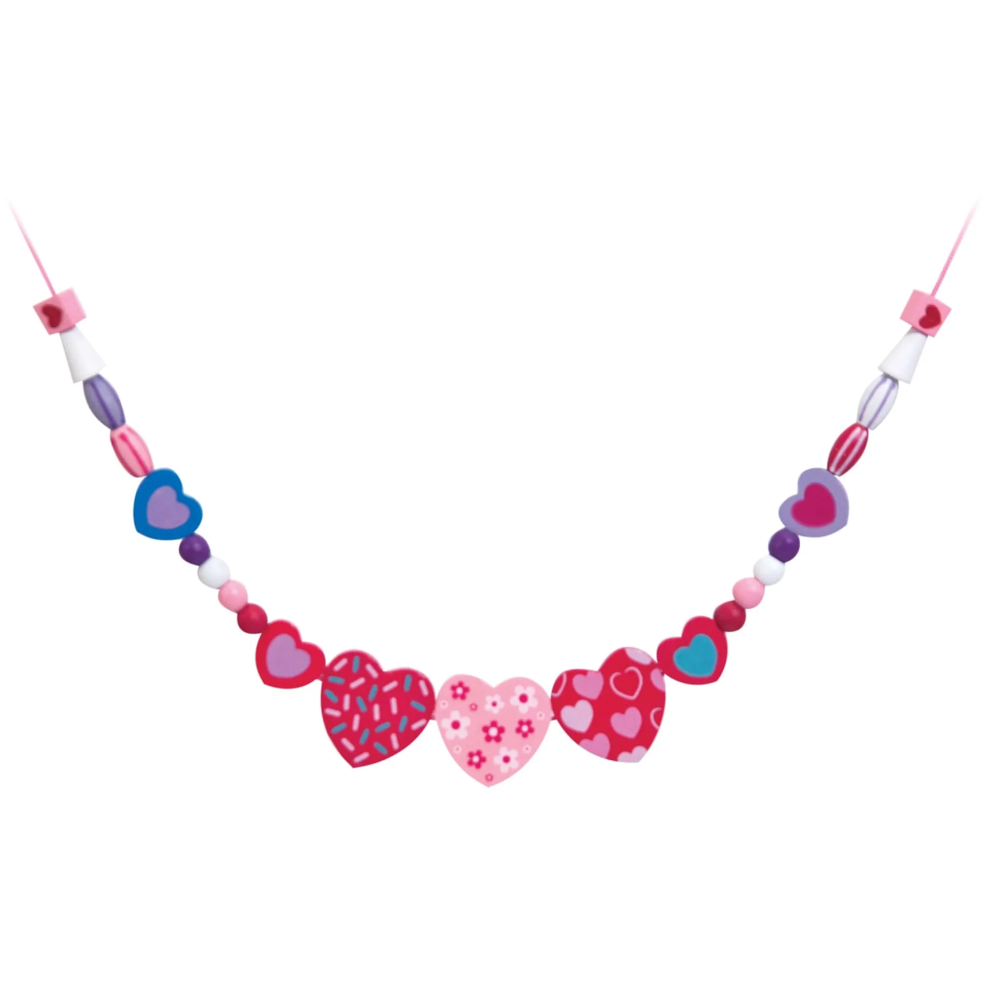 Design beautiful wooden jewelry to your heart’s content! This lovable kids’ jewelry set features pretty heart-shaped beads in a variety of sizes. An array of accent beads, all in coordinating colors, will encourage young jewelry makers to create lovely looks for every occasion. Five colorful cords and over 120 wooden beads allow for endless combinations.