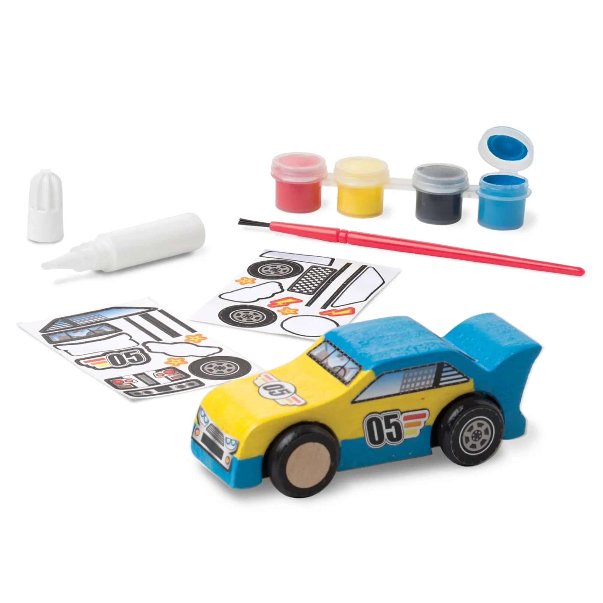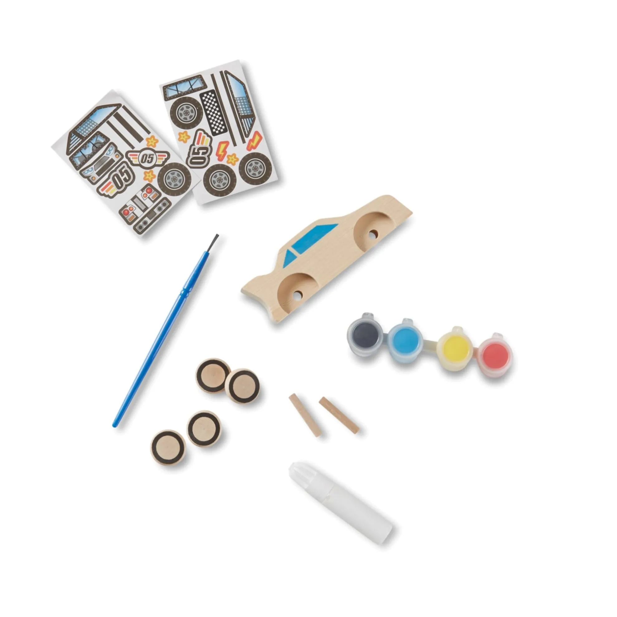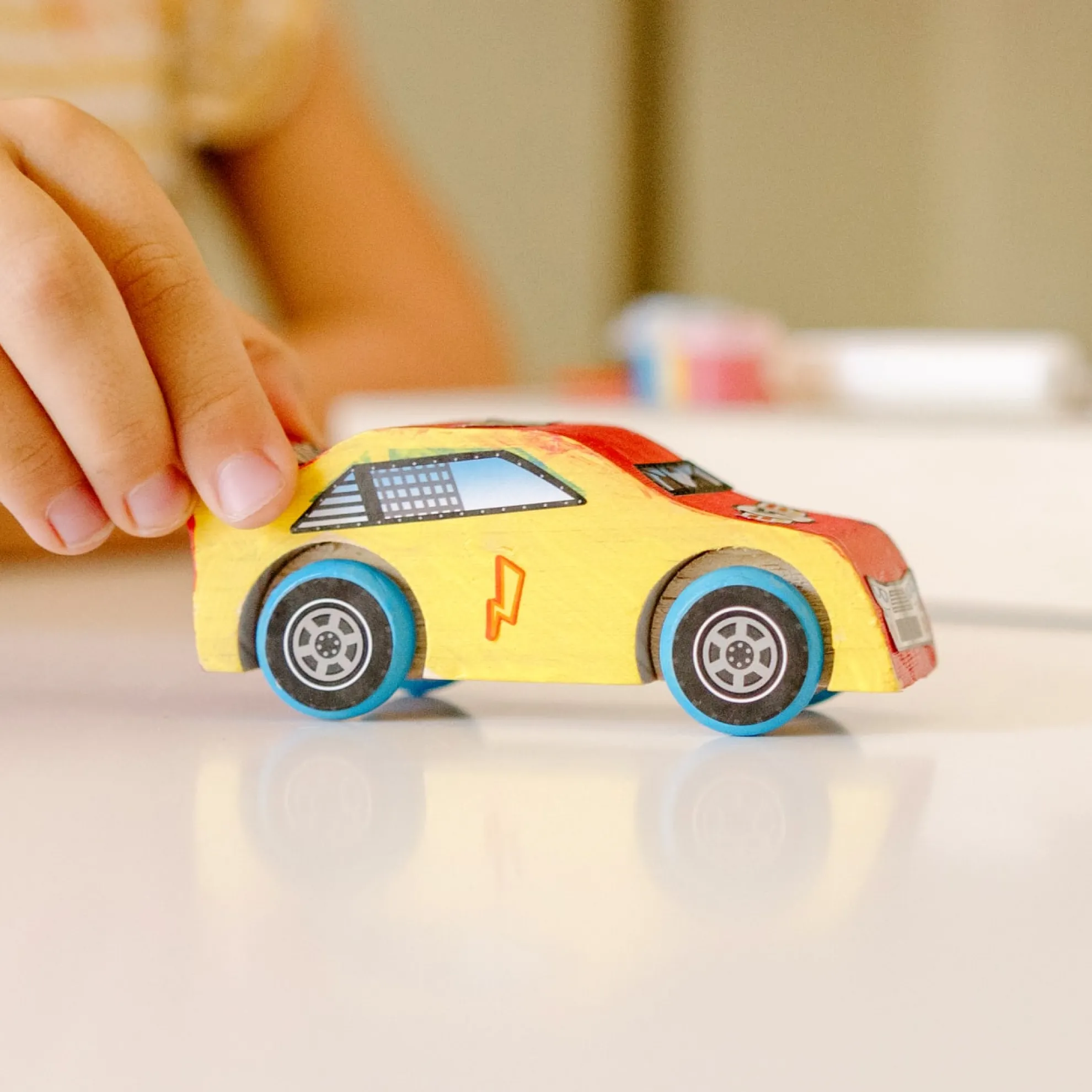 Kids can fill their need for speed with this cool craft kit! Includes complete supplies to design and personalize a race car, including wooden wheels and axles, paints, brush, glue, stickers, and easy directions. Put youngsters on the “fast track” to building and racing fun!