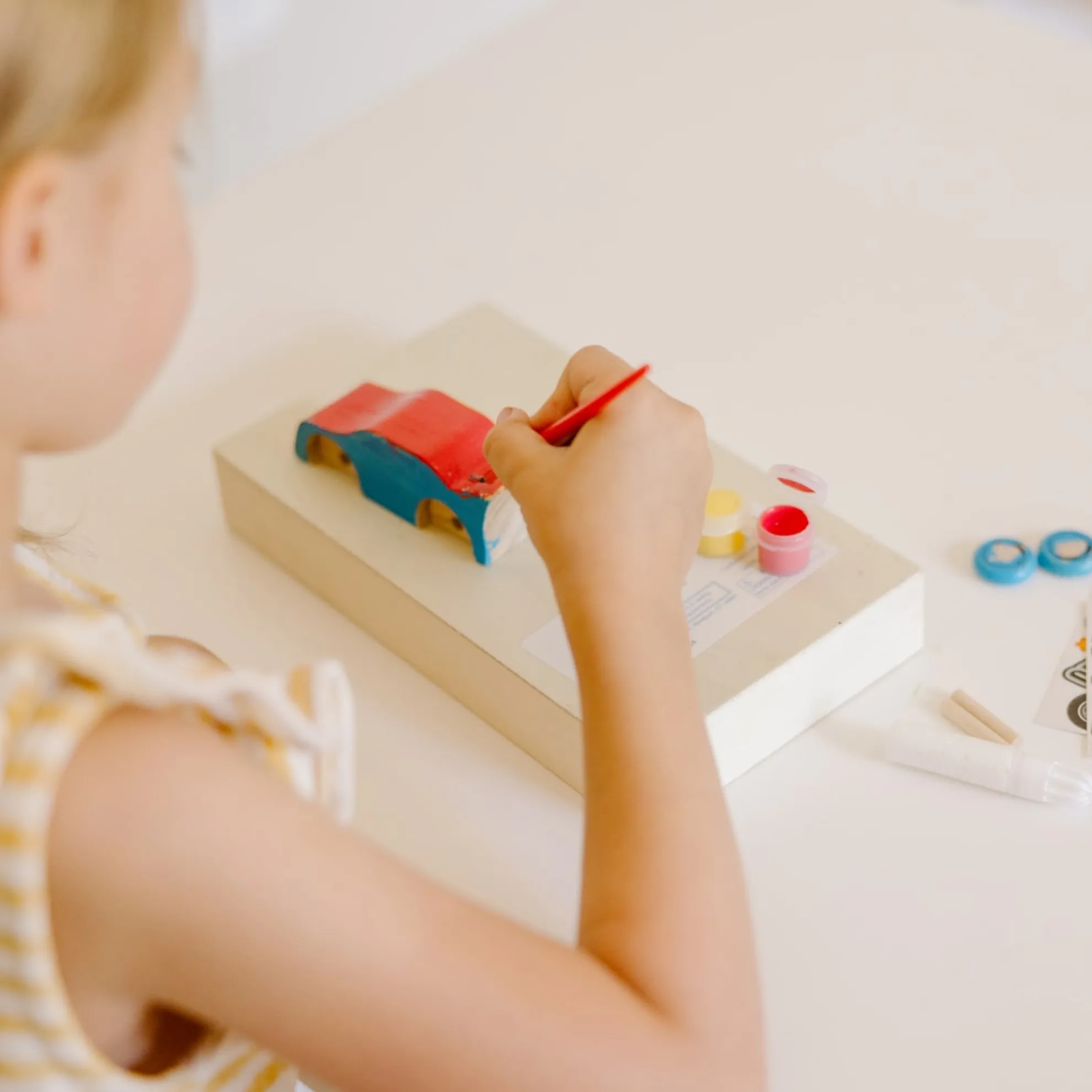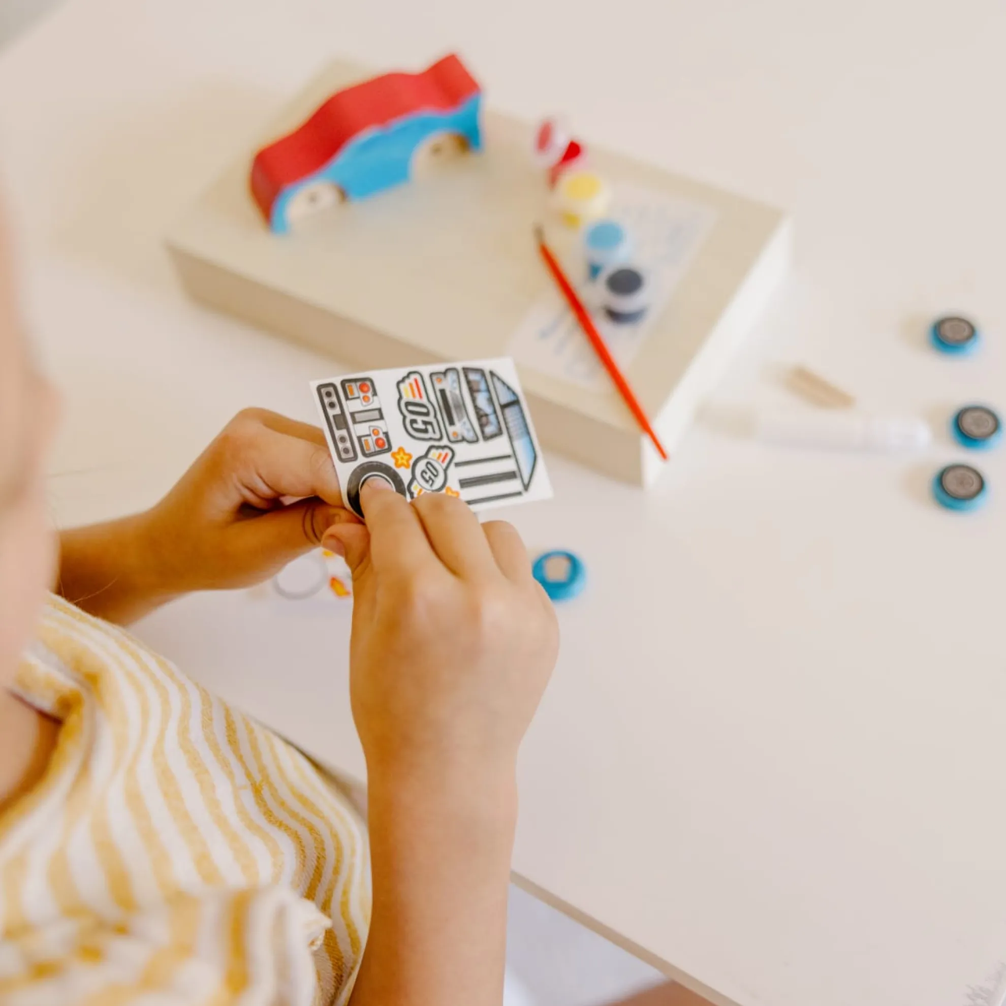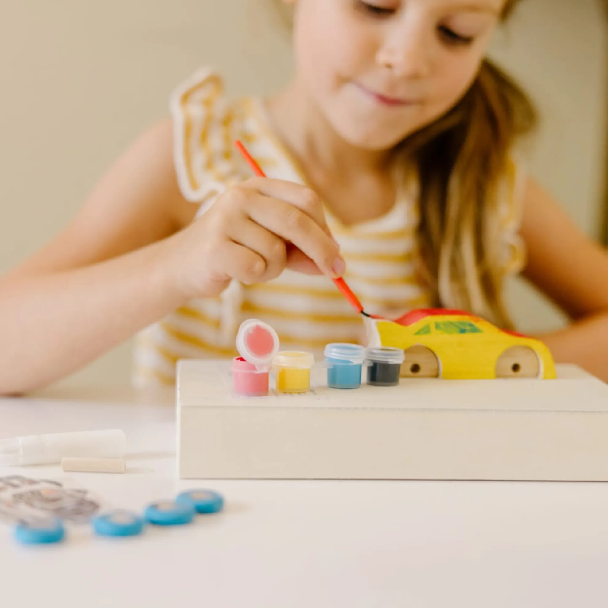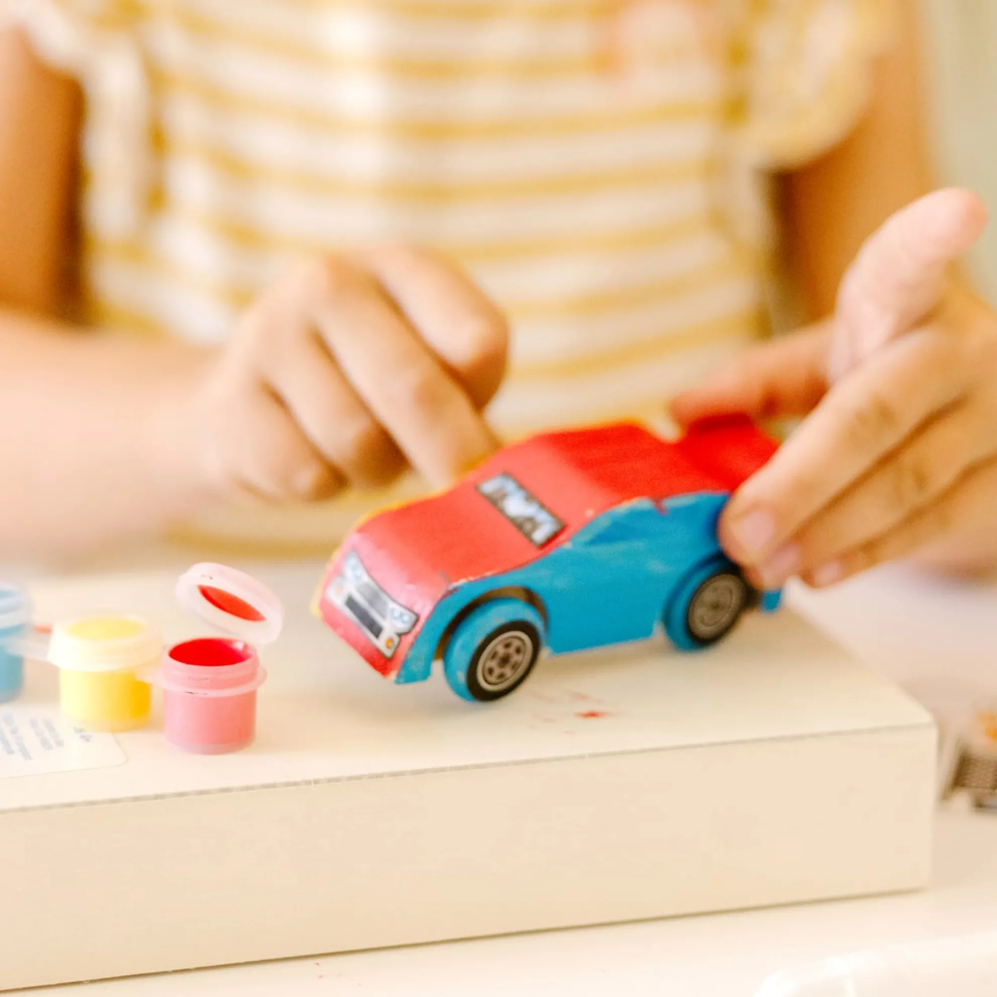 Kids can fill their need for speed with this cool craft kit! Includes complete supplies to design and personalize a race car, including wooden wheels and axles, paints, brush, glue, stickers, and easy directions. Put youngsters on the “fast track” to building and racing fun!