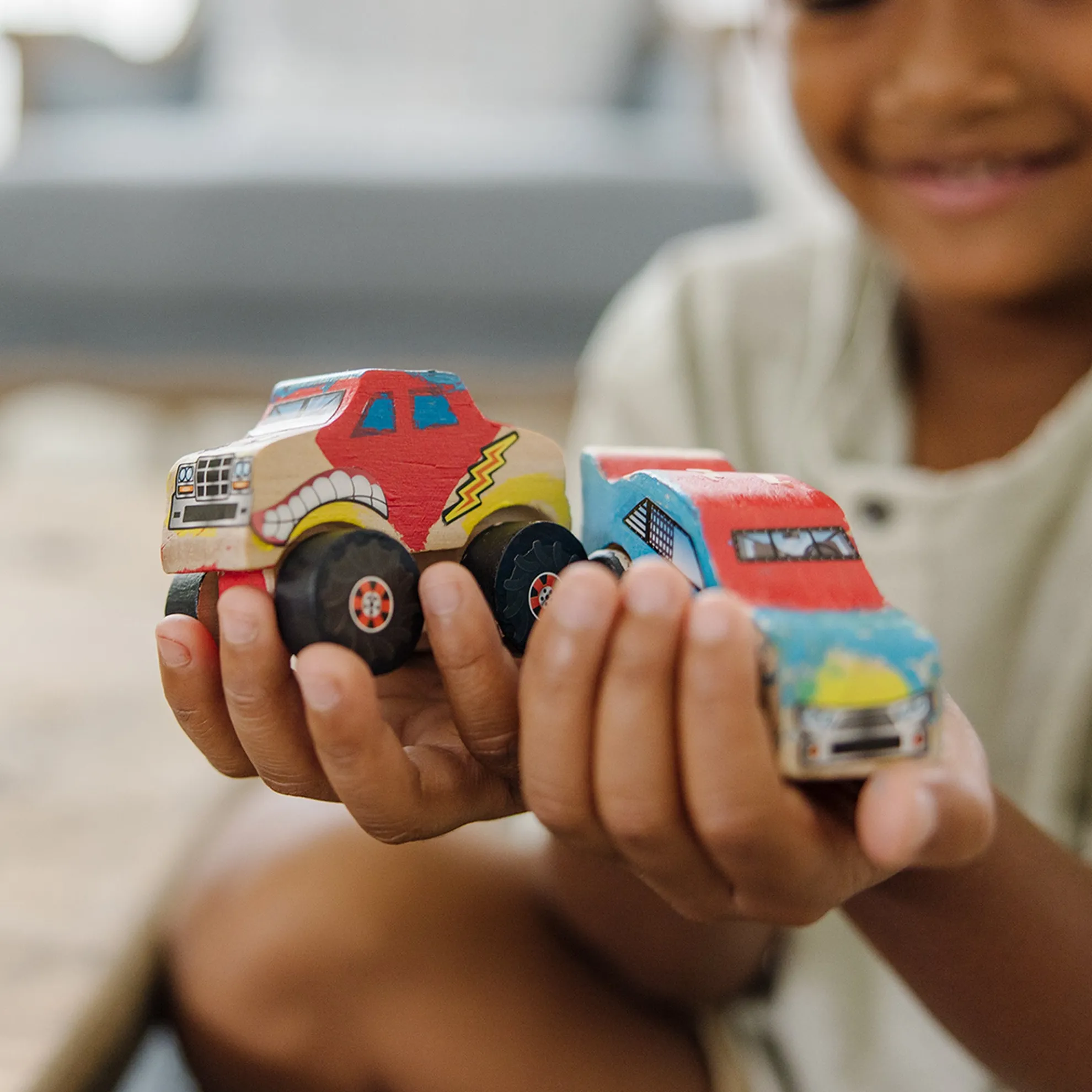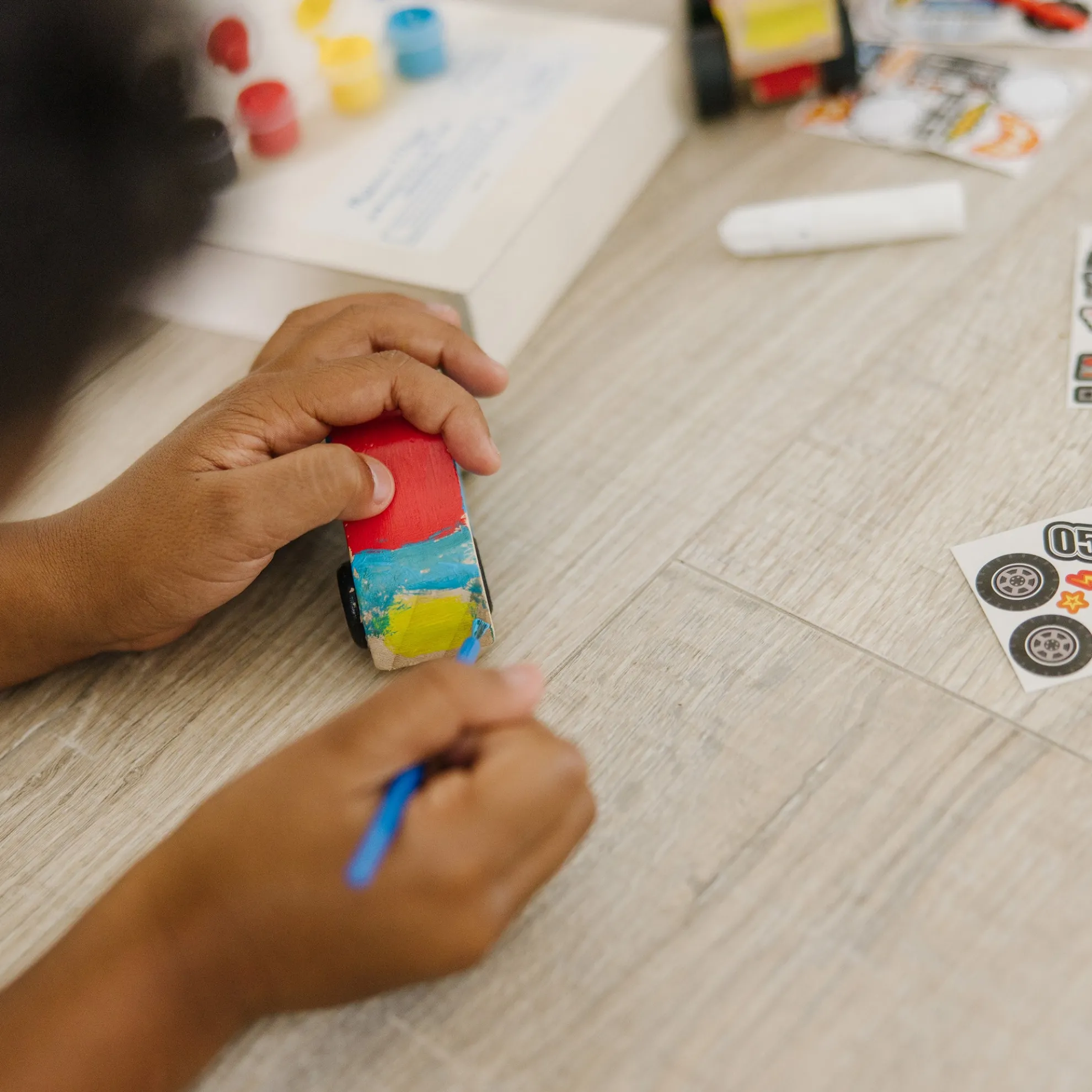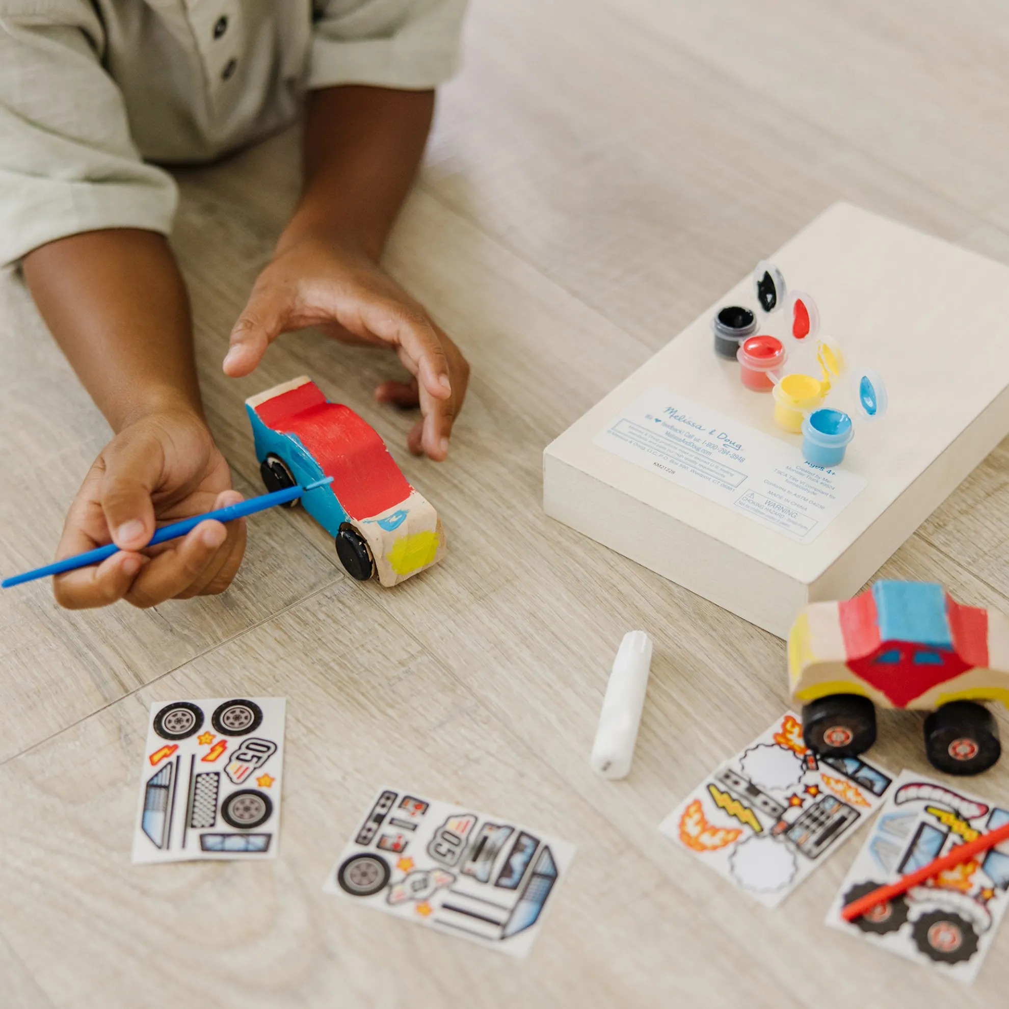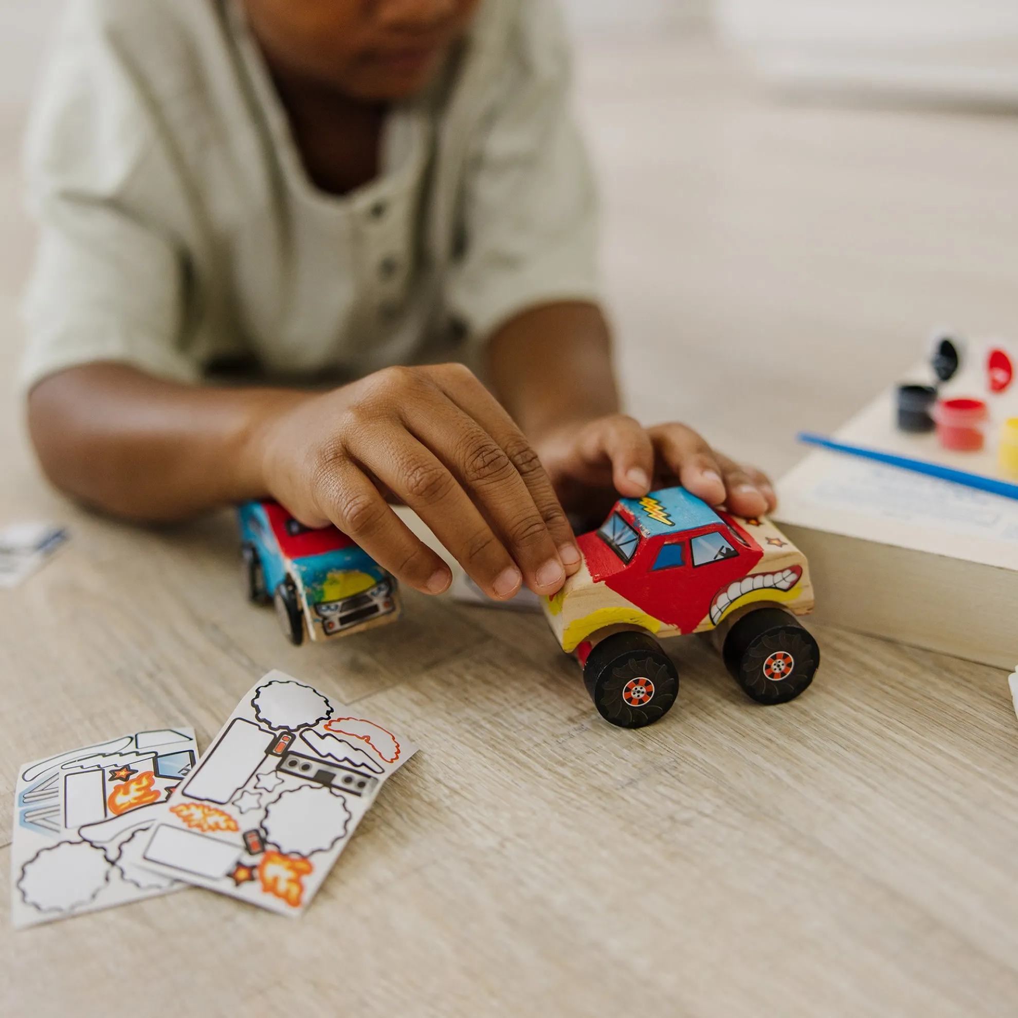 These cool vehicle kits contain everything you need to assemble and decorate a race car and a monster truck. Attach the axles and wheels, and then add custom details with the included brush, paints, and stickers. Great gifts or rainy-day activities, these cool little kits bring big horsepower to arts-and-crafts time! Melissa & Doug products provide a launch pad to ignite imagination and a sense of wonder in all children so they can discover themselves, their passions, and their purpose.
