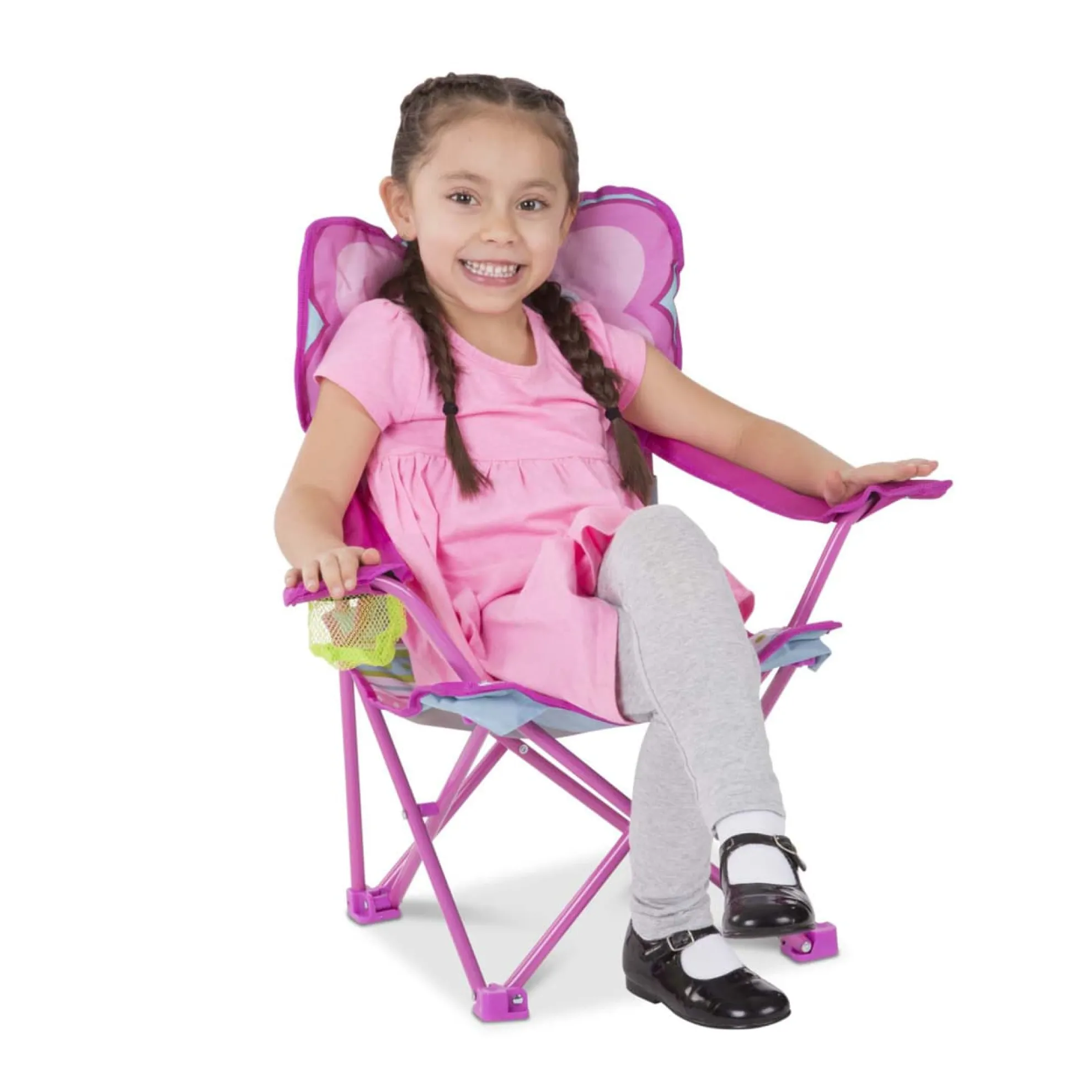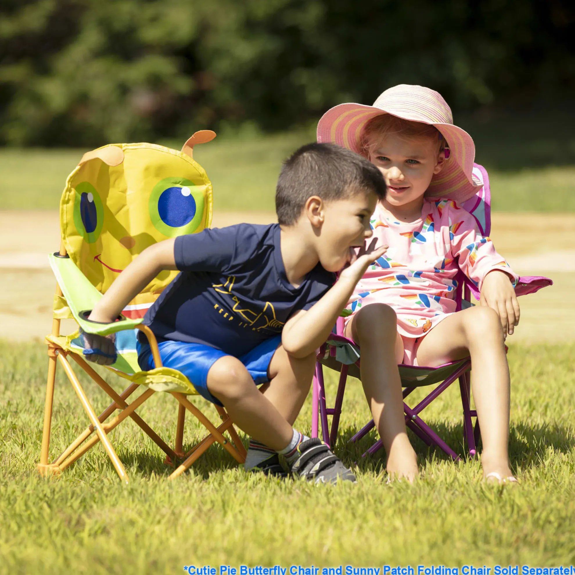 Your child will be “sitting pretty” with Cutie Pie in this delightful folding chair with its brightly colored fabric and sturdy metal frame. It also has a handy cup holder positioned at your child’s fingertips! Durable and water resistant fabric and a convenient storage bag make it perfect for trips to the beach, the park, the campground, or anywhere your child’s imagination may lead!
