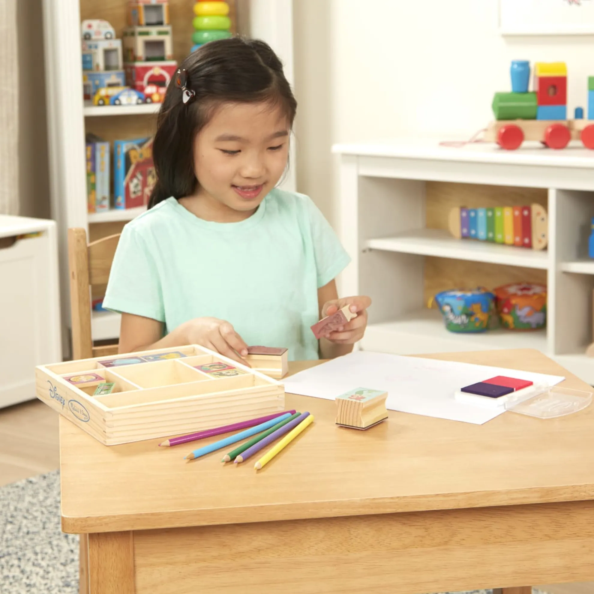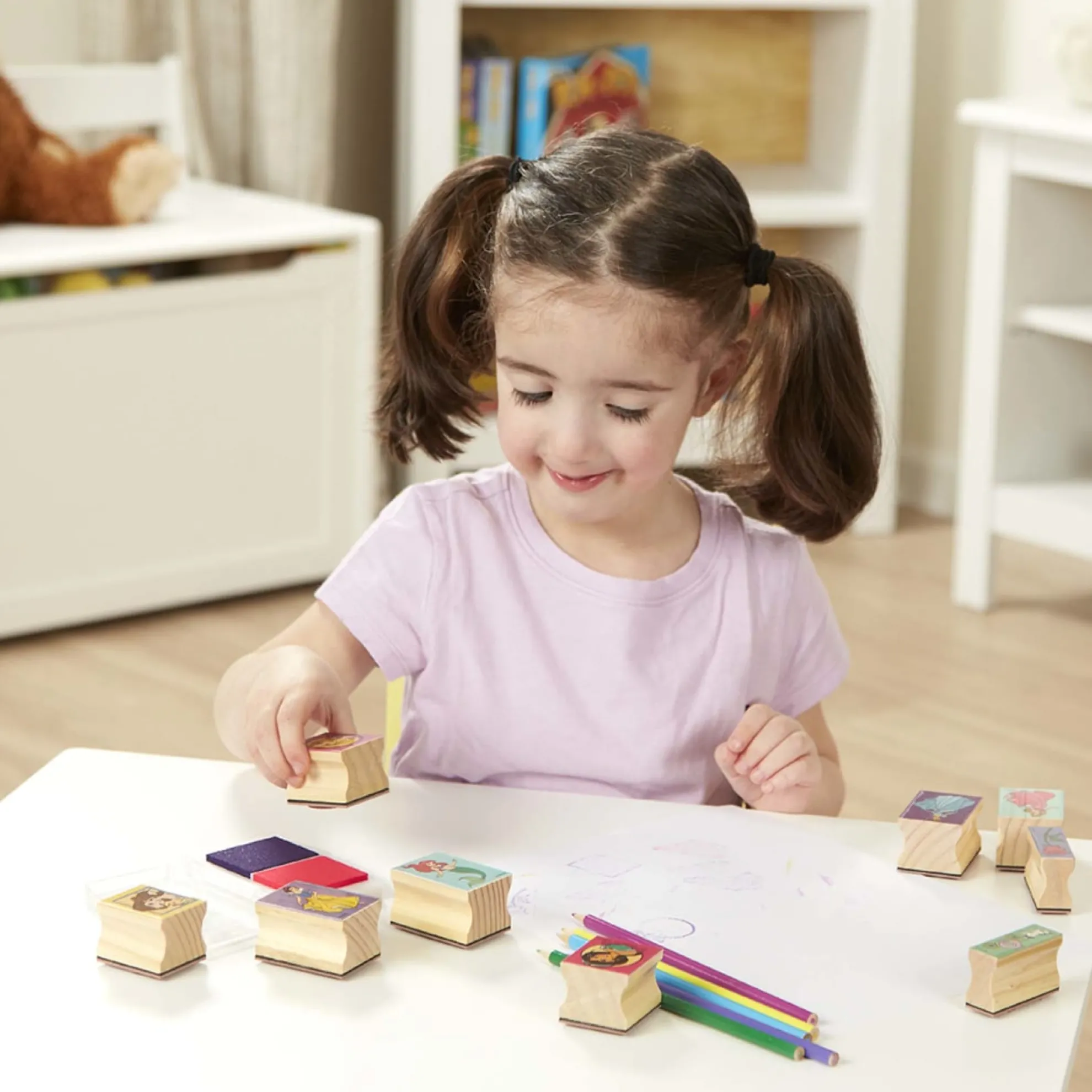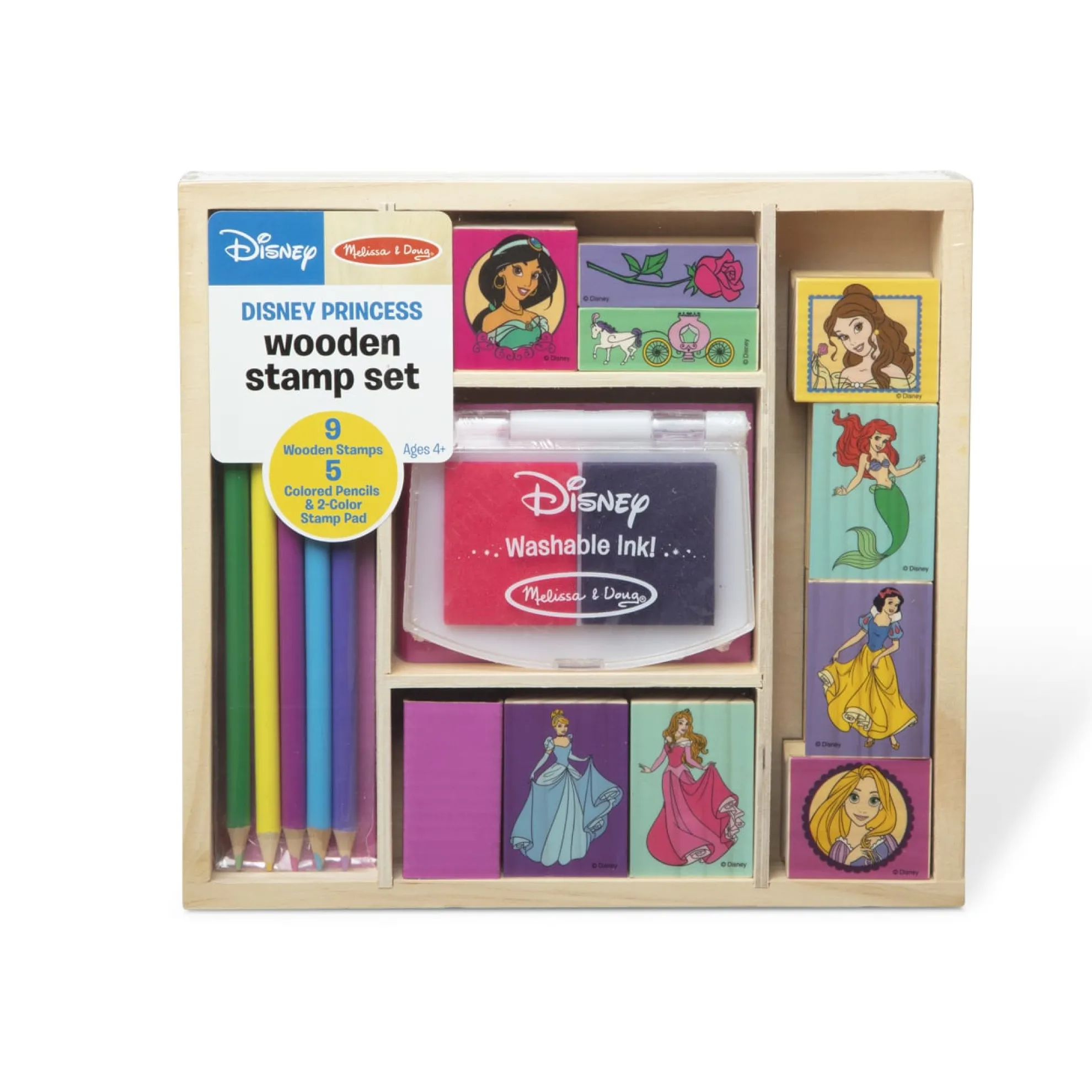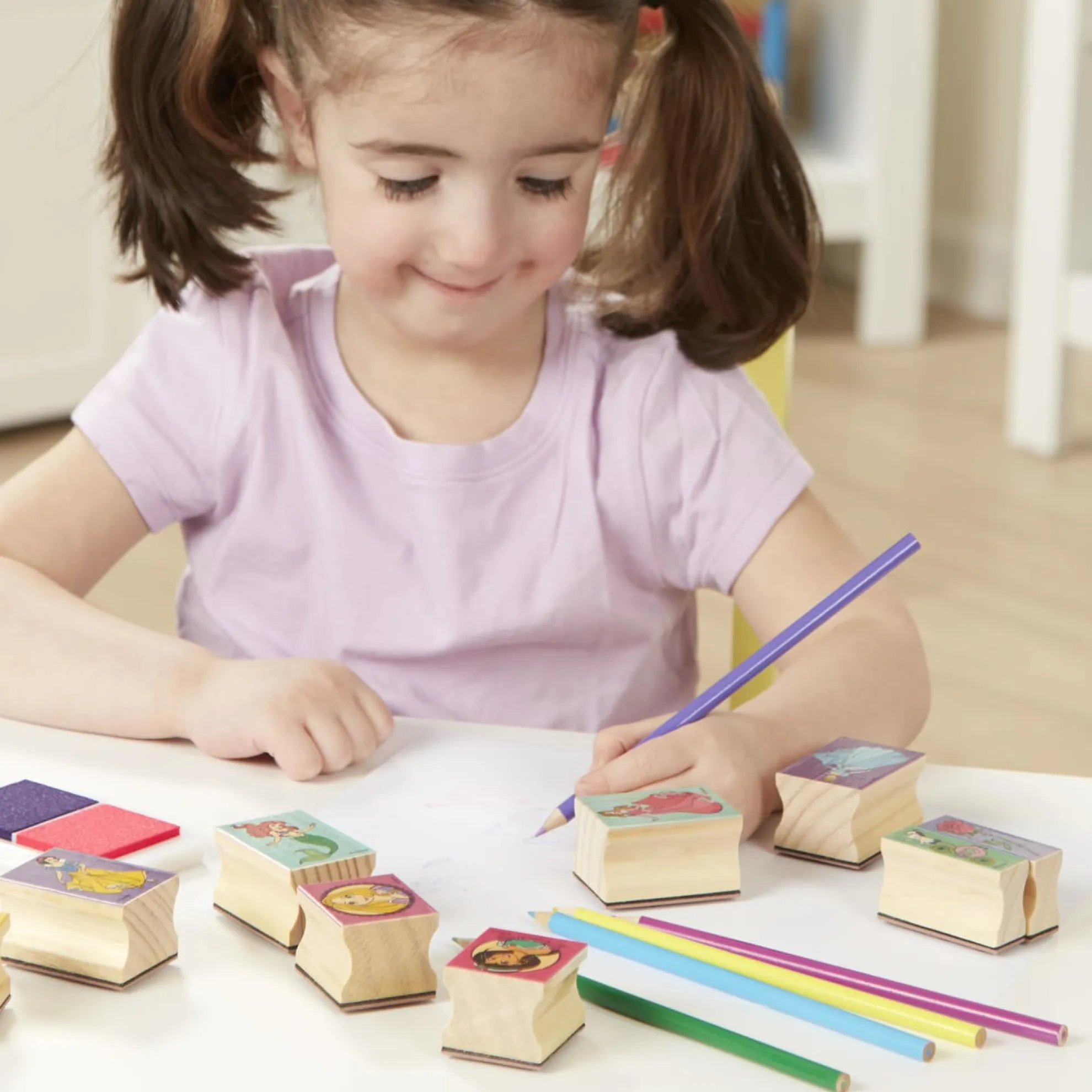 This sturdy wood-and-rubber set has everything kids need to stamp a picture, color it in, and get creative with all their favorite princesses! Featuring 9 wooden stamps, 5 colored pencils, and a 2-color stamp pad with washable ink, this set brings enchantment to playtime and inspires exploration, learning, and a kingdom’s worth of imagination.