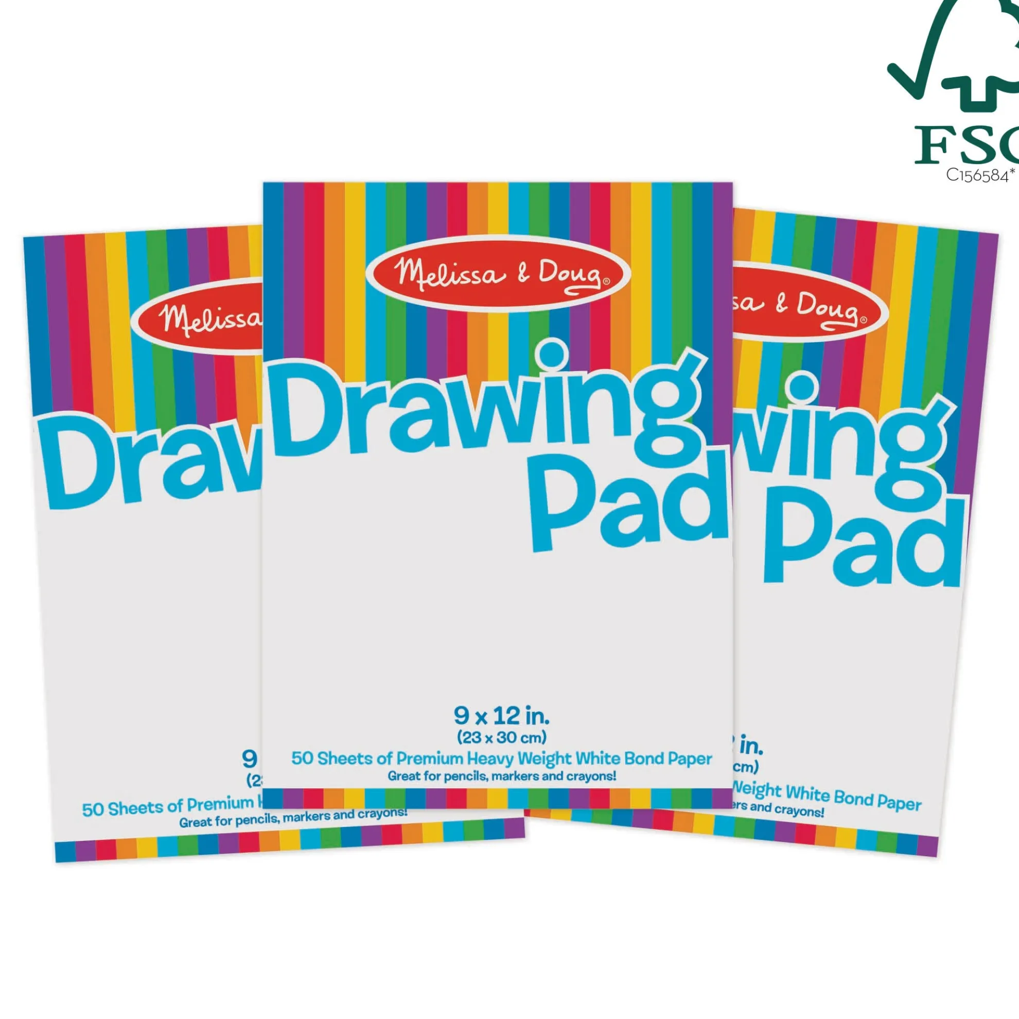 - 3 large drawing pads for kids: The Melissa & doug drawing paper pad set is a 3 pack of pads that each have 50 sheets of premium heavy weight bond paper; the large pages make the ideal canvas for little artists to express their creativity