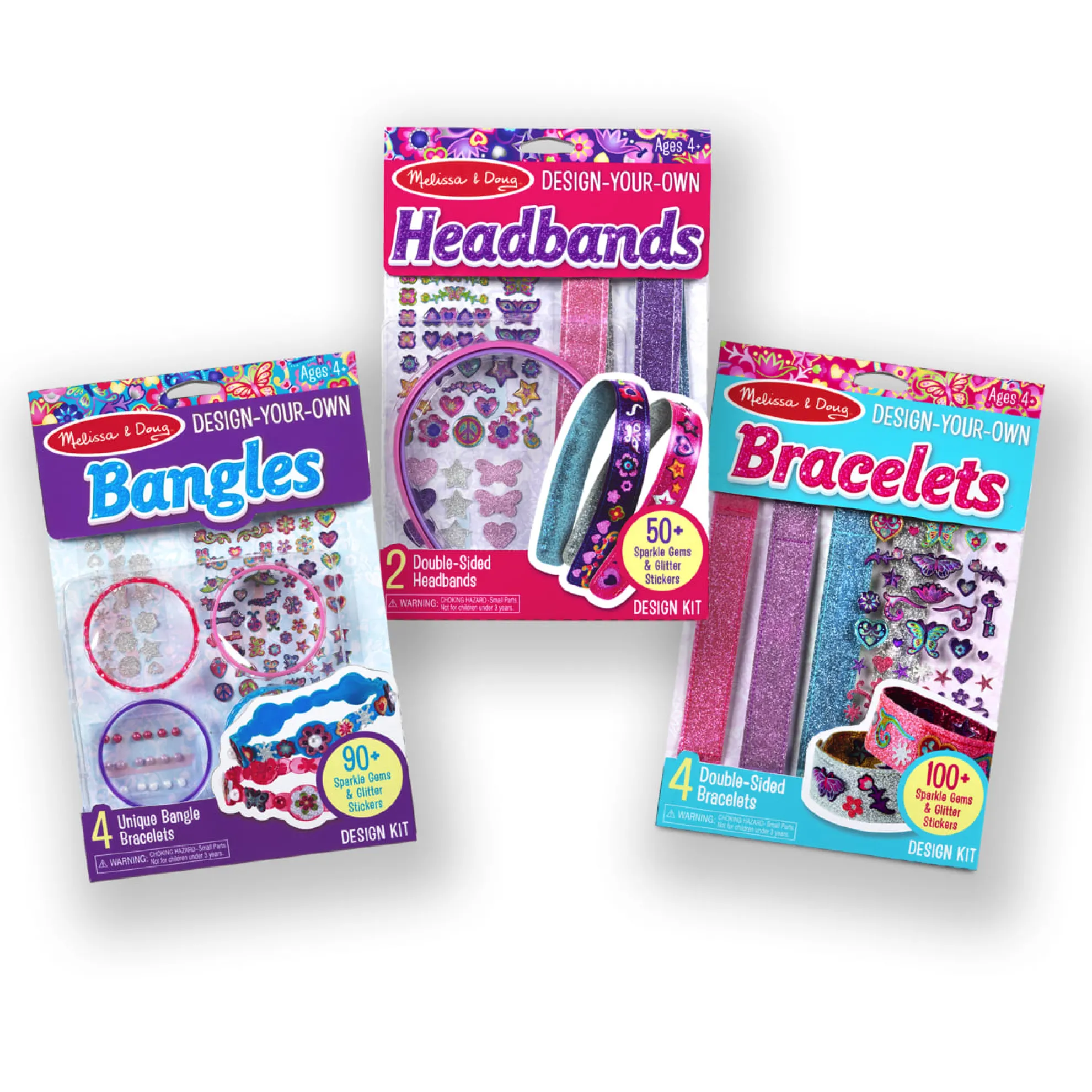 - Set of 3 Design-Your-Own fashion accessory design kits, including bracelets, bangles, and headbands