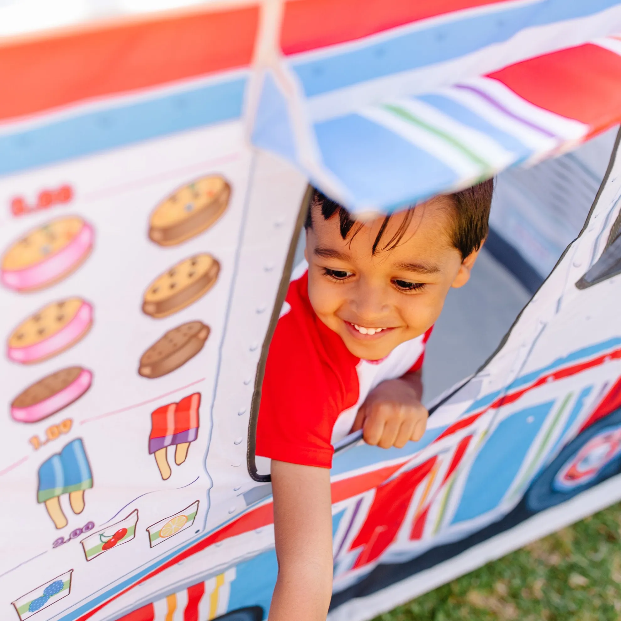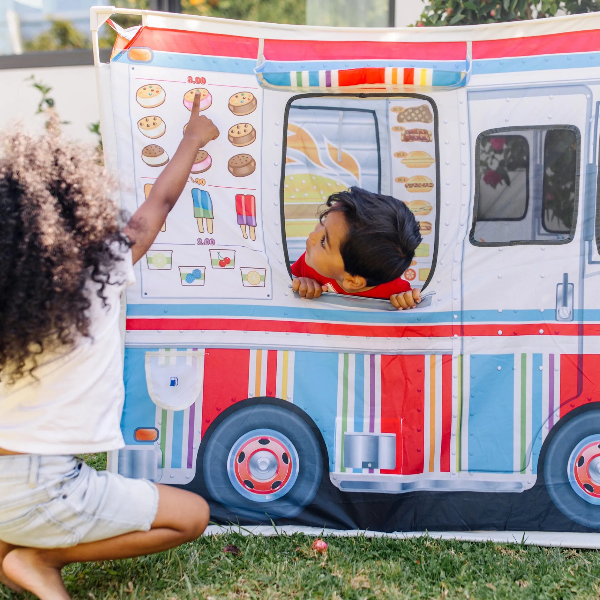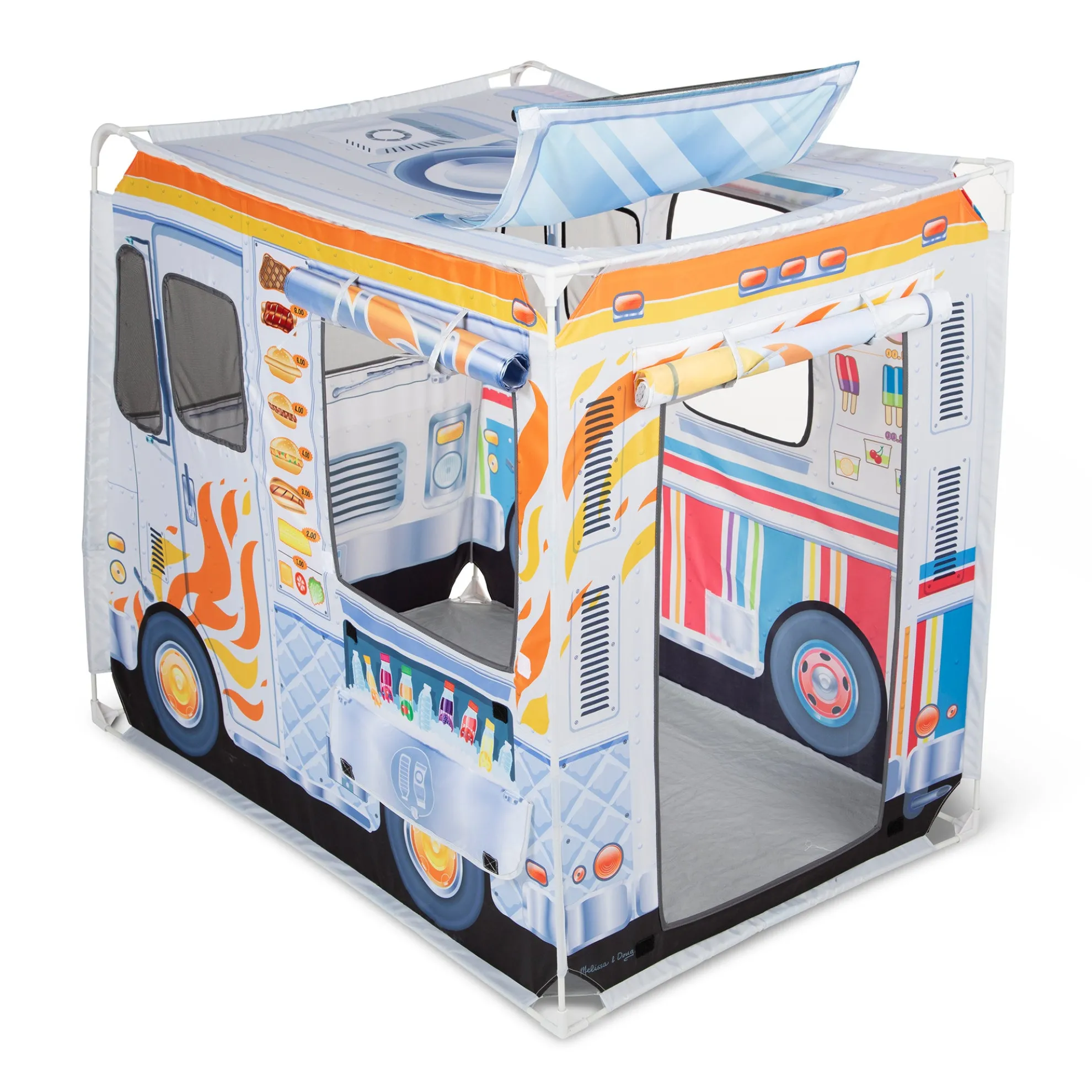 - Roomy and sturdy 4-foot-long food truck indoor or outdoor fabric tent playhouse with vibrant, full-color exterior artwork