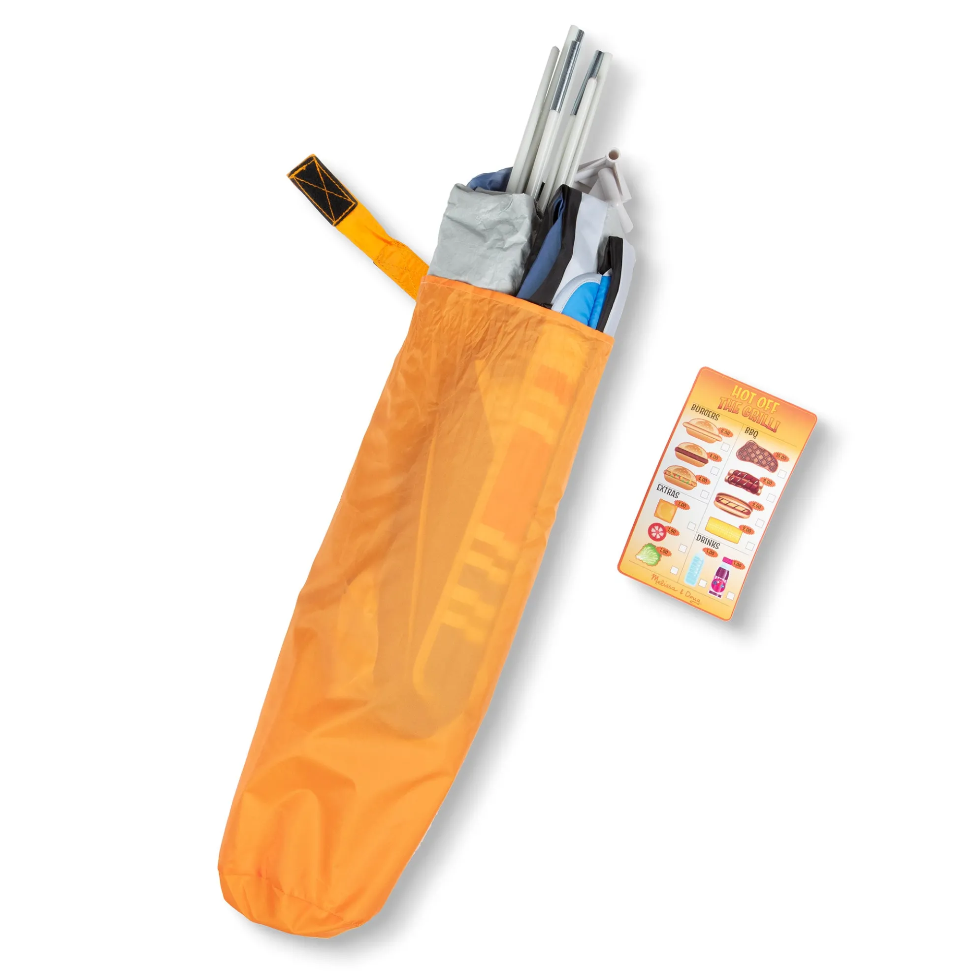 There’s plenty of room to get playtime cooking and to satisfy hungry imaginations in this roomy “two-in-one” food truck play tent! With service windows on both sides, the large, sturdy fabric playhouse lets kids pretend to serve barbecue from one side and ice cream from the other. It stands more than three feet tall and nearly four feet long, giving plenty of space for multiple kids to play. The truck’s exterior is covered with vibrant, incredibly detailed, realistic full-color artwork. This unique play space is packed with playful details, such as door and window flaps that roll up, a roof flap that opens, mesh fabric in the front window, and durable floor material. It comes with a double-sided reusable menu to make ordering extra fun. The play tent is easy to assemble and easy to pack away in the handy take-along storage tote. Kids three and older will be taking their imaginations “on the road” for years to come!