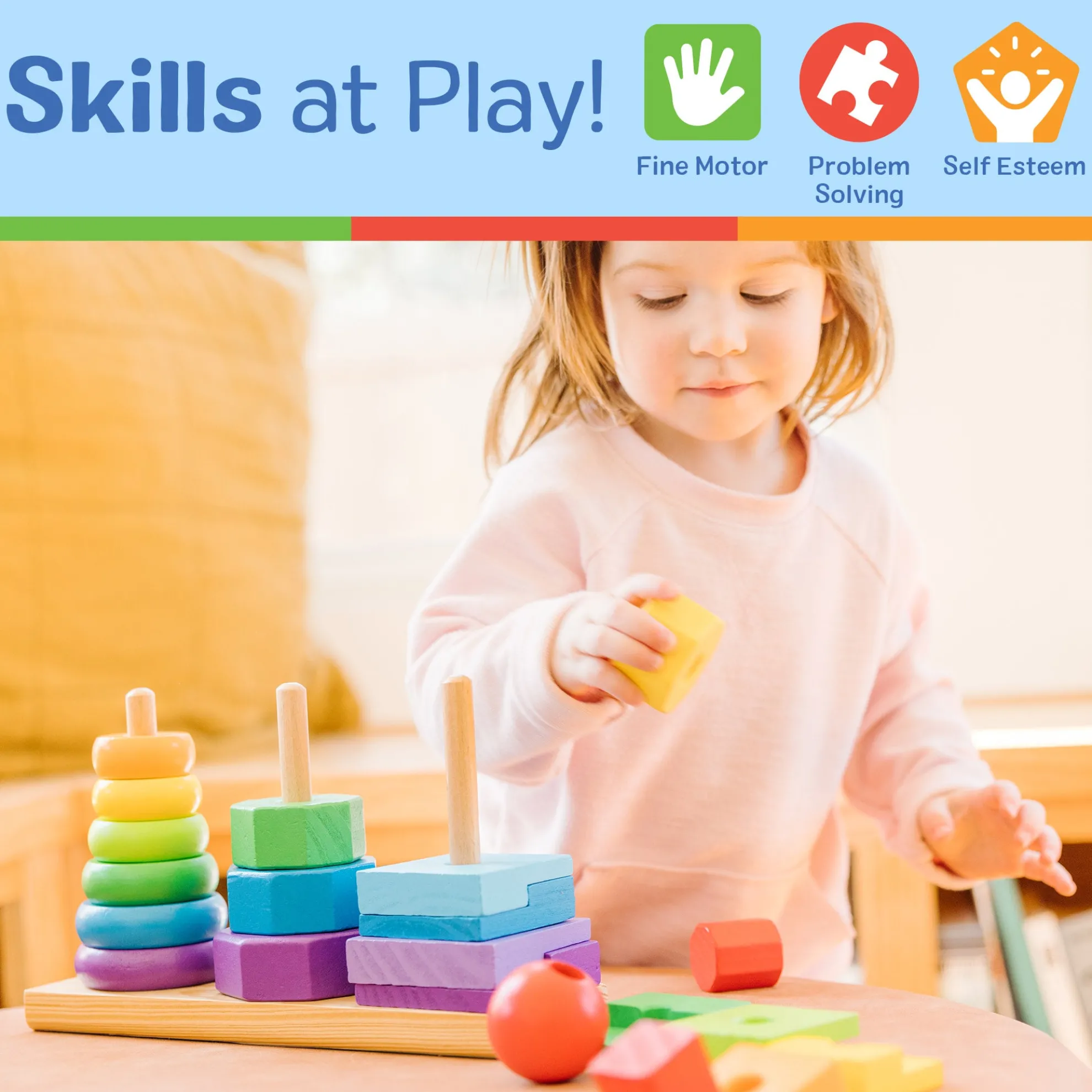- Great for building early shape, color, and size differentiation skills