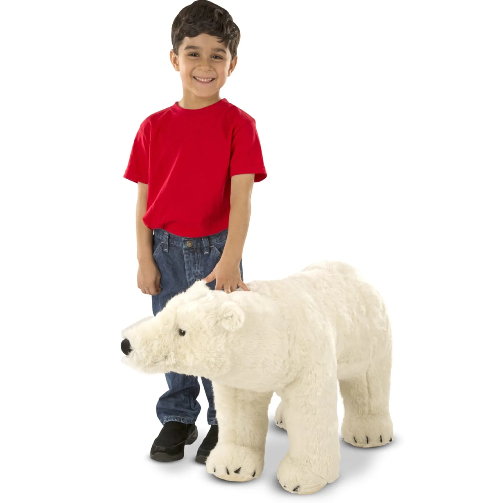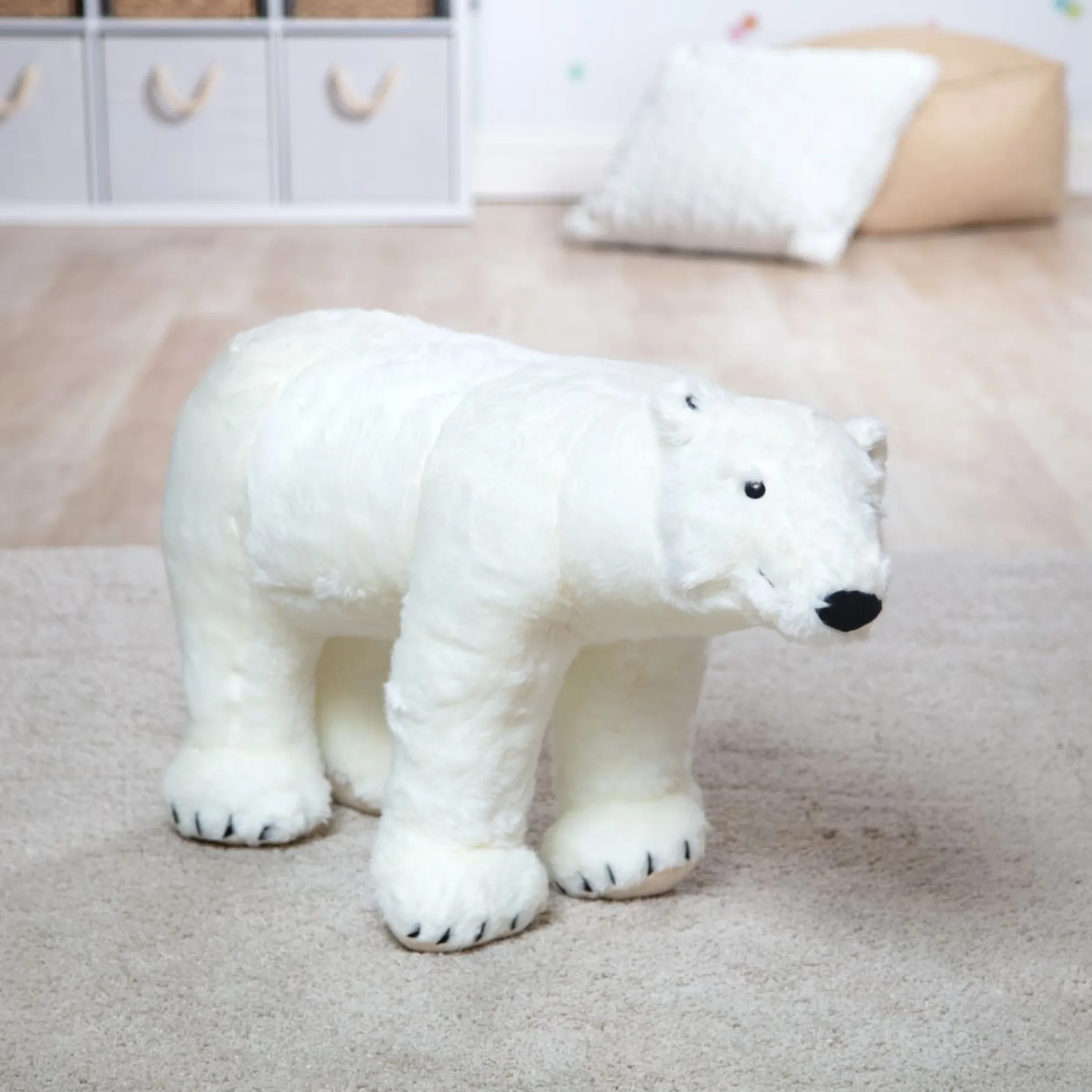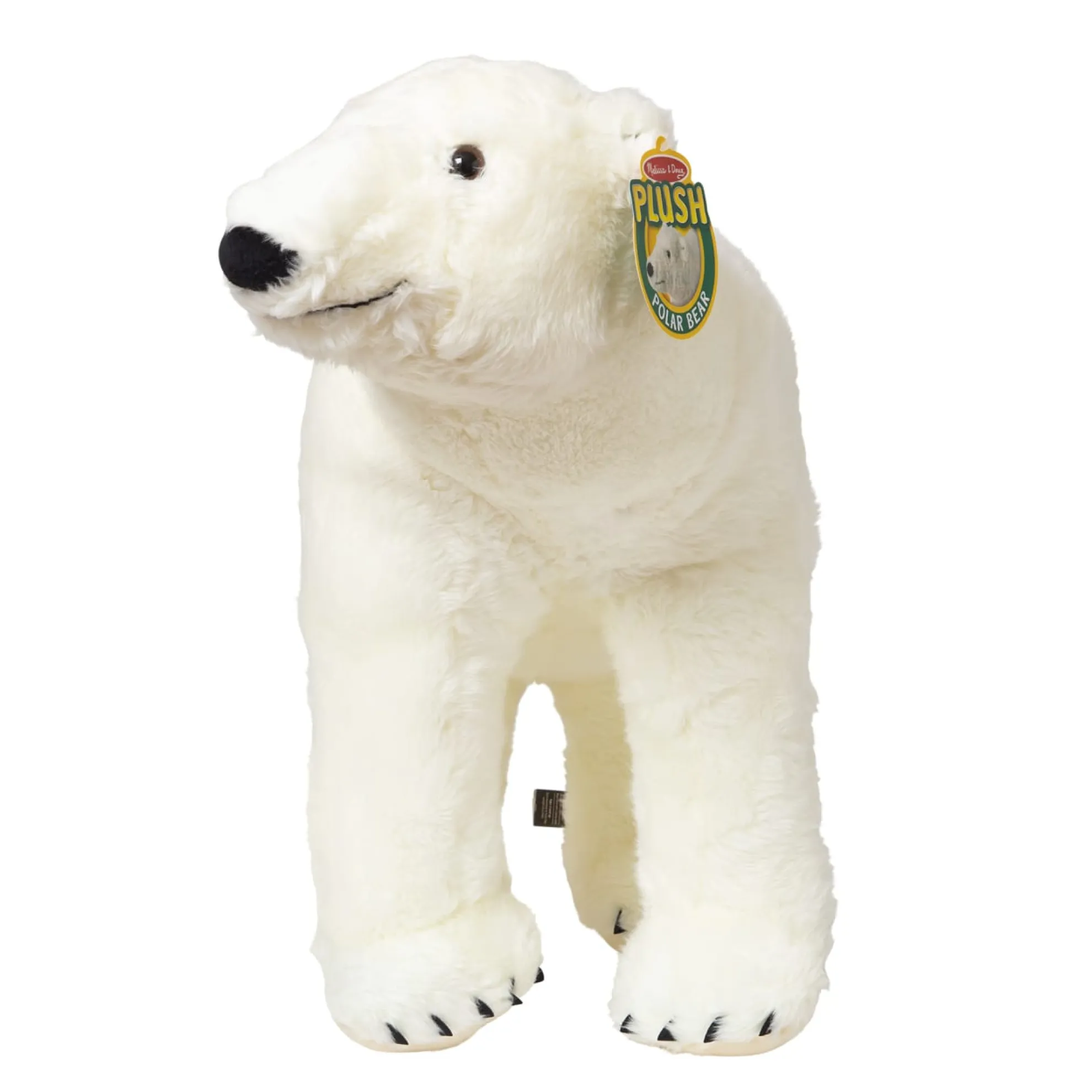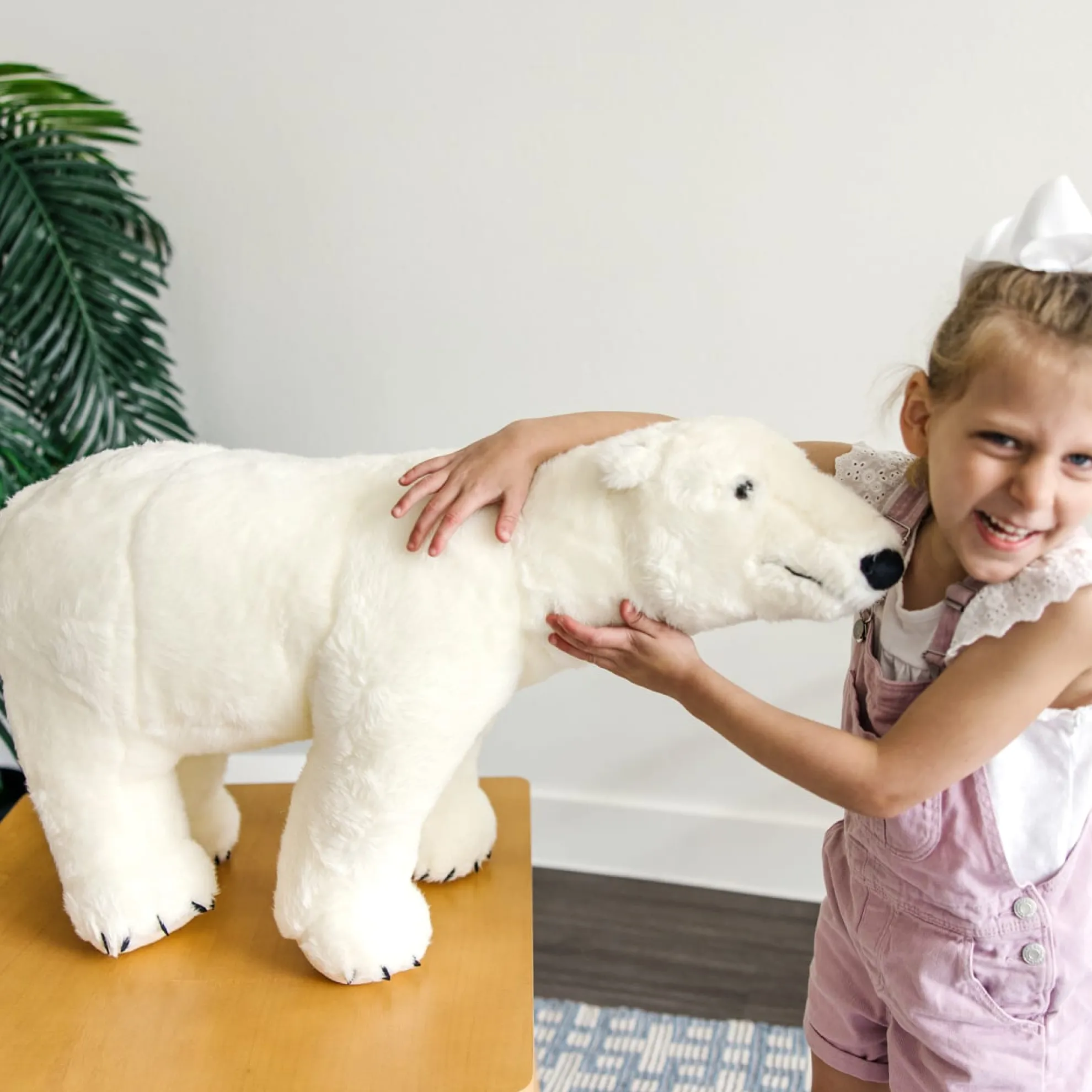 Make chilly days extra cozy with your very own polar bear! The beautiful white plush fur is both durable and incredibly soft to the touch, while the quality construction and a strong interior structure means it will hold up to years of hugs and snuggling. Its impressive size (nearly three feet long and standing 20 inches tall!) and an attention to realistic details–felt claws, padded huge paws, a soft, black nose, and a lovable expression–make this a big bear that’s sure to warm any heart!