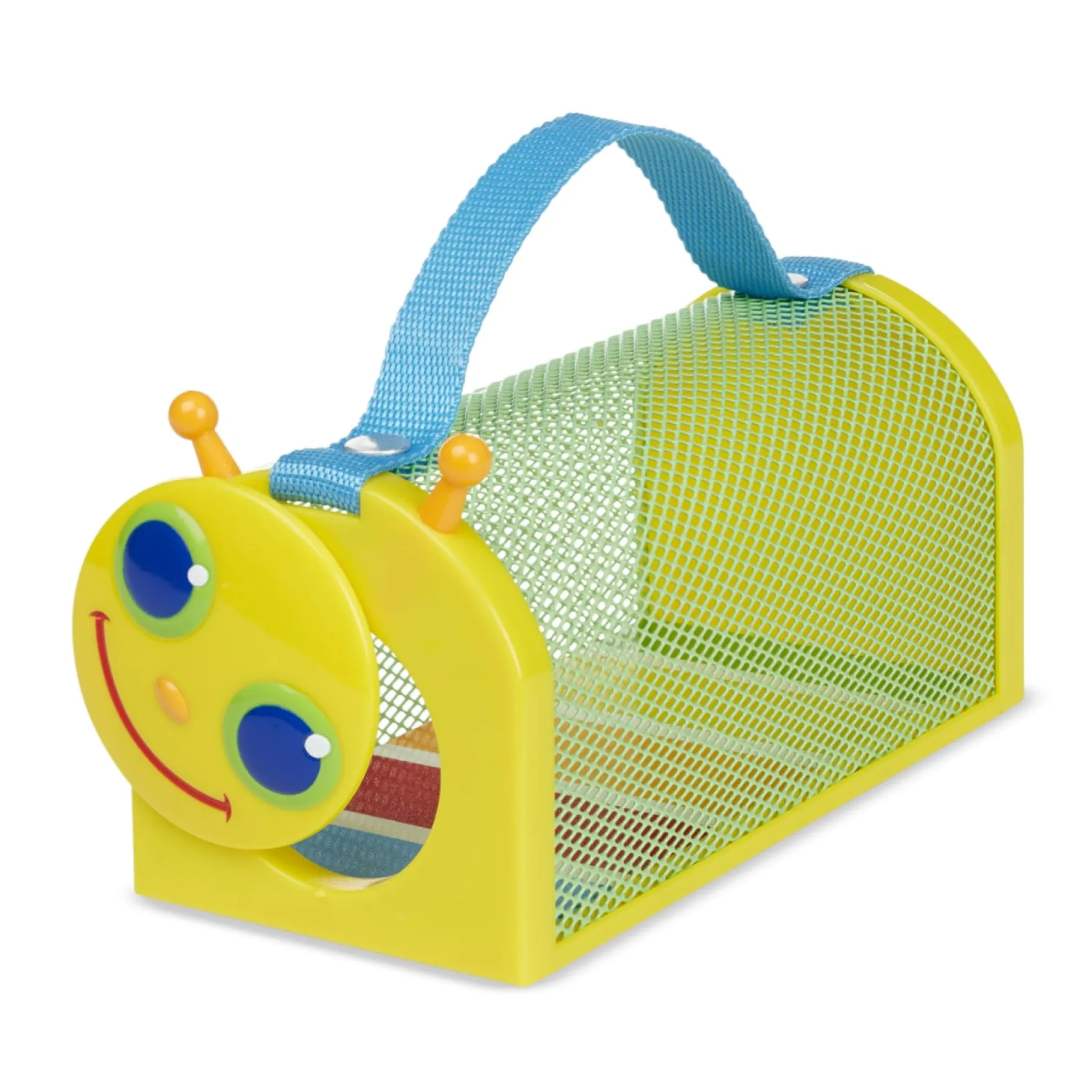 - Adorable bug habitat features sturdy carrying handle and an easy-to-use, push-aside door