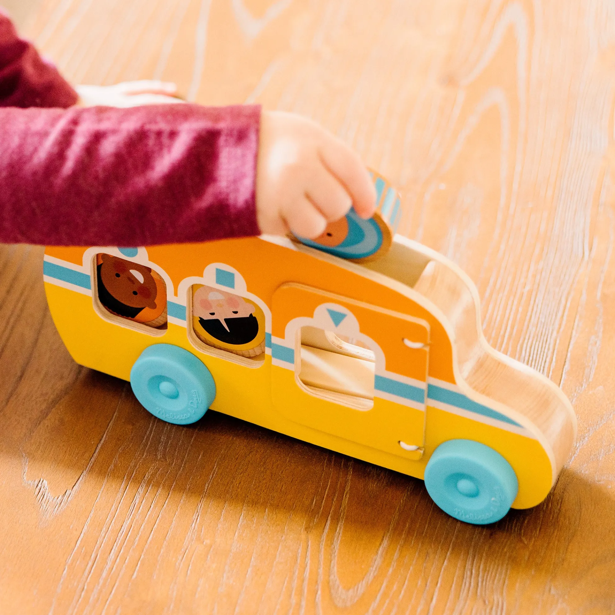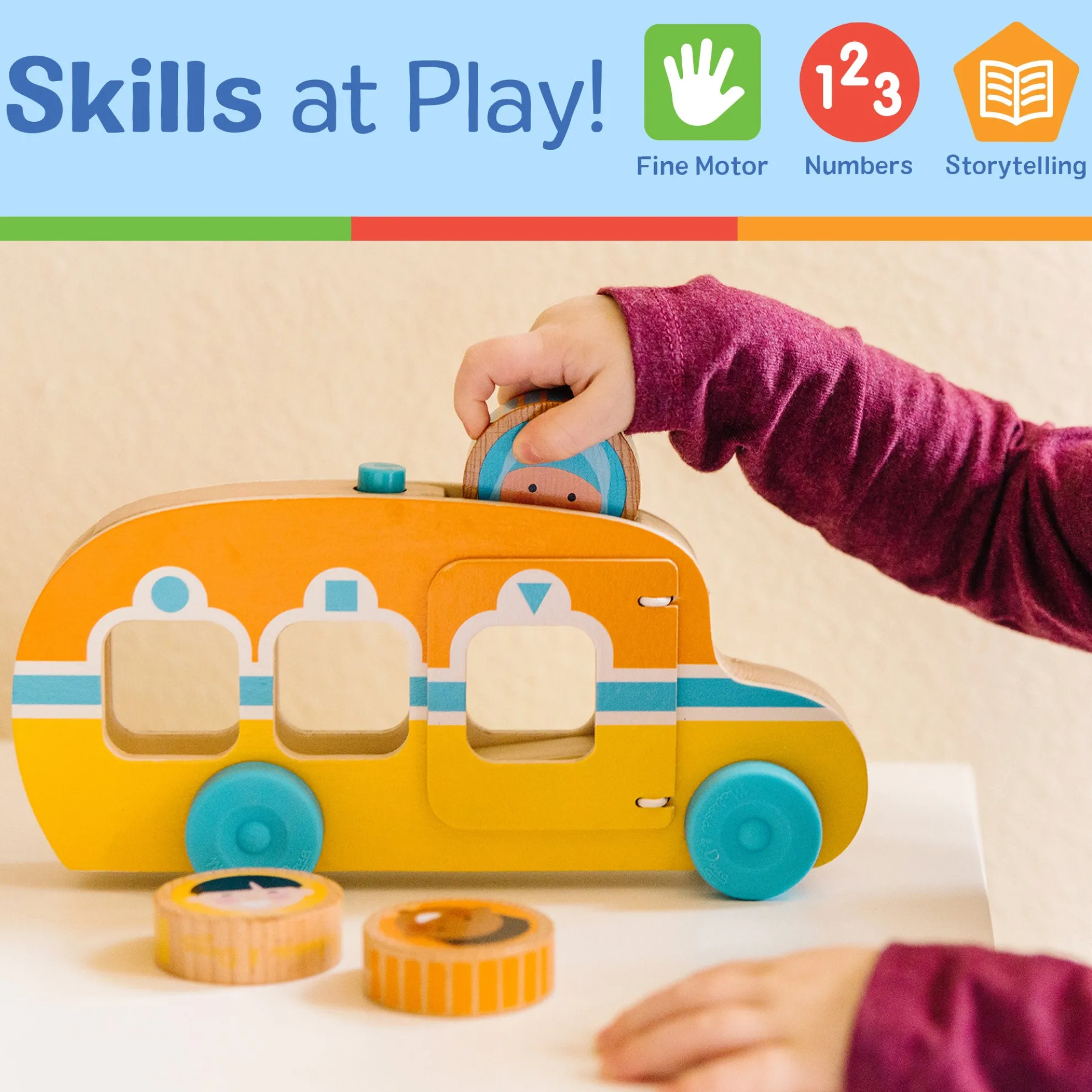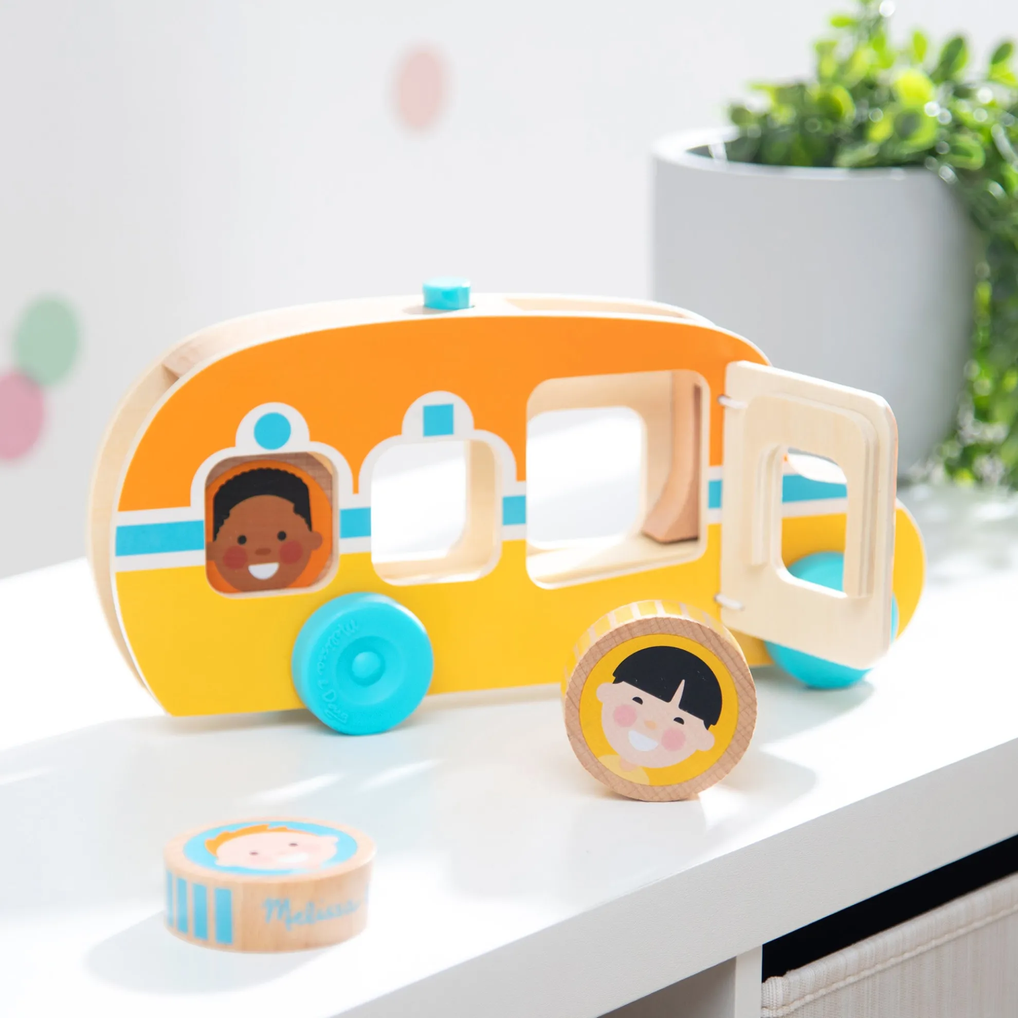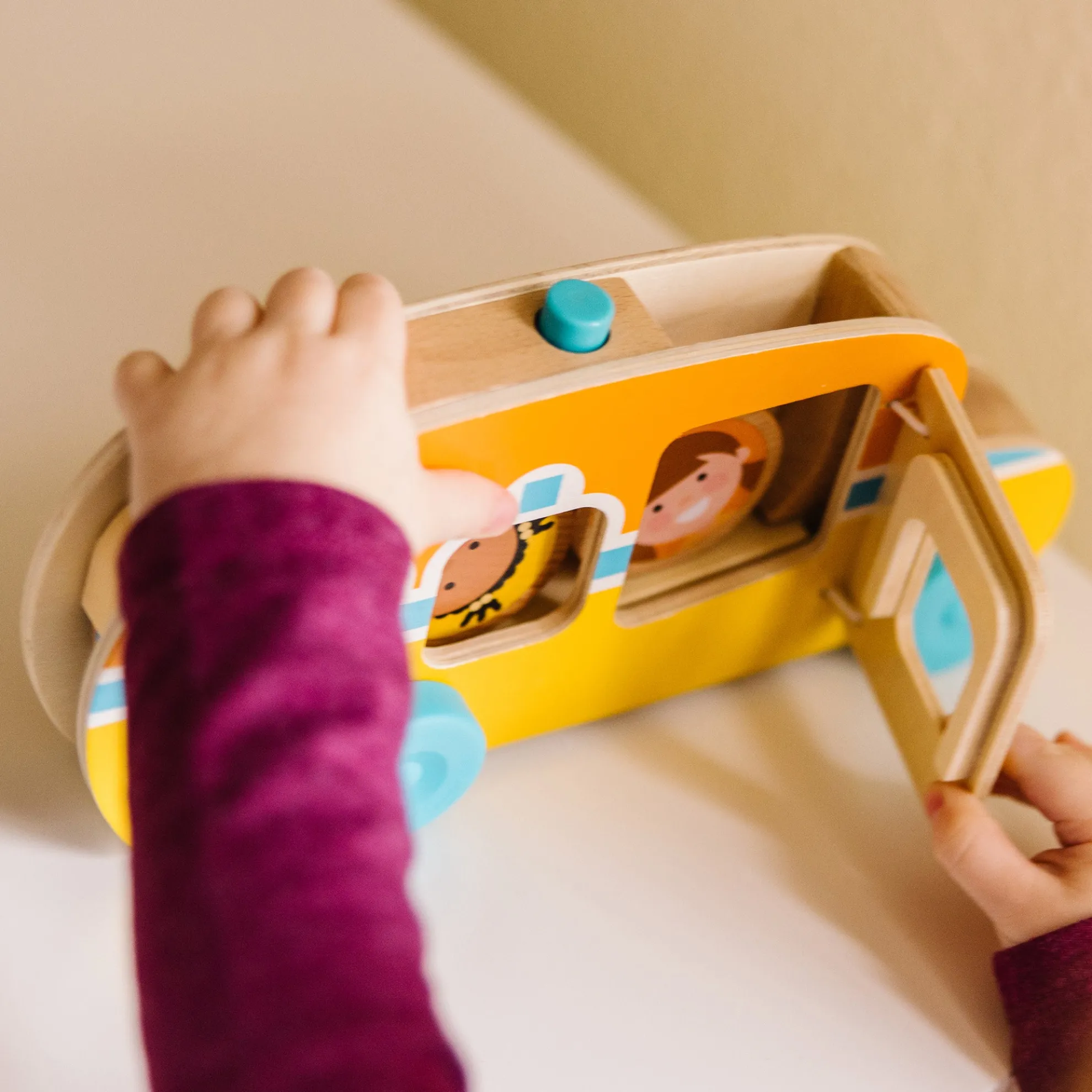 Let’s go play with friends that are fun to roll, stack, and grasp! Three double-sided chunky wooden GO Tots disks (six characters) spin and bounce as the bus rolls! Press the button on top of the sturdy wooden bus and GO Tots roll out the back! Compatible with other GO Tots play sets. With Melissa & Doug GO Tots, toddlers 12 months and older will discover a new kind of kinetic play that offers opportunities to explore cause-and-effect through delightful motion-driven moments. Relatable, diverse characters and appealing shapes and textures encourage connections and exploratory, skill-building play. This product is certified by the Forest Stewardship Council. FSC certification ensures that products come from responsibly managed forests that provide environmental, social, and economic benefits, and that forests are protected for future generations. Please note that FSC certification applies to new inventory only (FSC C156584)