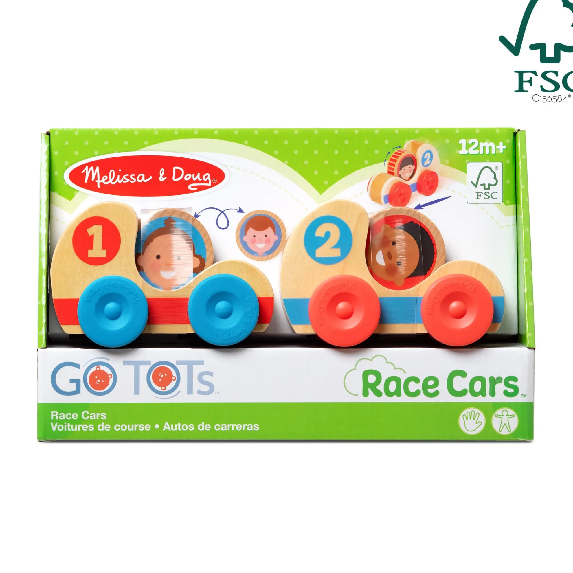 Let’s go play with friends that are fun to roll, stack, and grasp! Drop the two double-sided chunky wooden GO Tots disks (4 collectible characters) into the numbered wooden race cars, and push the cars to make the GO Tots spin! Numbers and colors on the cars inspire counting, sorting, matching, and color recognition games. Compatible with other GO Tots play sets. With Melissa & Doug GO Tots, toddlers 12 months and older will discover a new kind of kinetic play that offers opportunities to explore cause-and-effect through delightful motion-driven moments. Relatable, diverse characters and appealing shapes and textures encourage connections and exploratory, skill-building play. US Pat. No. D1,030,912 As part of Melissa & Doug’s commitment to helping protect and preserve our planet’s natural resources for our children’s future, This product is certified by the Forest Stewardship Council. FSC certification ensures that products come from responsibly managed forests that provide environmental, social, and economic benefits, and that forests are protected for future generations. Please note that FSC certification applies to new inventory only (FSC C156584)