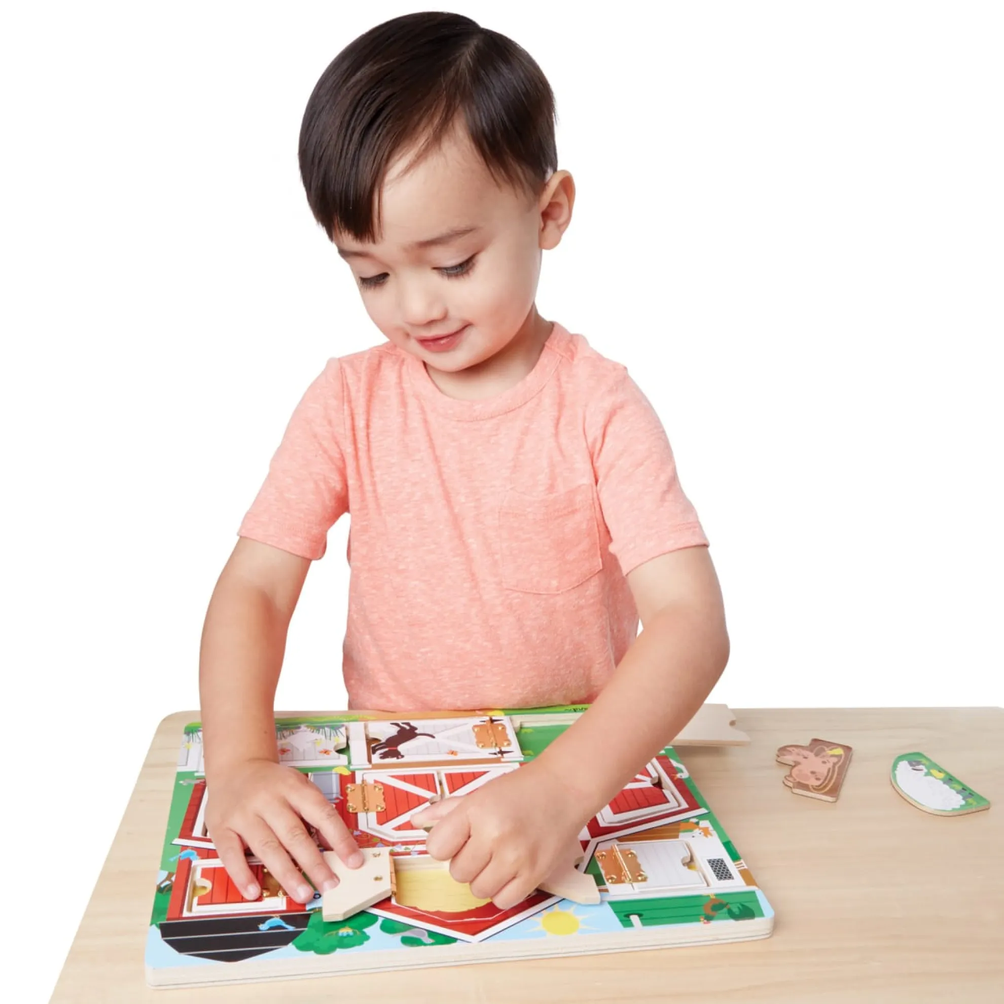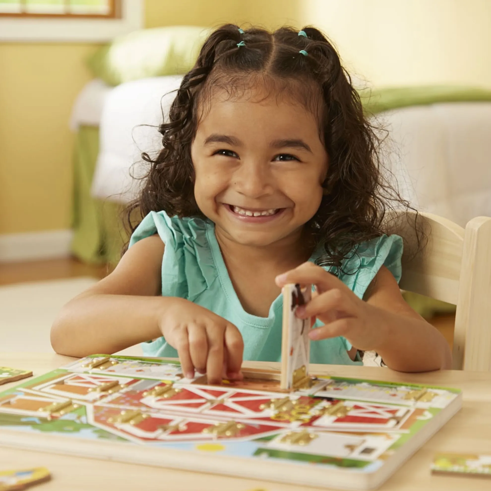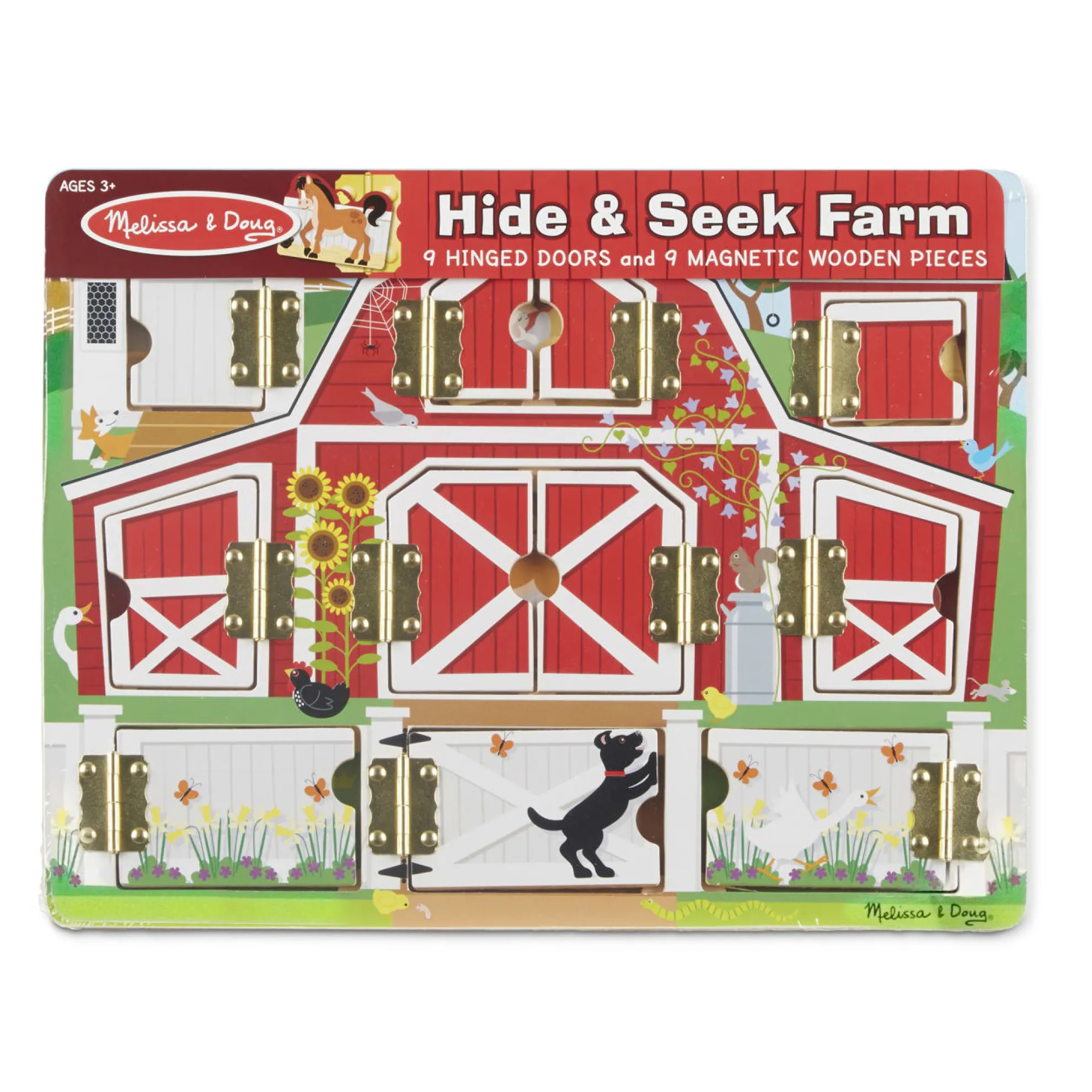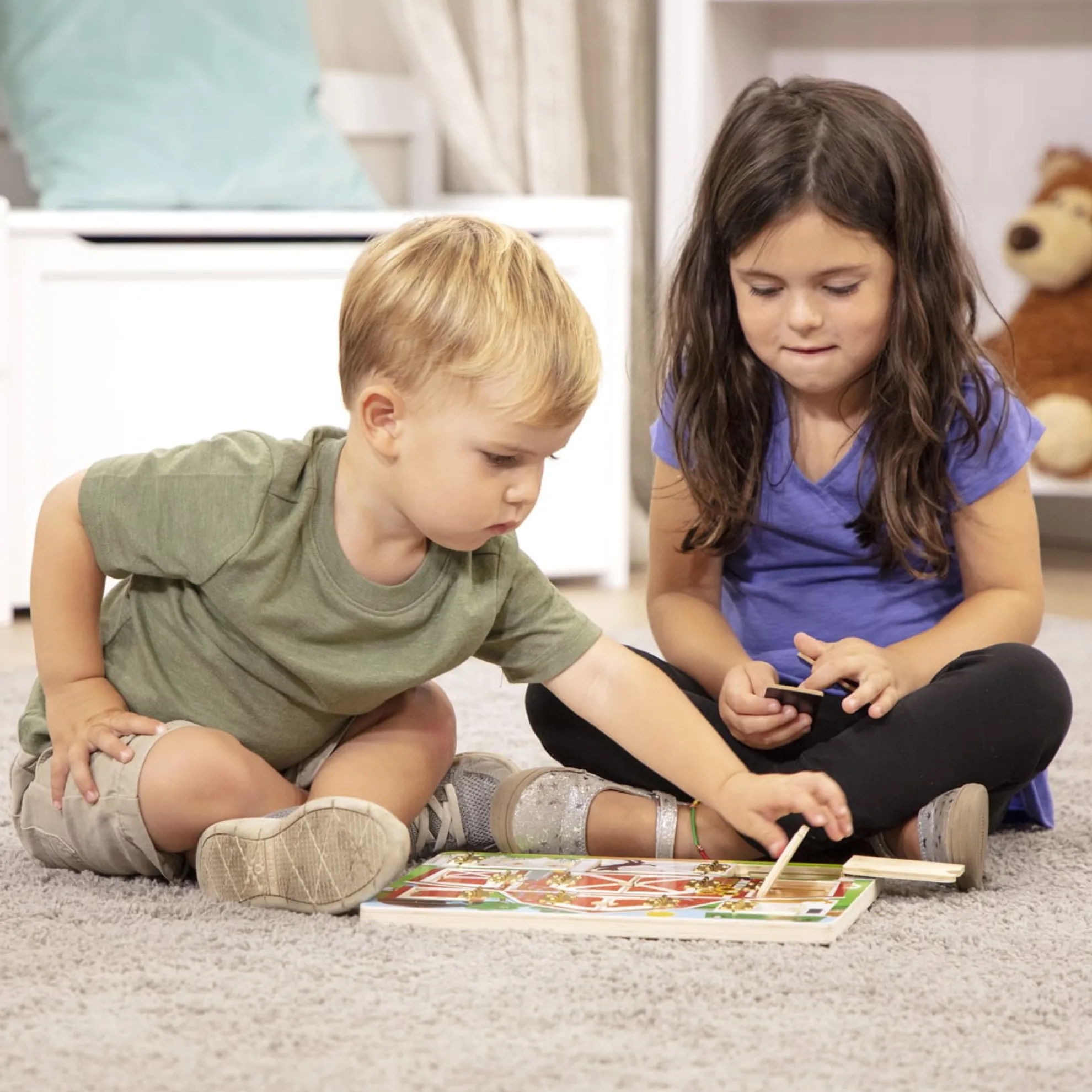 Here a chick, there a chick…behind each of the 9 hinged doors on this charming barnyard scene is a delightful, magnetic animal. Learning about animals while improving memory and fine motor skills will keep children busy and having fun on the farm for hours!