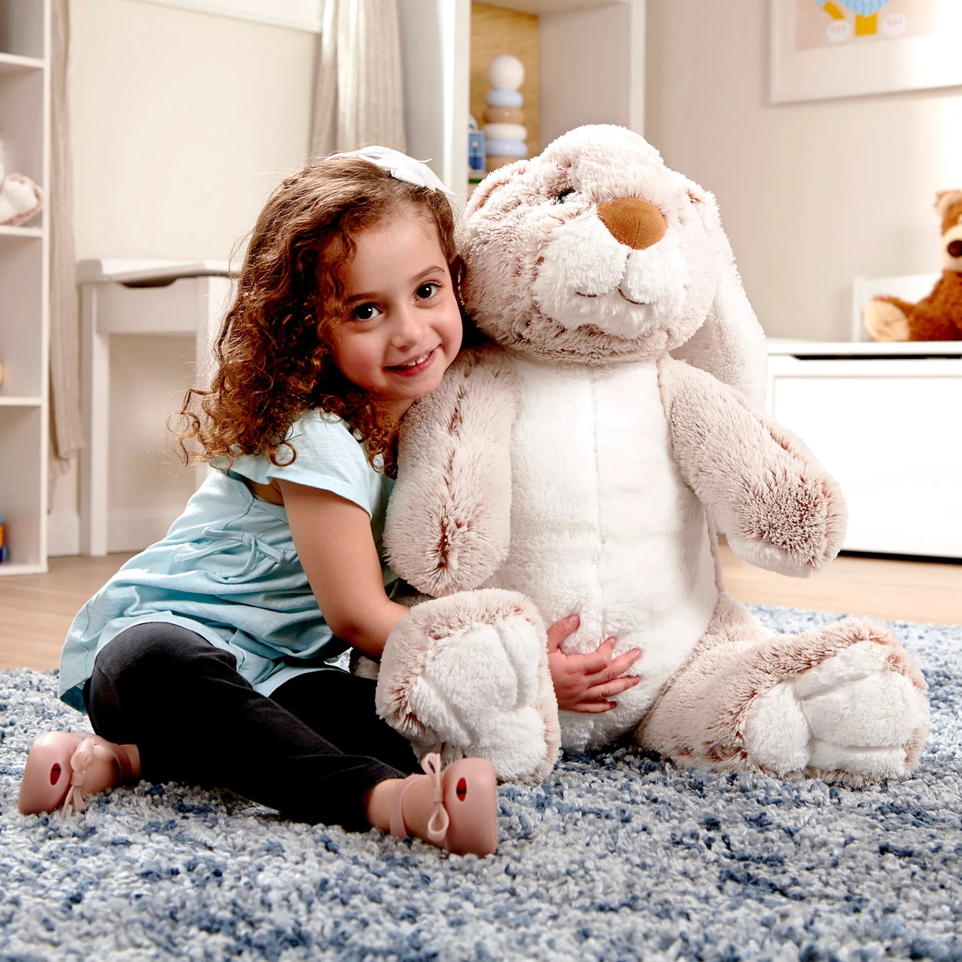 The adorably oversized lop-eared Jumbo Burrow Bunny will hop happily into any child’s life! Extra-soft and squishy plush and fill make this bunny perfect for petting and hugging. Durably made from top-quality materials, it will last through years of cuddles. The two-toned beige bunny rabbit sits about 21 inches tall and 20 inches wide. With a sweet face, long ears, and big, floppy feet, it’s ideal for kids’ rooms, from nurseries to college dorms!