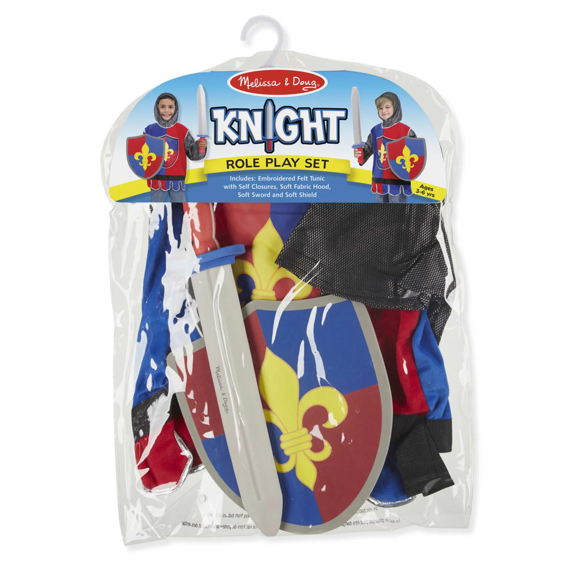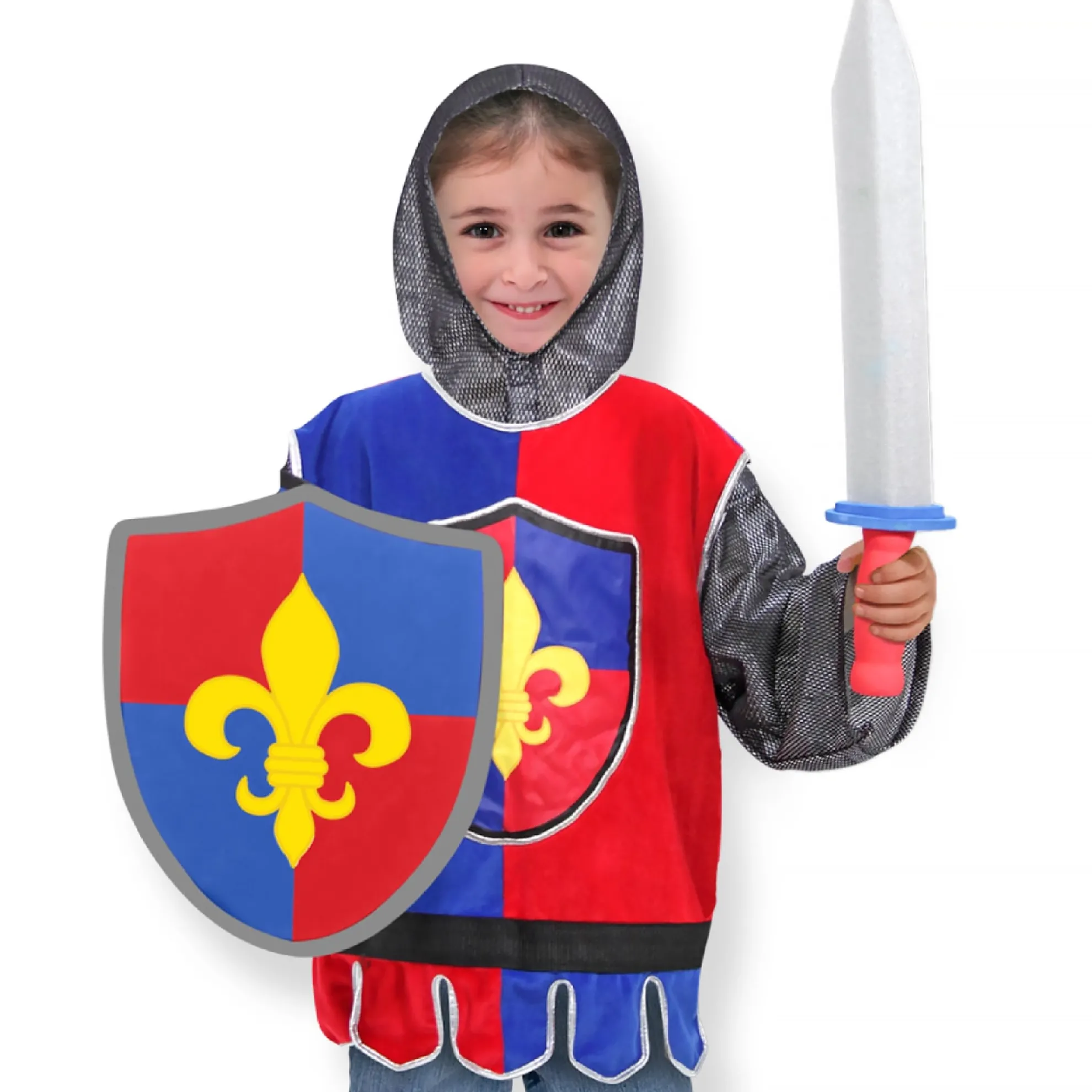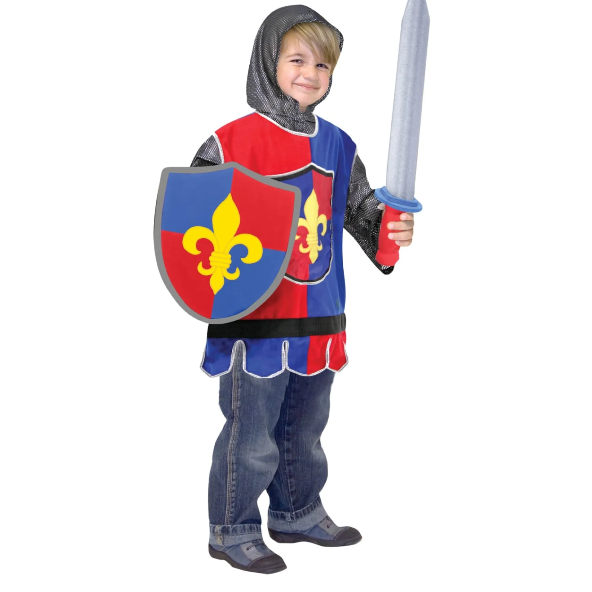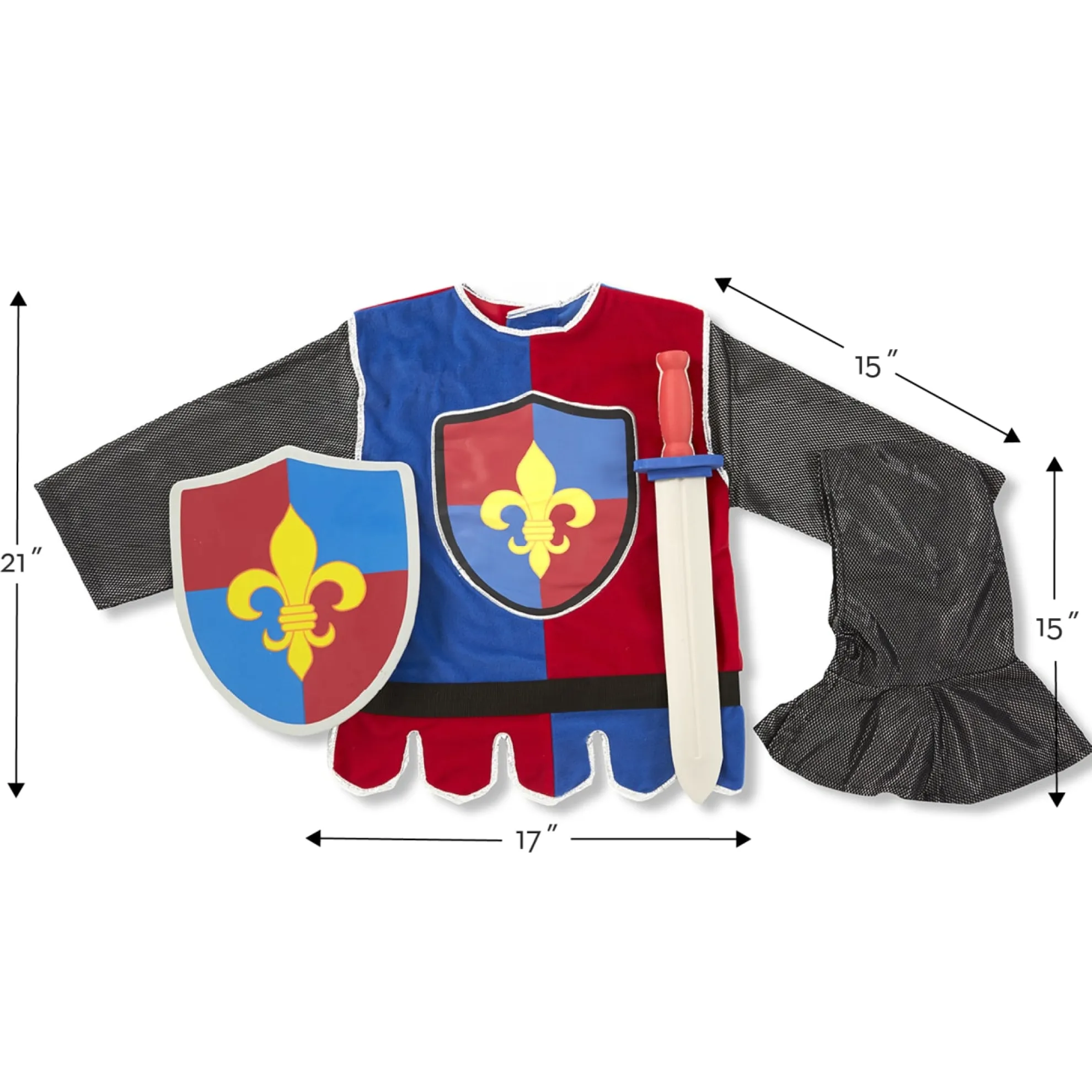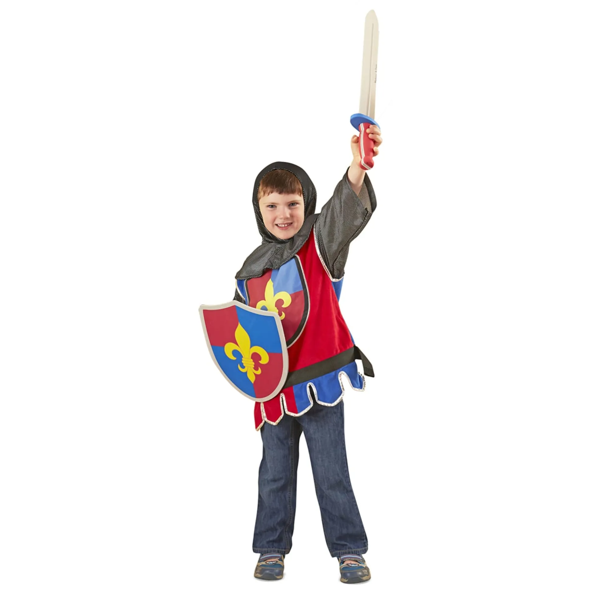 - Includes helmet, soft sword and shield.
