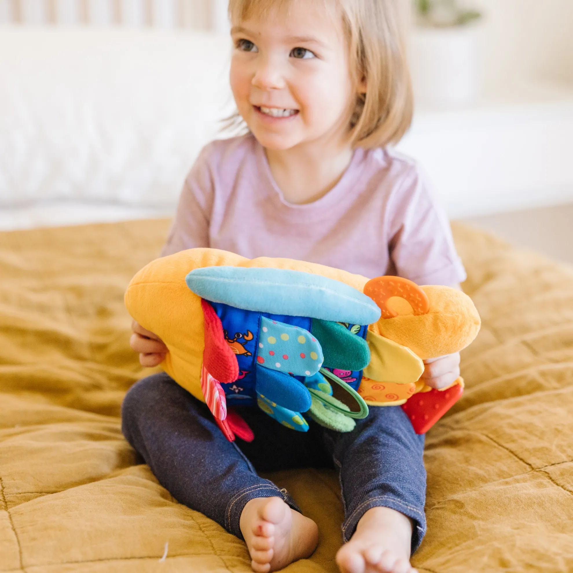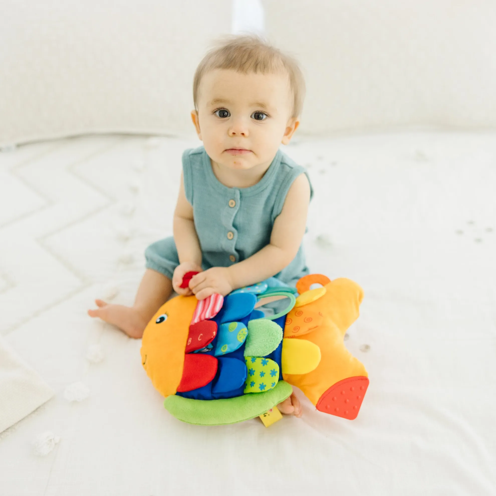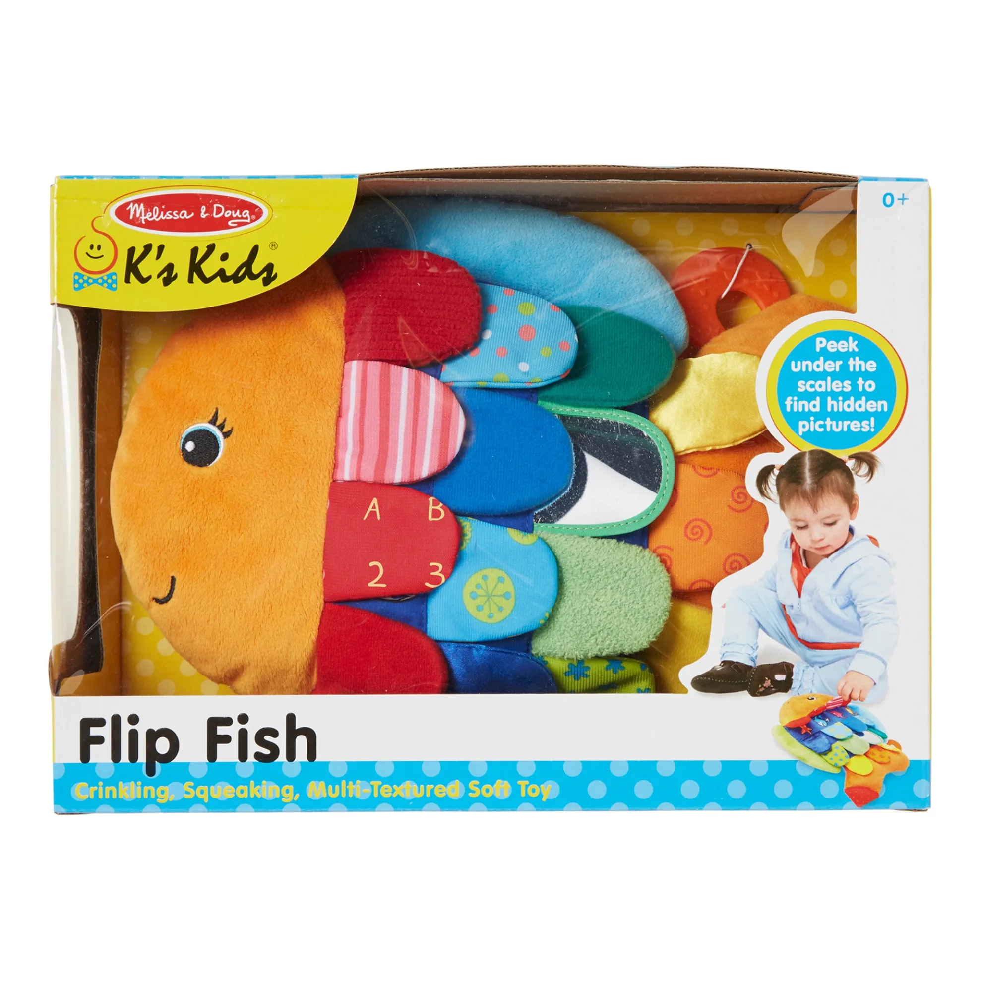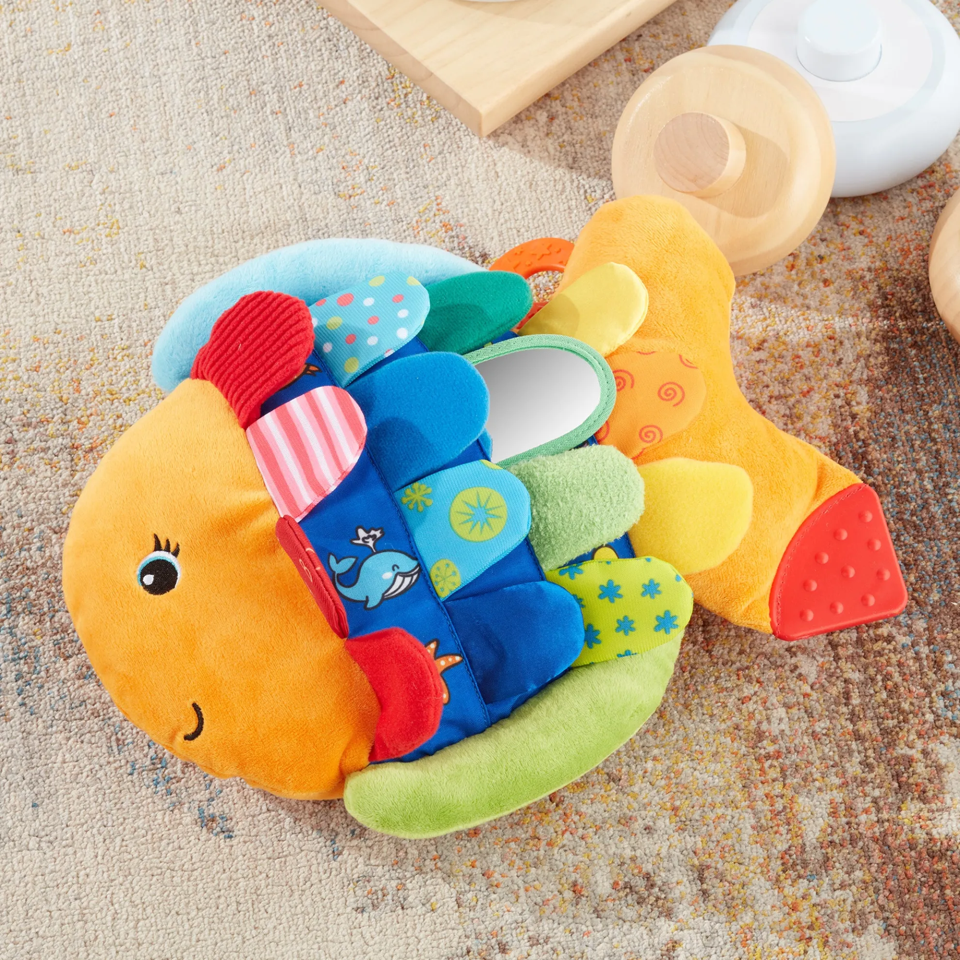 This cuddly fish friend will swim right into kids’ hearts! With bright colors, bold facial features, and washable fabrics that include a variety of patterns and hidden pictures, this crinkling, squeaking, multi-textured soft toy from Melissa & Doug K’s Kids is perfect for encouraging tummy time and fueling storytelling. Melissa & Doug K’s Kids toys nurture early childhood development in three key skill areas: physical, cognitive, and social. With interactive designs and multisensory features, K’s Kids promotes constructive play and effortless learning, keeping interest high and new skills flourishing throughout the baby and toddler years!