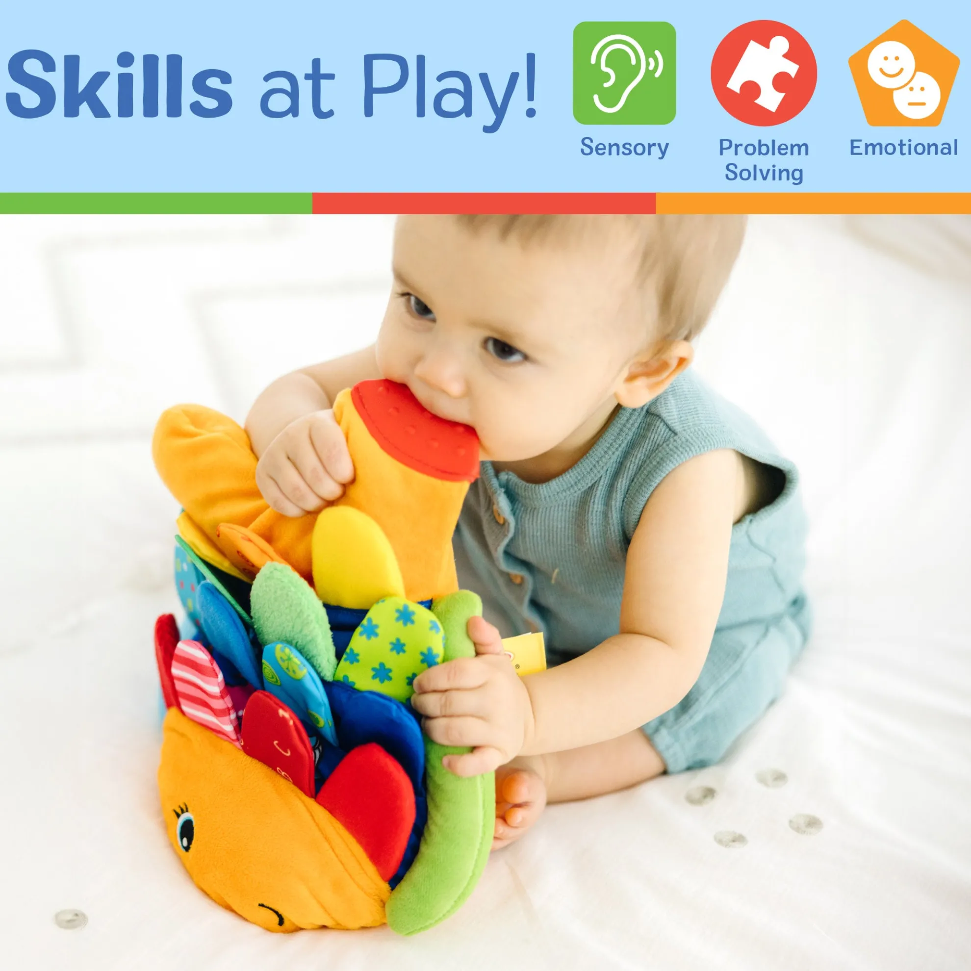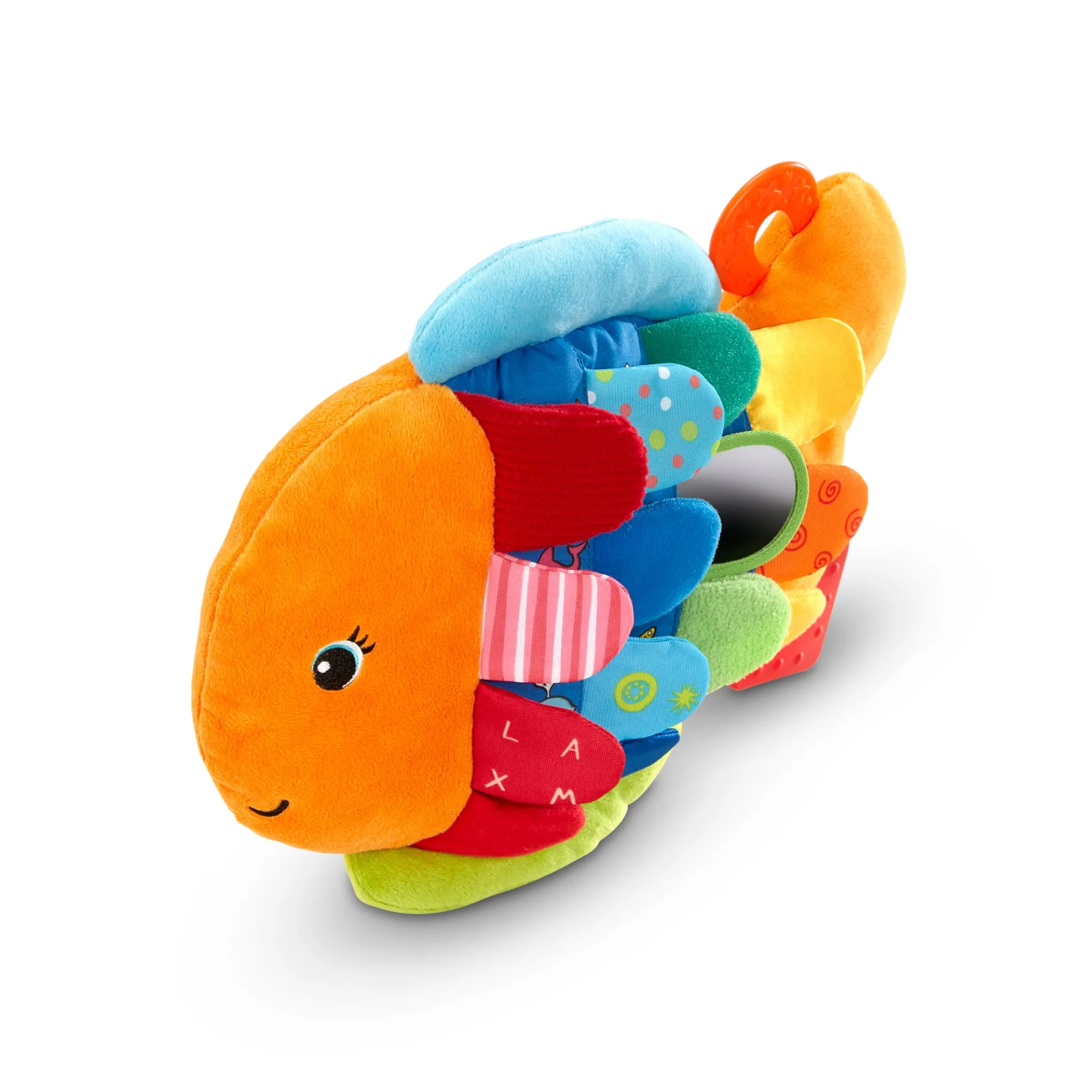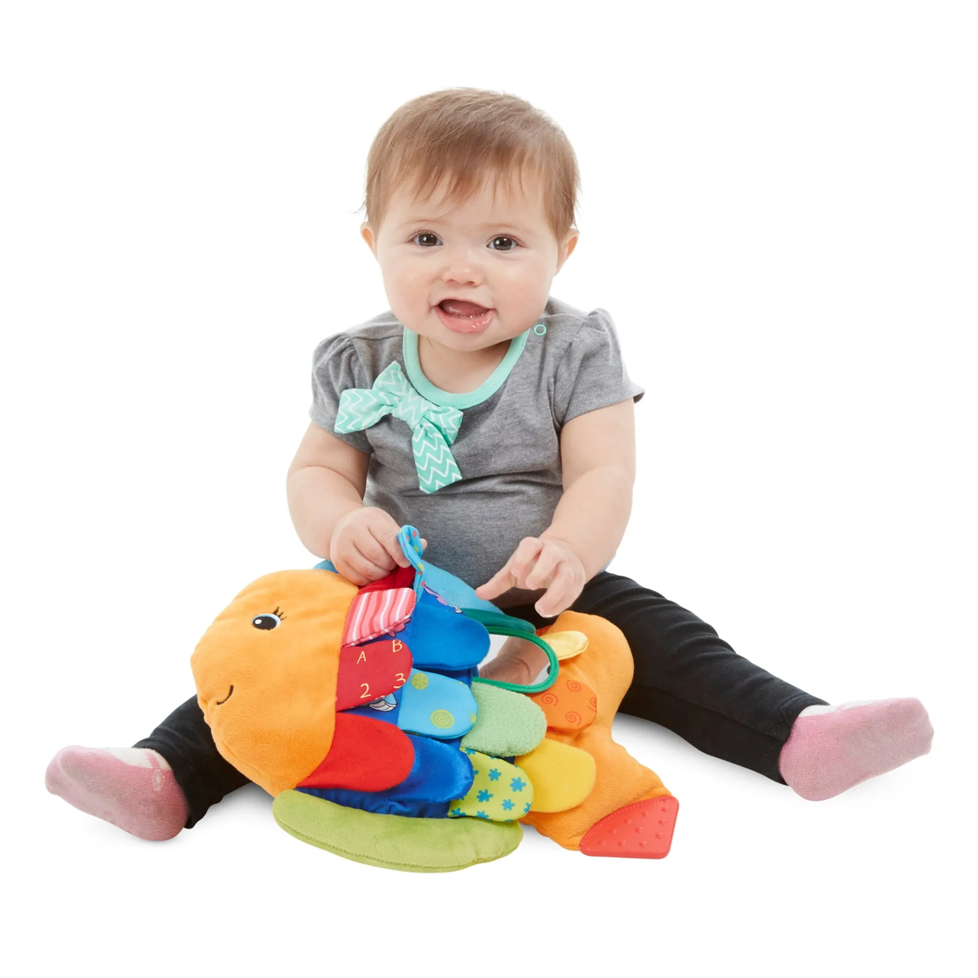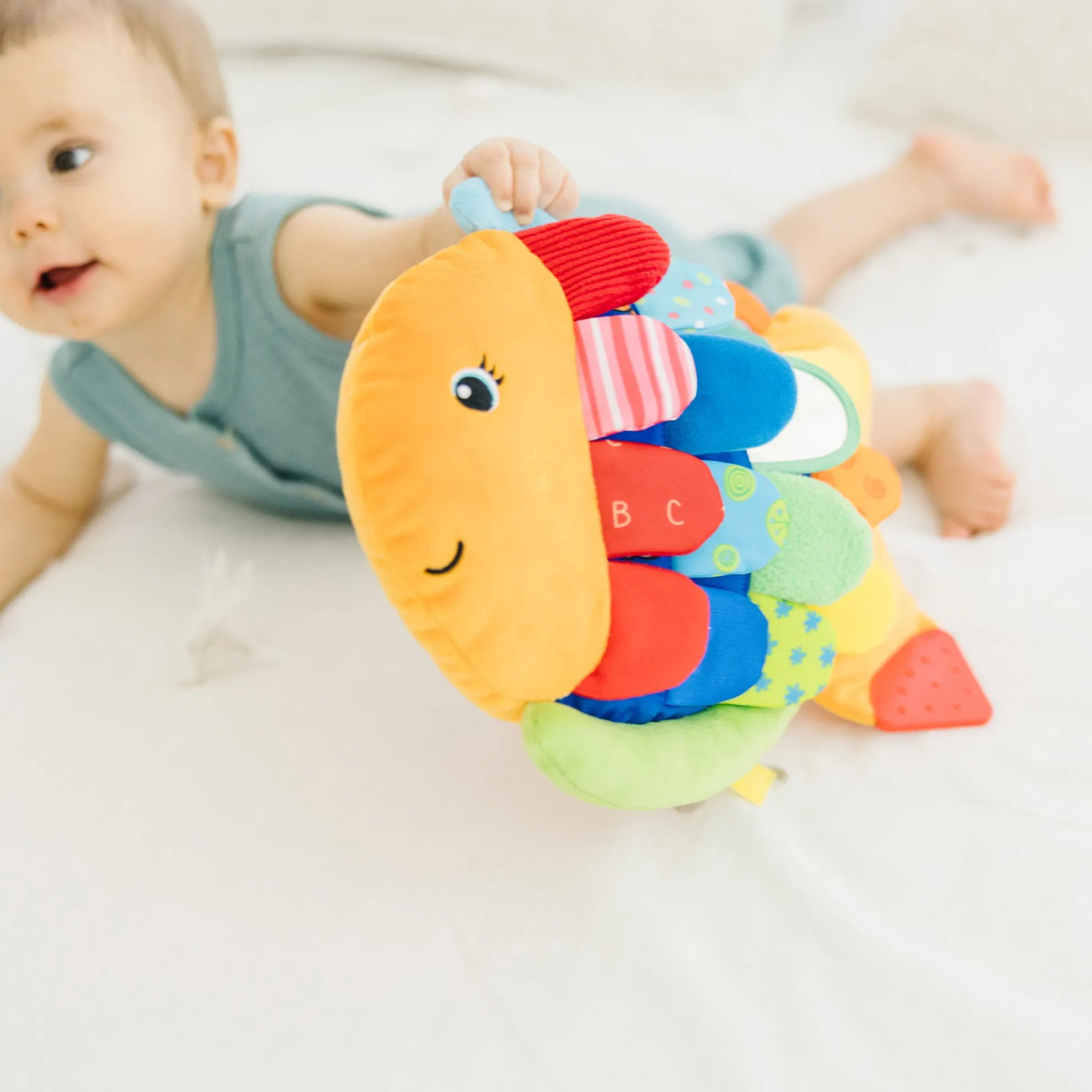 This cuddly fish friend will swim right into kids’ hearts! With bright colors, bold facial features, and washable fabrics that include a variety of patterns and hidden pictures, this crinkling, squeaking, multi-textured soft toy from Melissa & Doug K’s Kids is perfect for encouraging tummy time and fueling storytelling. Melissa & Doug K’s Kids toys nurture early childhood development in three key skill areas: physical, cognitive, and social. With interactive designs and multisensory features, K’s Kids promotes constructive play and effortless learning, keeping interest high and new skills flourishing throughout the baby and toddler years!
