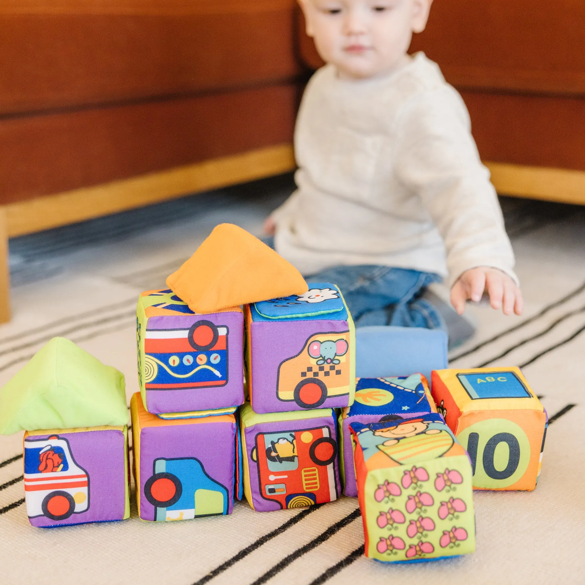 - Soft, lightweight pieces (10 cubes and 4 triangles) are easy for young children to lift and manipulate