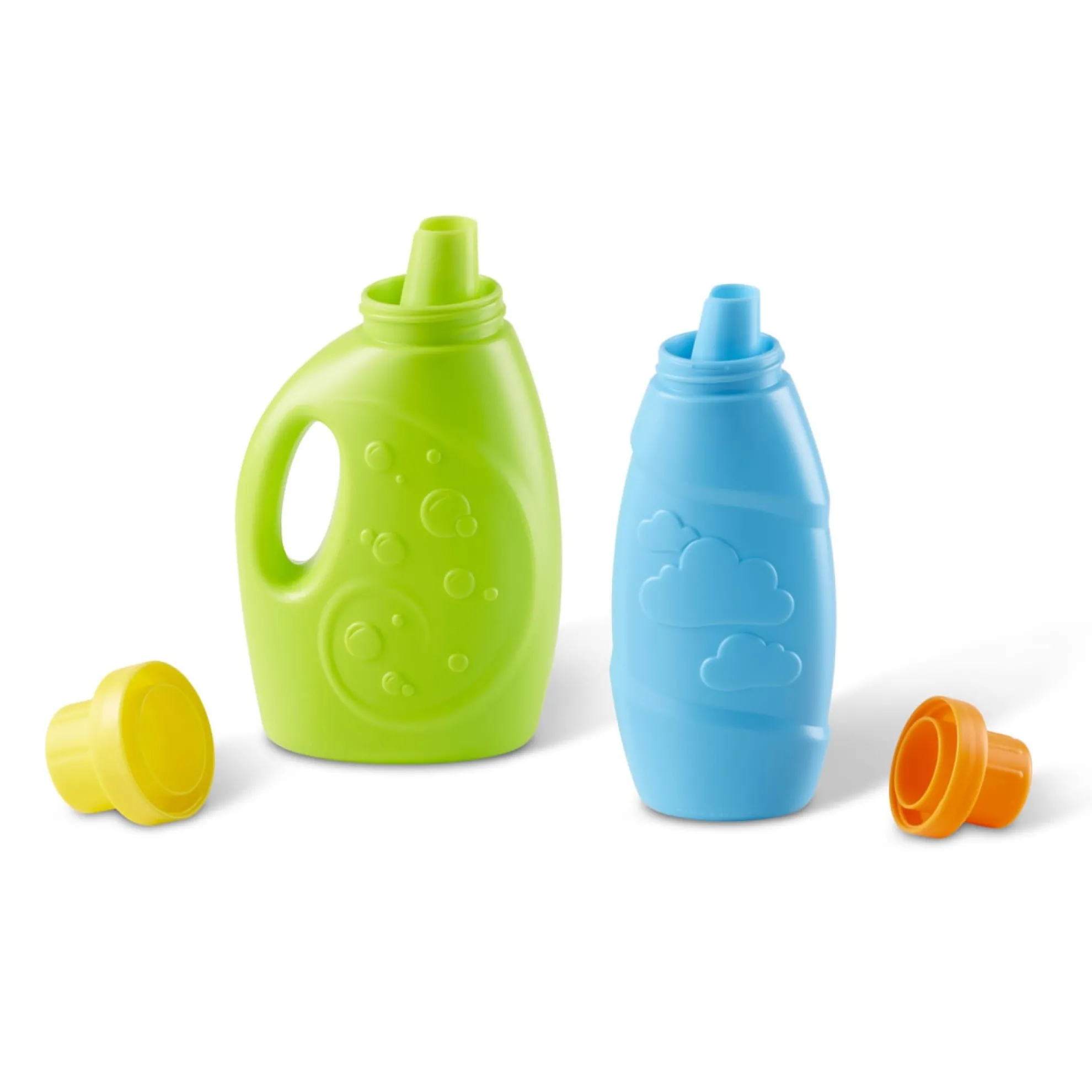 - Includes box of three pretend dryer sheets, working spray bottle, detergent bottle and fabric softener bottle with removable lids for measuring