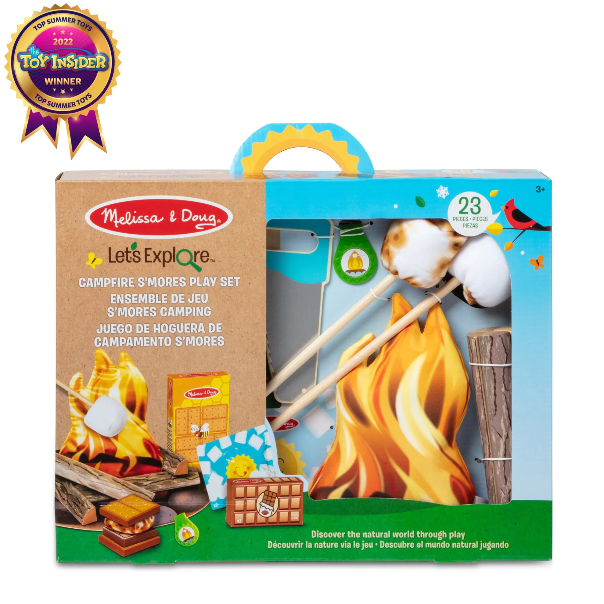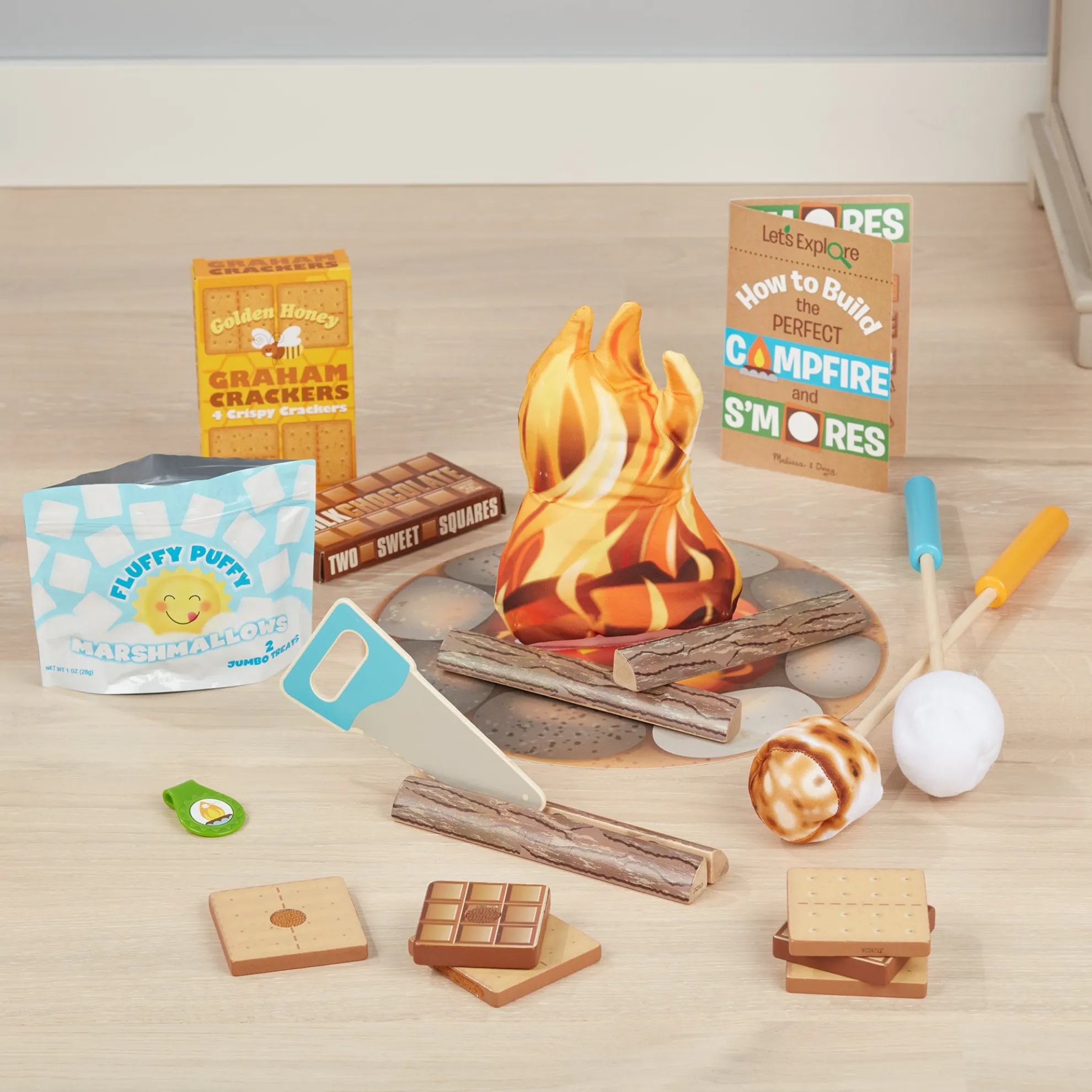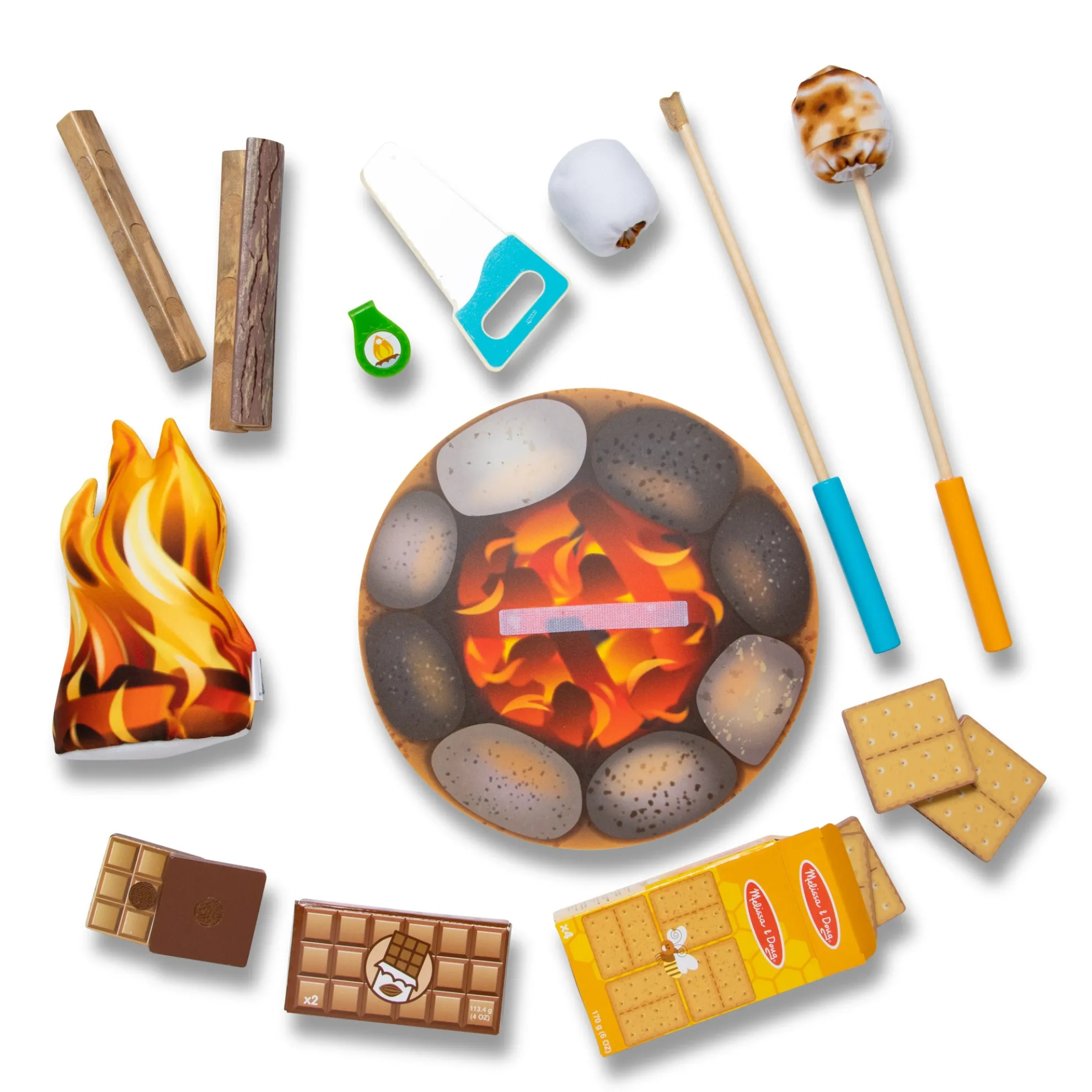 - 23-piece pretend play campfire with everything needed to make play food s ‘mores