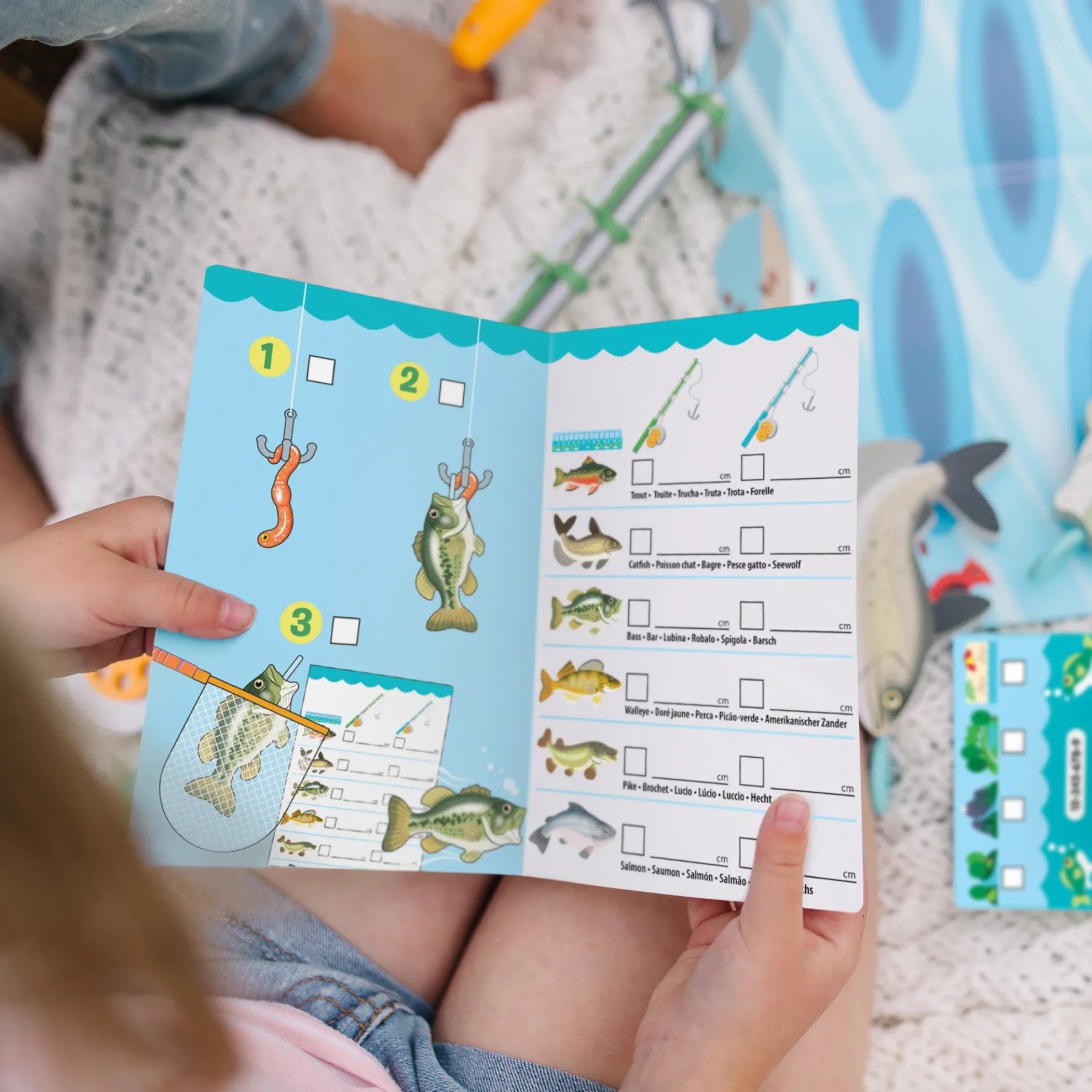 - Add to the fishing experience with fish guide and activity cards, ruler for measuring catches, double-sided mat for warm or cold weather fishing, durable tackle box to store supplies, collectible medallion