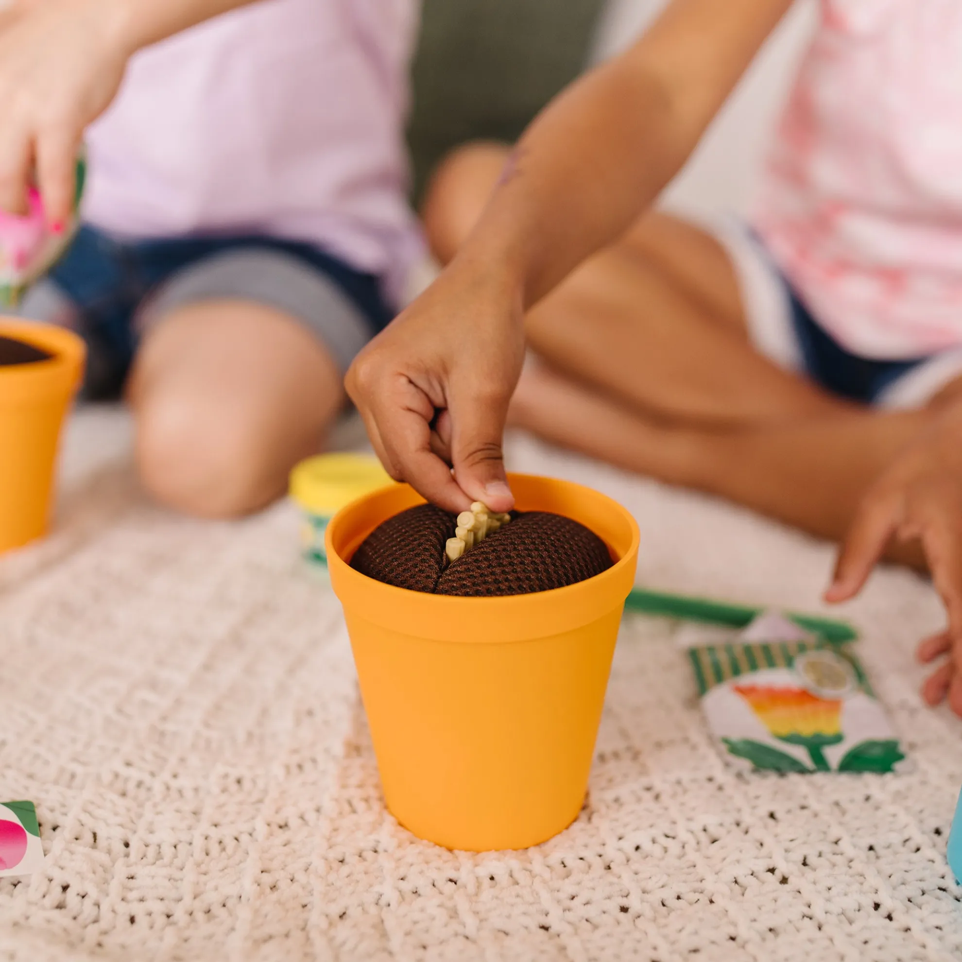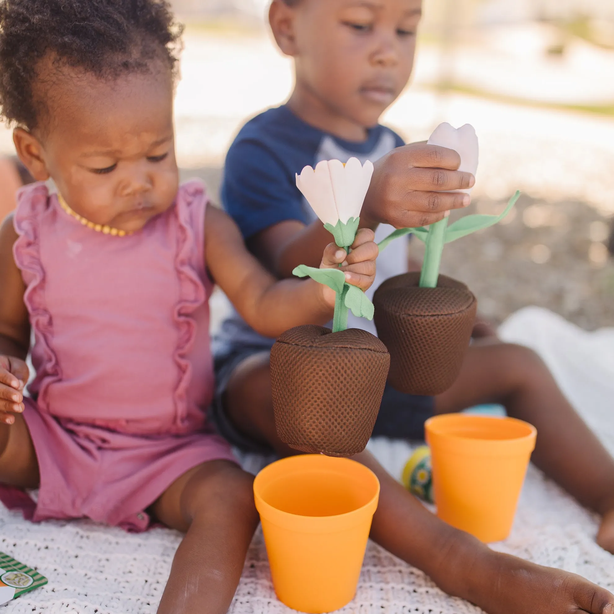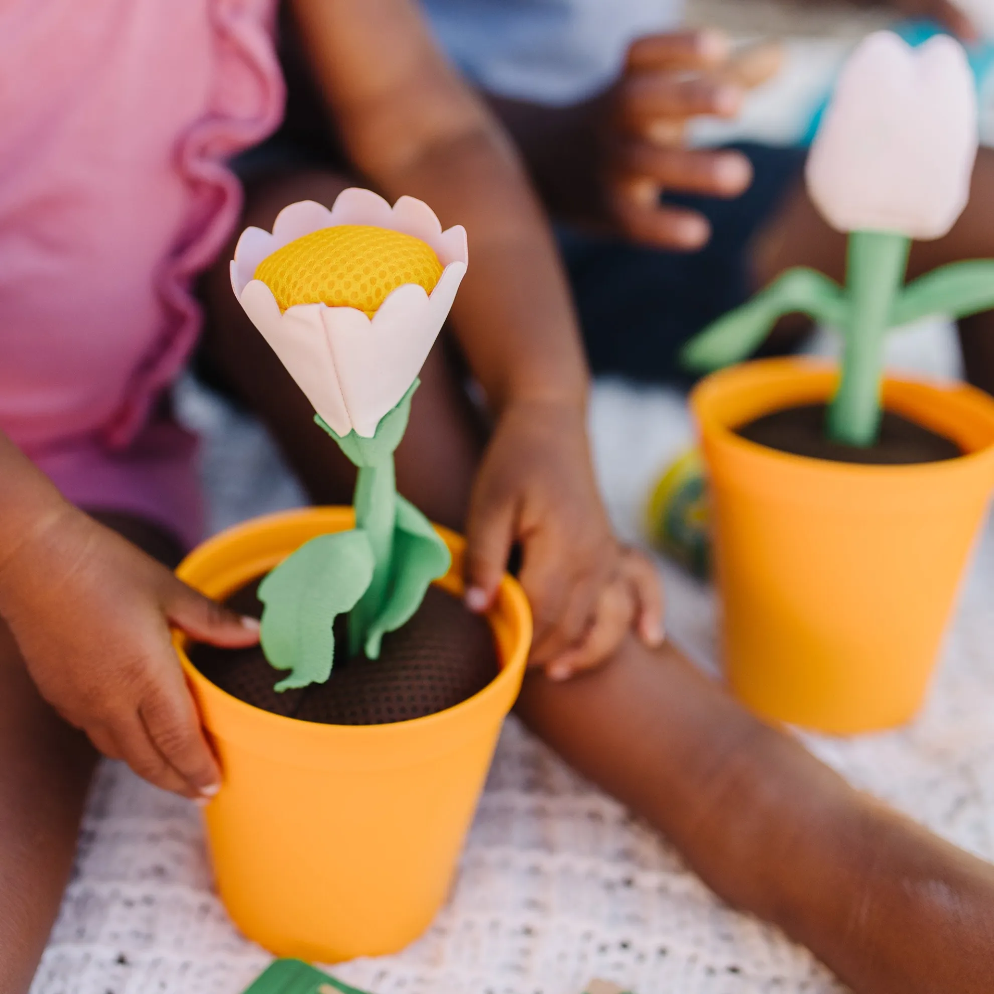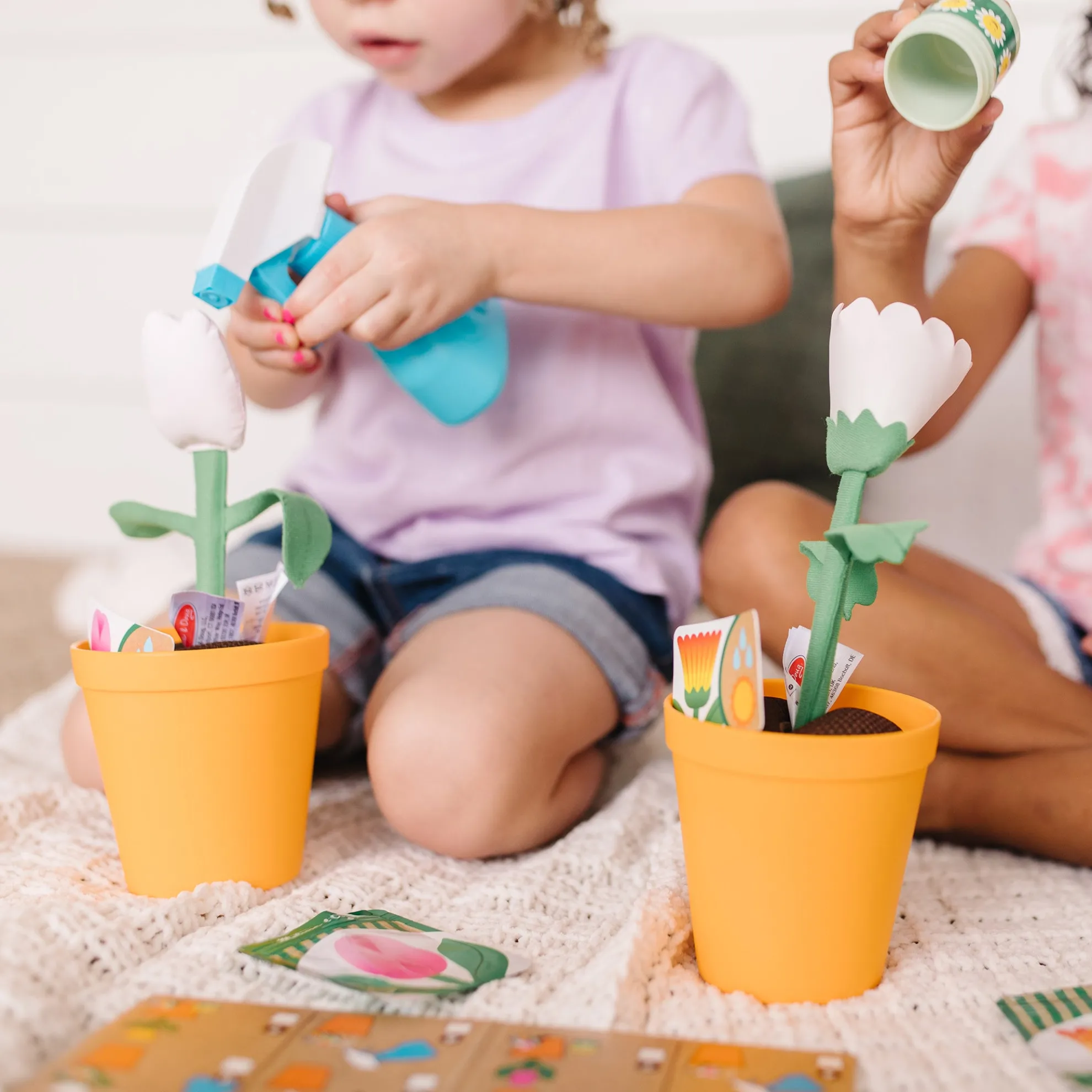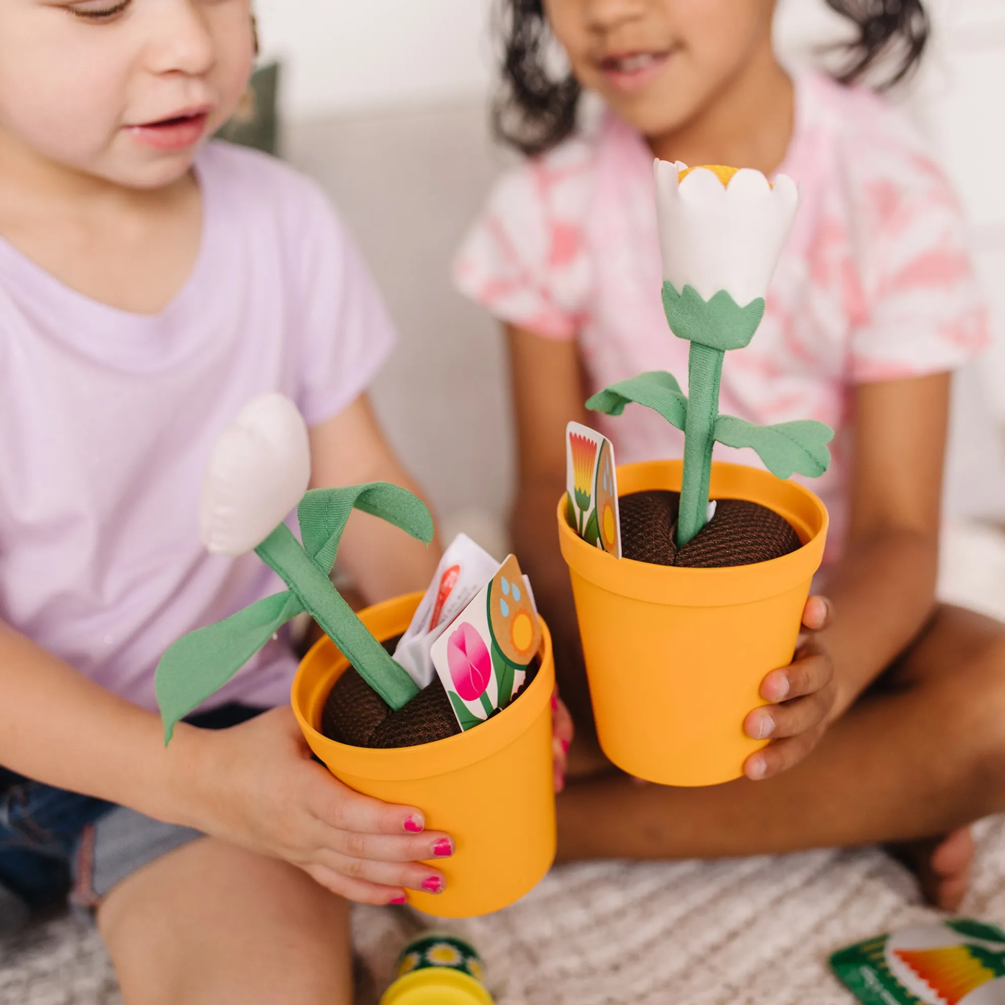 - Make a pretend play flower garden blossom and grow with this 16-piece play set with color-changing flowers