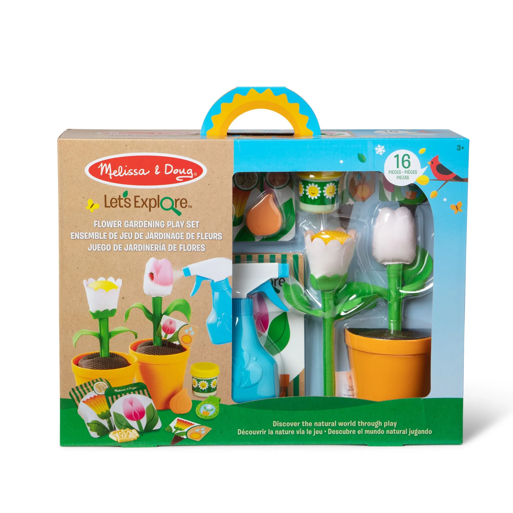 Explore the hands-on joy of making a garden grow, anywhere, anytime with color-changing pretend play flowers! Plant play daisy seeds and a tulip bulb in the spongey soil inserts, mark the spot with plant tags, pretend to “fertilize,‚Äù and spray to water. Slide the daisy or tulip into the flowerpot, then squirt with the spray bottle to see the flowers magically “bloom‚Äù as water changes the surface from white to beautiful colors! Let ‘s Explore encourages kids three and older to connect with the natural world through imaginative play! Discover the joy of outdoor adventures that instill curiosity and confidence while inspiring kids to say, “Let ‘s Explore‚Ñ¢‚Äù!
