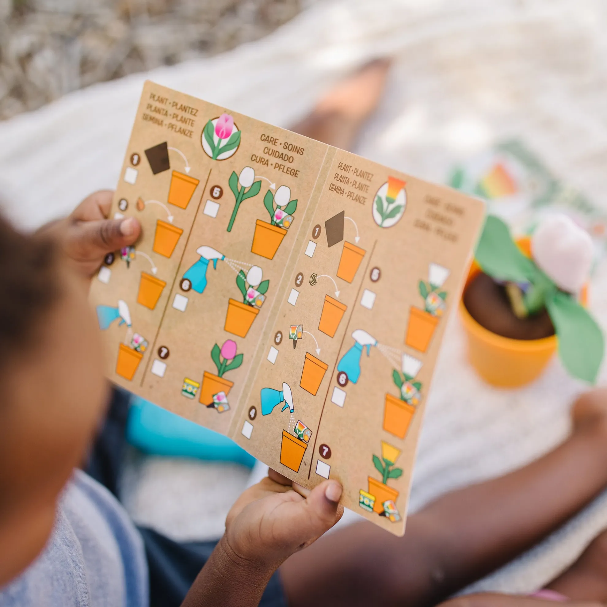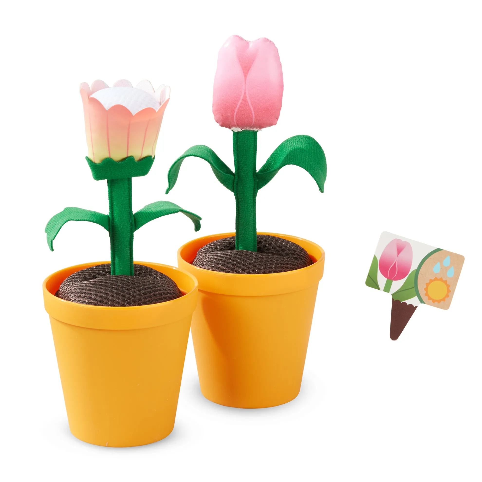 - Includes 2 flowerpots, 2 dirt sponge inserts, play seeds and bulb in packets, 2 plant tags, plant food jar, spray bottle, 2 color-changing flowers, reusable planting guide, collectible medallion