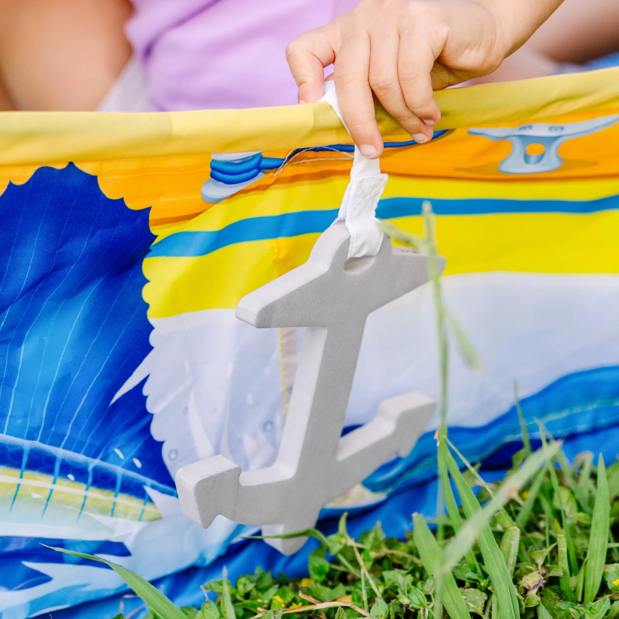 Let imaginations set sail and explore pretend play boating adventures anywhere, anytime with this easy-to-assemble sturdy tent-fabric sailboat! The play set includes a foam rudder and anchor, a removable, reusable sign to name the vessel, and a collectible Let’s Explore™ medallion. Special features include extra-sturdy material for the floor, sides, and sail, and realistic, detailed artwork. There’s plenty of room for multiple kids to play: Assembled boat is approximately three feet high, three feet long, and two feet wide. Pieces store in a handy take-along storage tote. Boat does not float; do not use in water. Let’s Explore™ encourages kids to connect with the natural world through imaginative play! Discover the joy of outdoor adventures that instill curiosity and confidence while inspiring kids to say, “Let’s Explore™”!