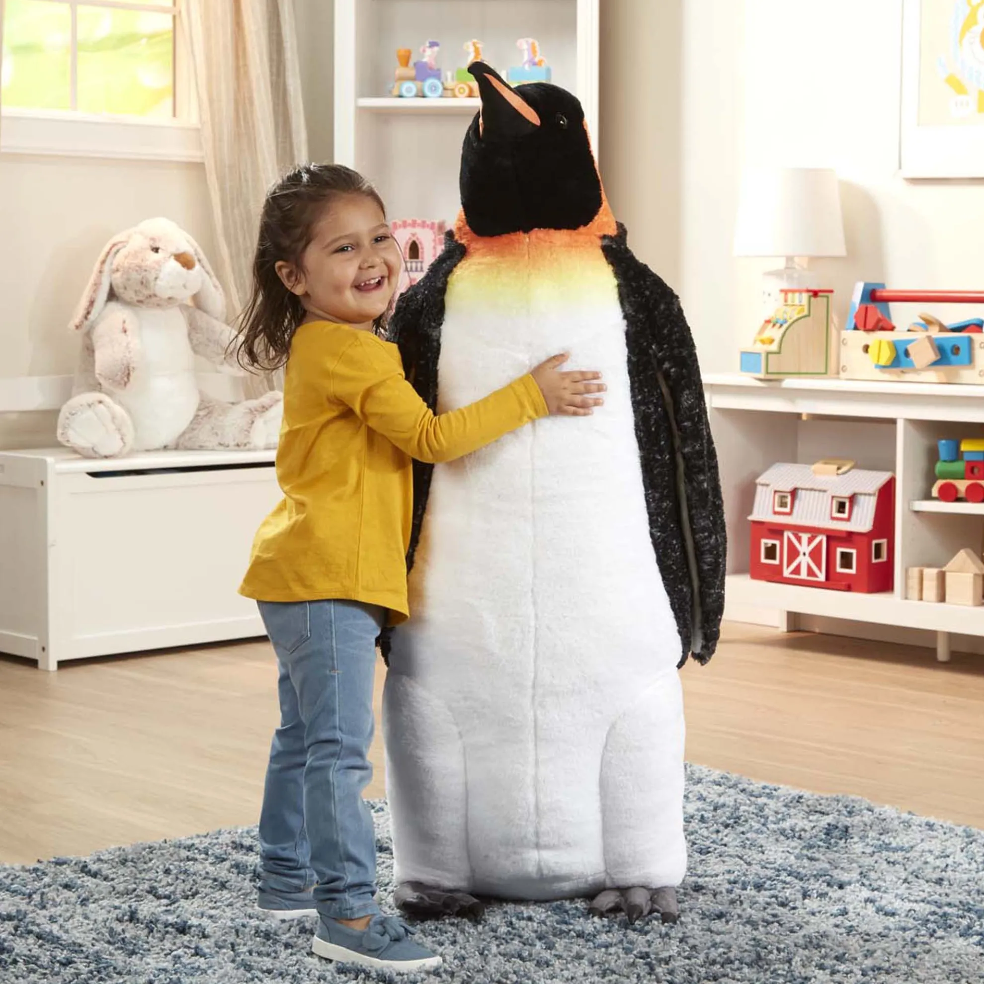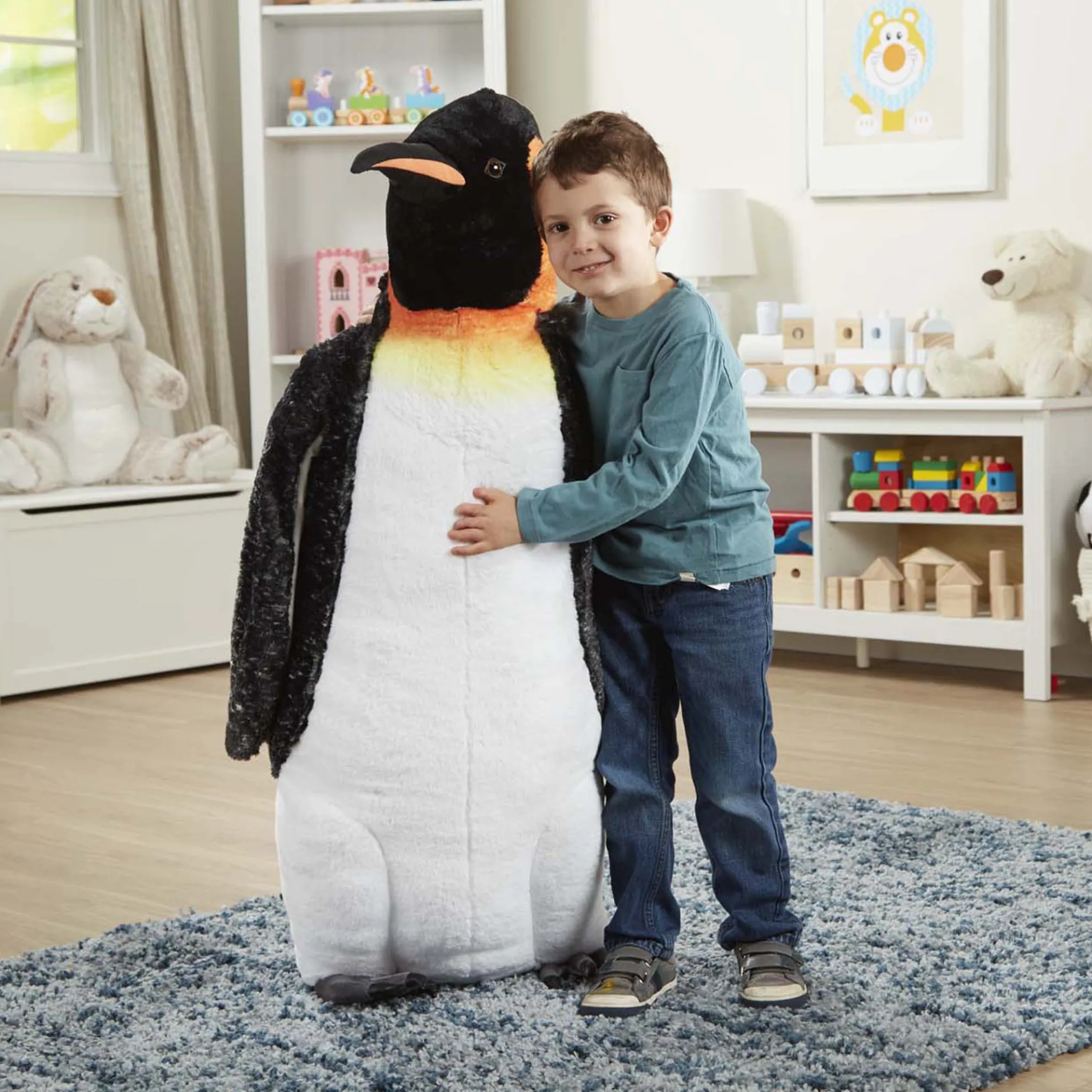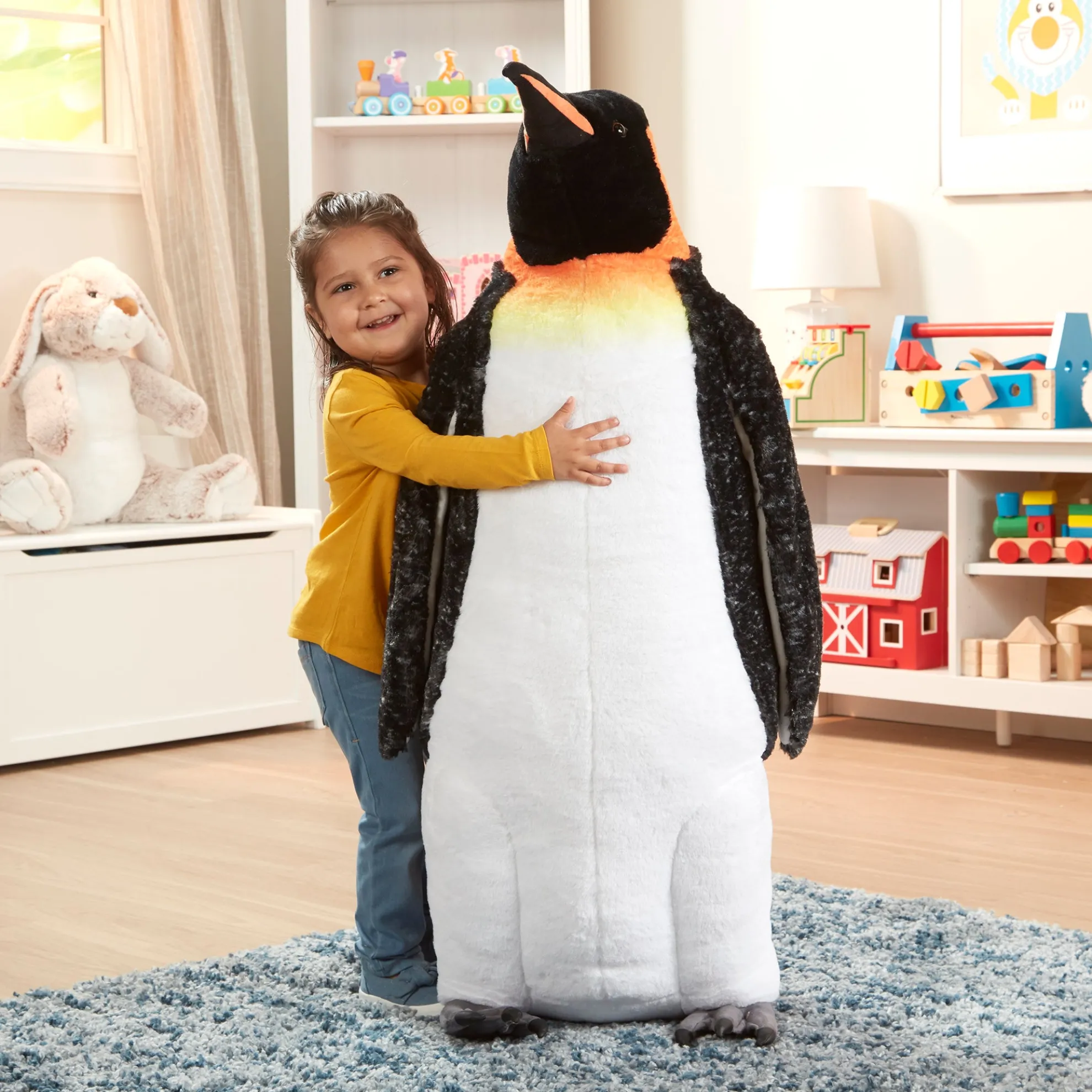 This gentle giant of a seabird is sure to waddle its way into the heart of any animal lover! Standing more than three feet tall (just like real full-grown emperor penguins), this regal bird’s super-silky-soft fur encourages hugs and cuddles, while quality construction and a strong interior structure keep it standing proudly for years to come. Sure to be the focal point of any room or play space, the penguin features realistic details like soft clawed feet that keep it standing upright,, a long beak stretching upward, and beautiful black, white, orange, and yellow coloring. This bird may never fly, but kids’ imaginations will certainly take flight with this adorable companion by their side!