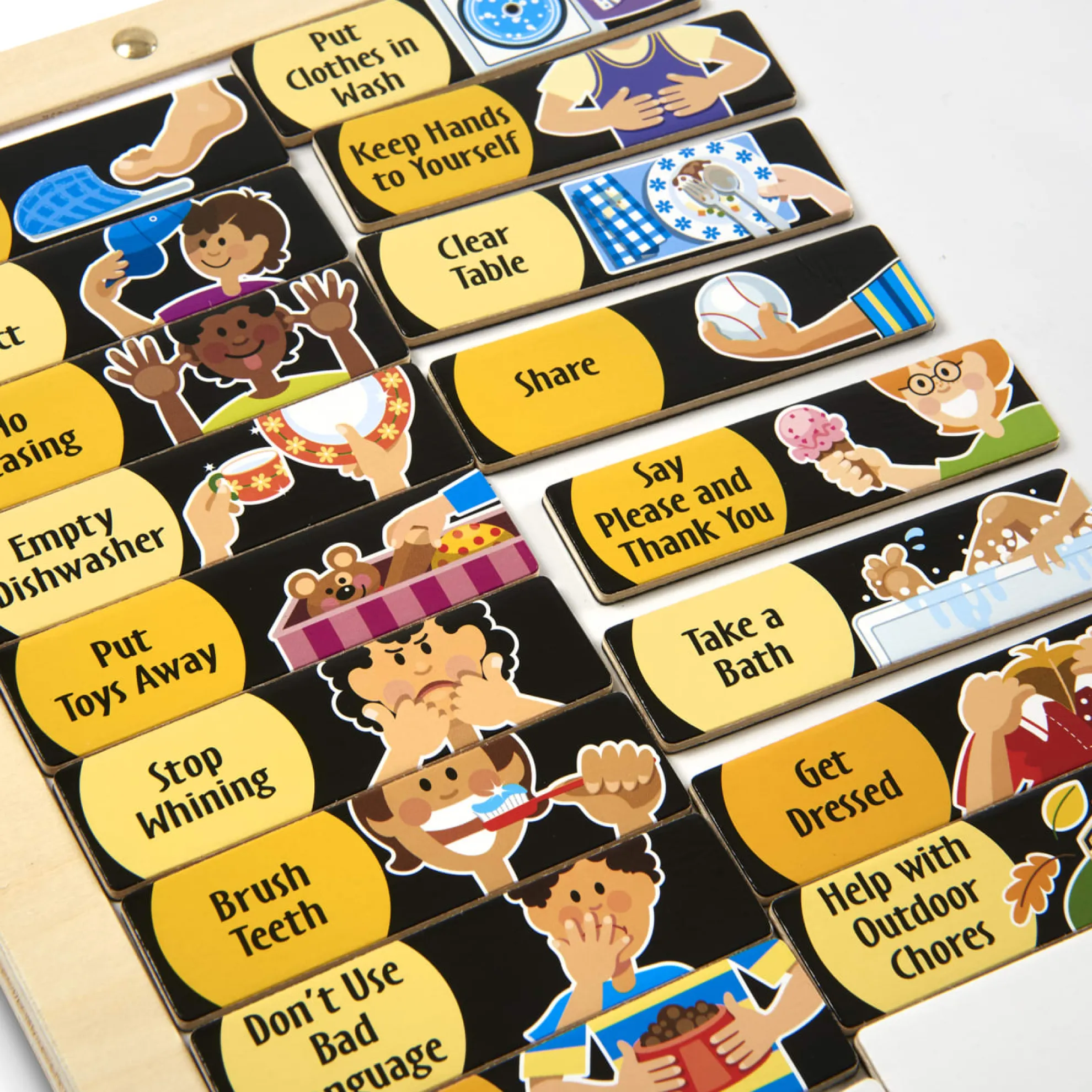 - Encourage good behavior with this wooden magnetic tracking-and-reward chart