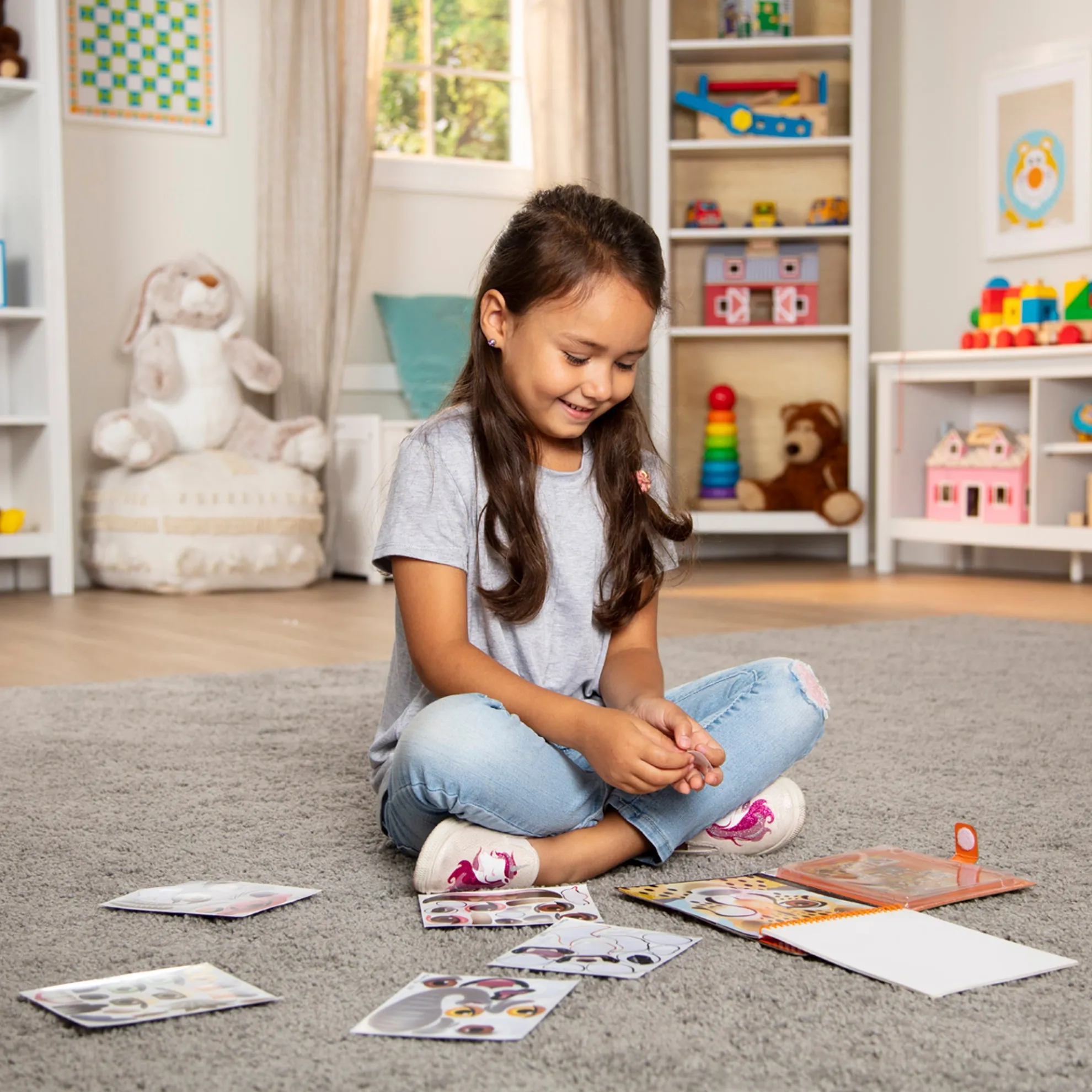 Take reusable sticker fun on the go! Fill 10 full-color glossy safari scenes with 66 peel and press cling-style stickers to make fun or funny faces on the wild animals, then remove the stickers and make more faces. The handy, compact, spiral-bound pad includes built-in sticker storage, making this the perfect travel activity for kids four and older.