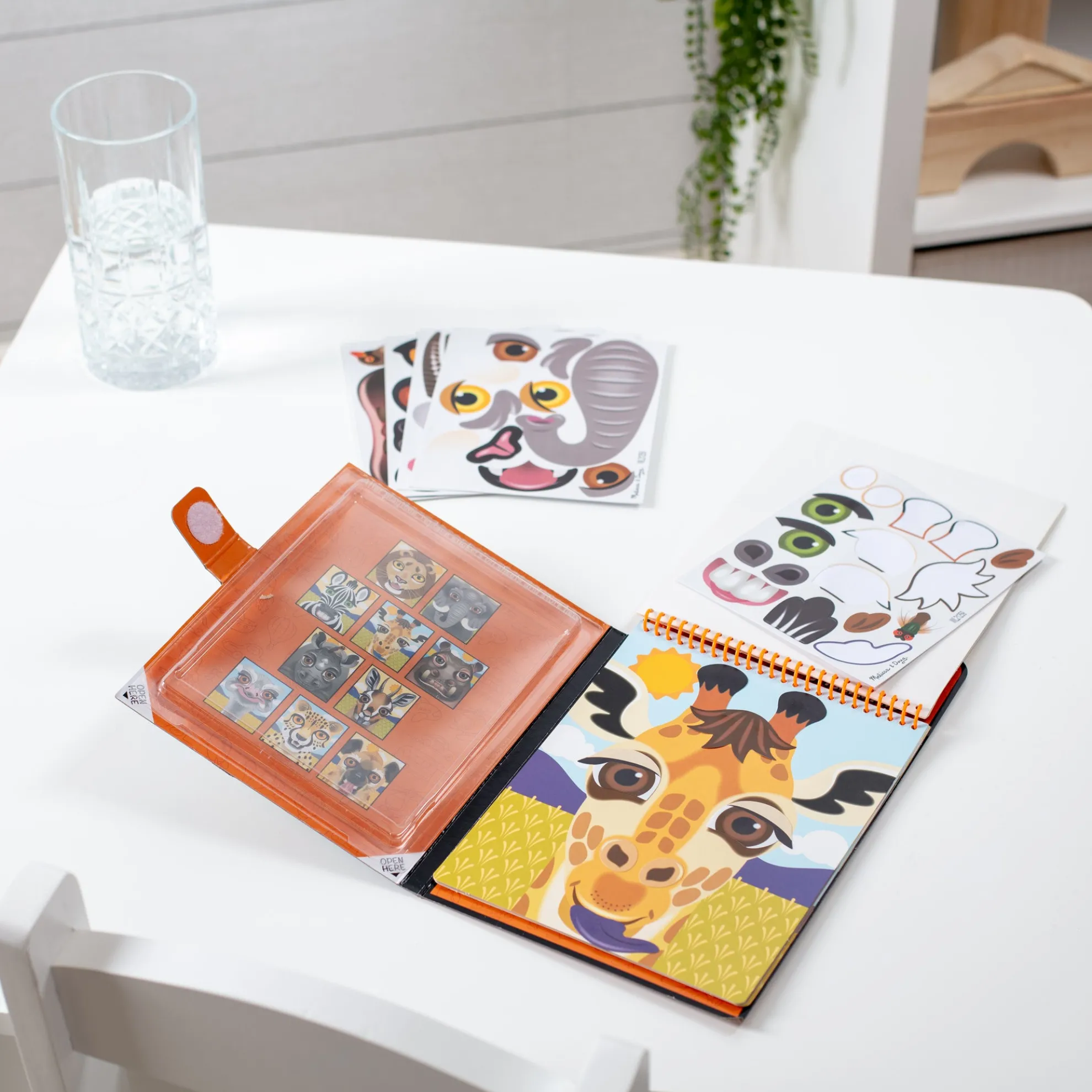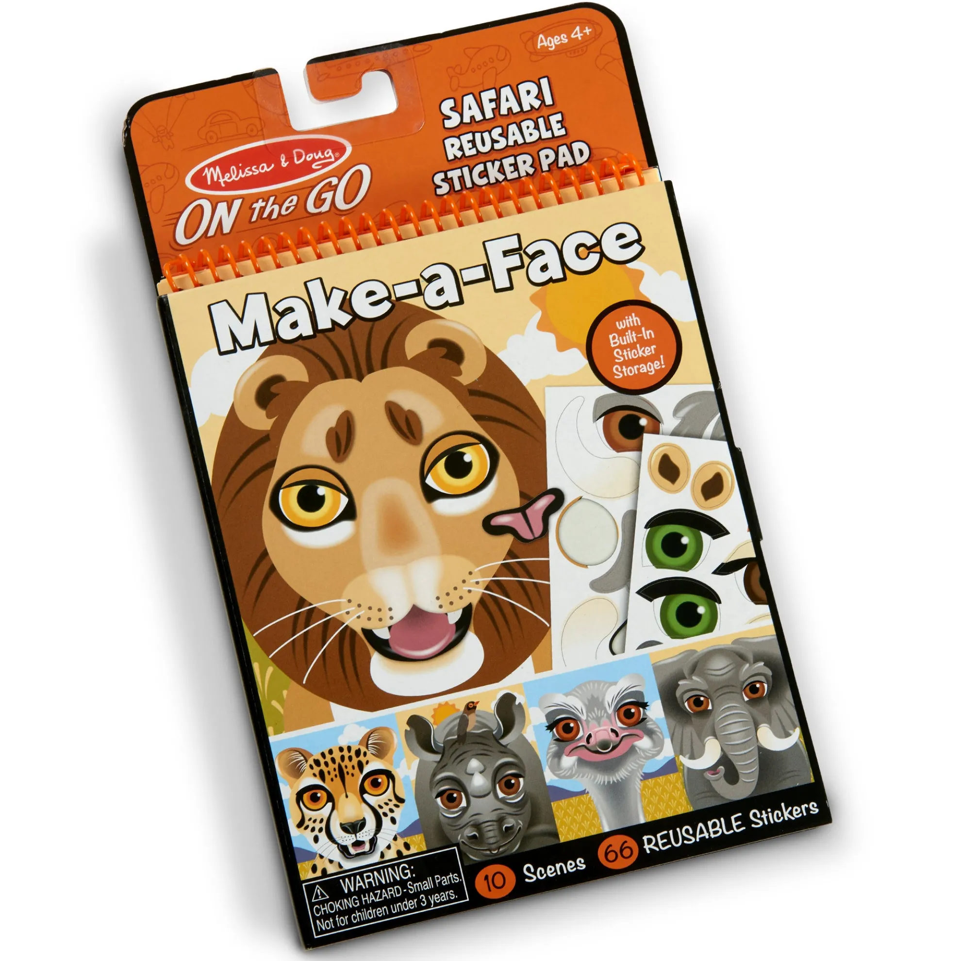 - Make fun and funny safari animal faces again and again with this reusable On the Go sticker pad