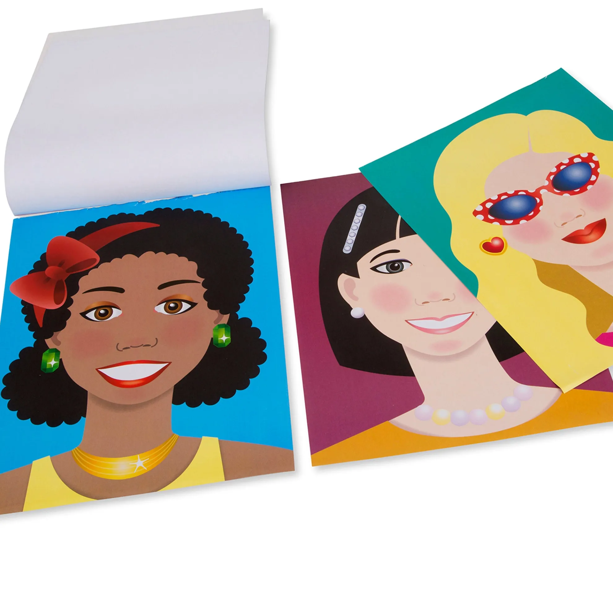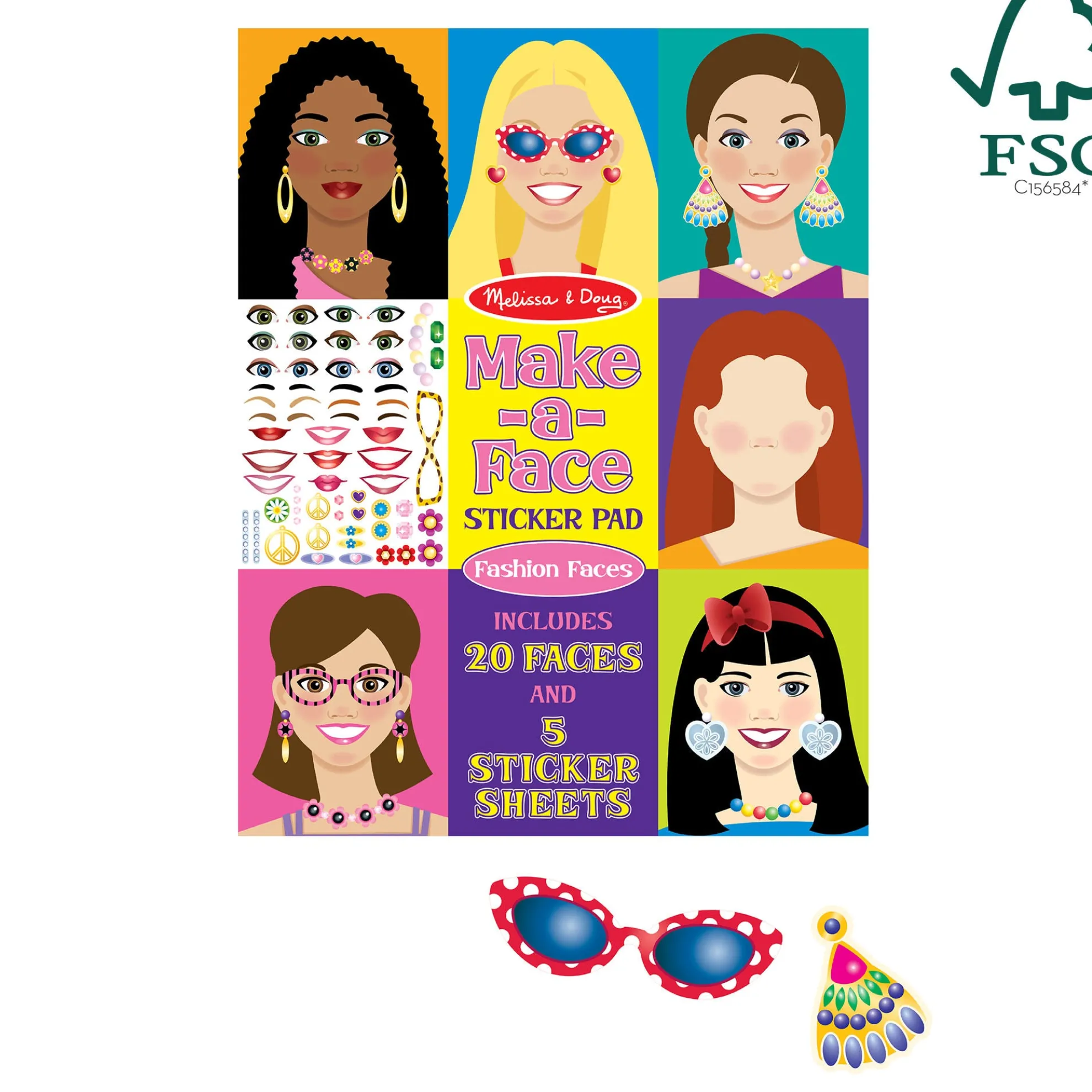 With 250 stickers of pretty features and glamorous accessories and a pad full of models to decorate, this stylish sticker pad has everything needed to make 20 fabulous faces! Just tear out a background page, then add the mouth, eyes and accessories of your choice. With so much to choose from, it’s easy to put together the look of your dreams! This product is certified by the Forest Stewardship Council. FSC certification ensures that products come from responsibly managed forests that provide environmental, social, and economic benefits, and that forests are protected for future generations. Please note that FSC certification applies to new inventory only (FSC C156584).