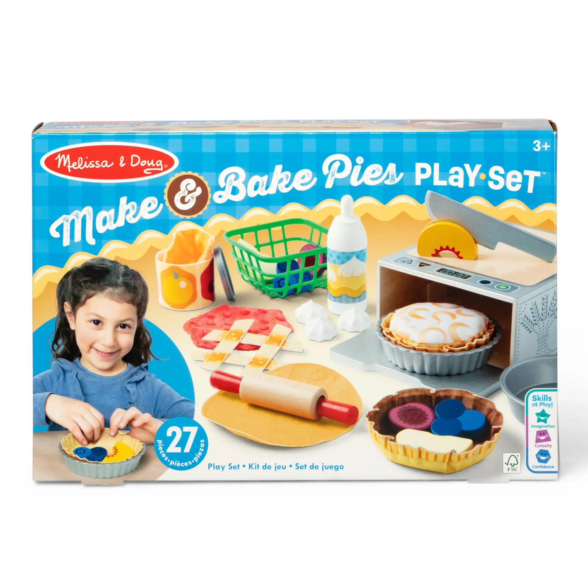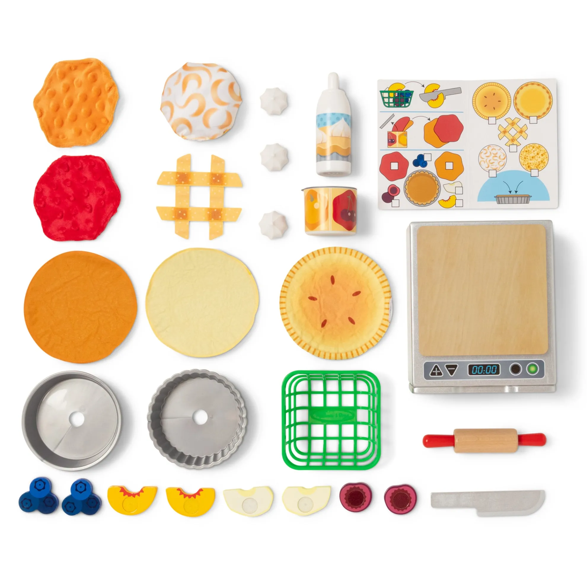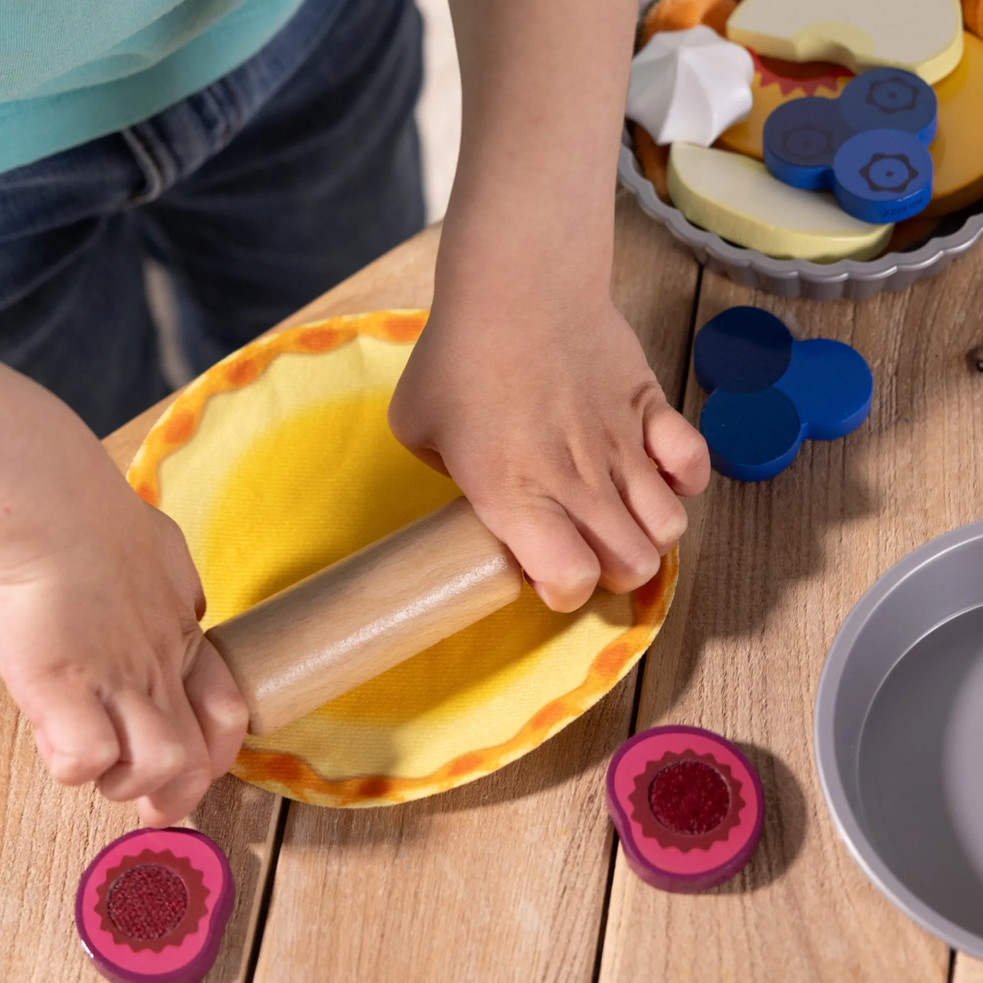 - Prepare and pretend to bake scrumptious-looking Melissa & Doug play pies with rollable and moldable crusts, wooden cutting fruit, fabric pie fillings, and whipped cream shaker can and dollops