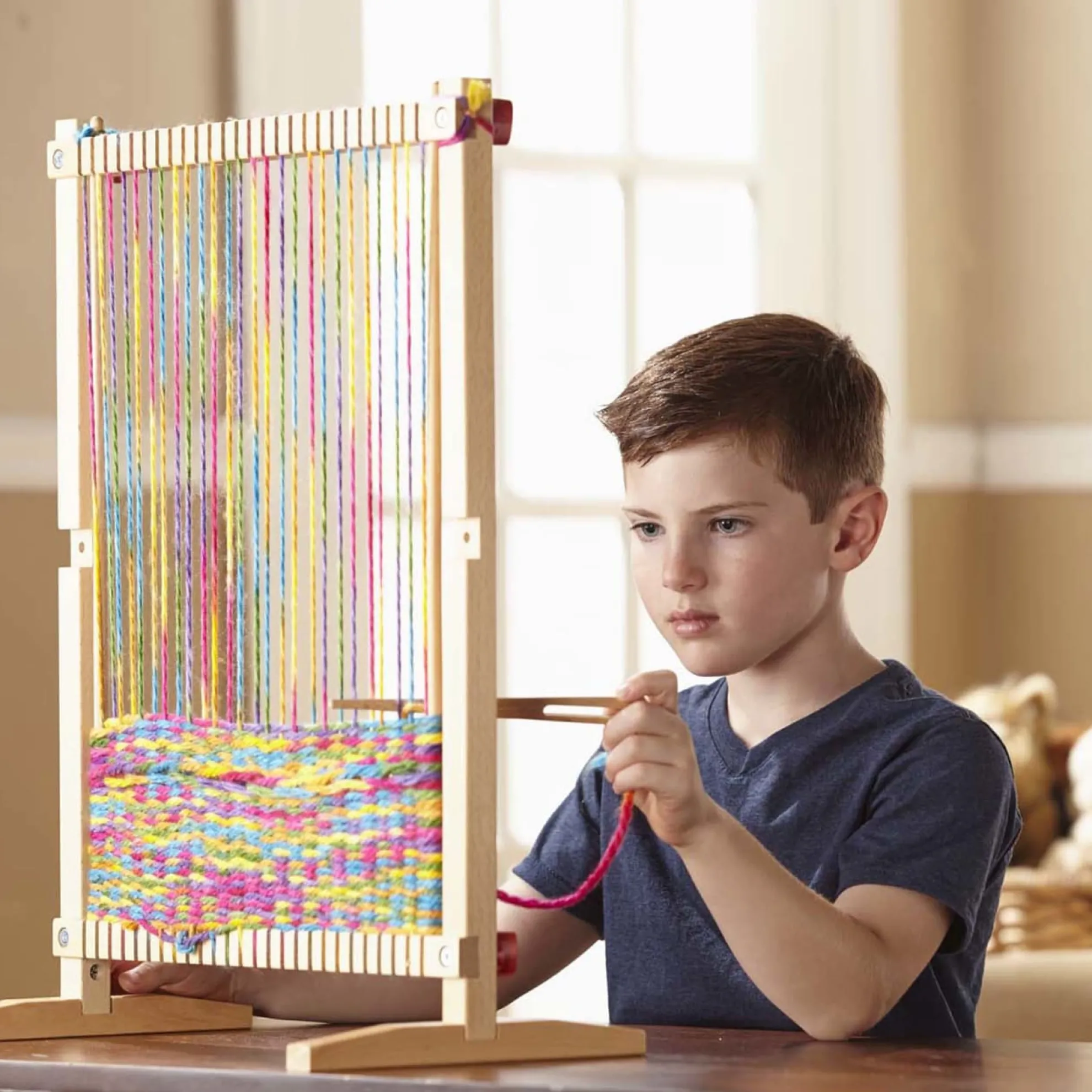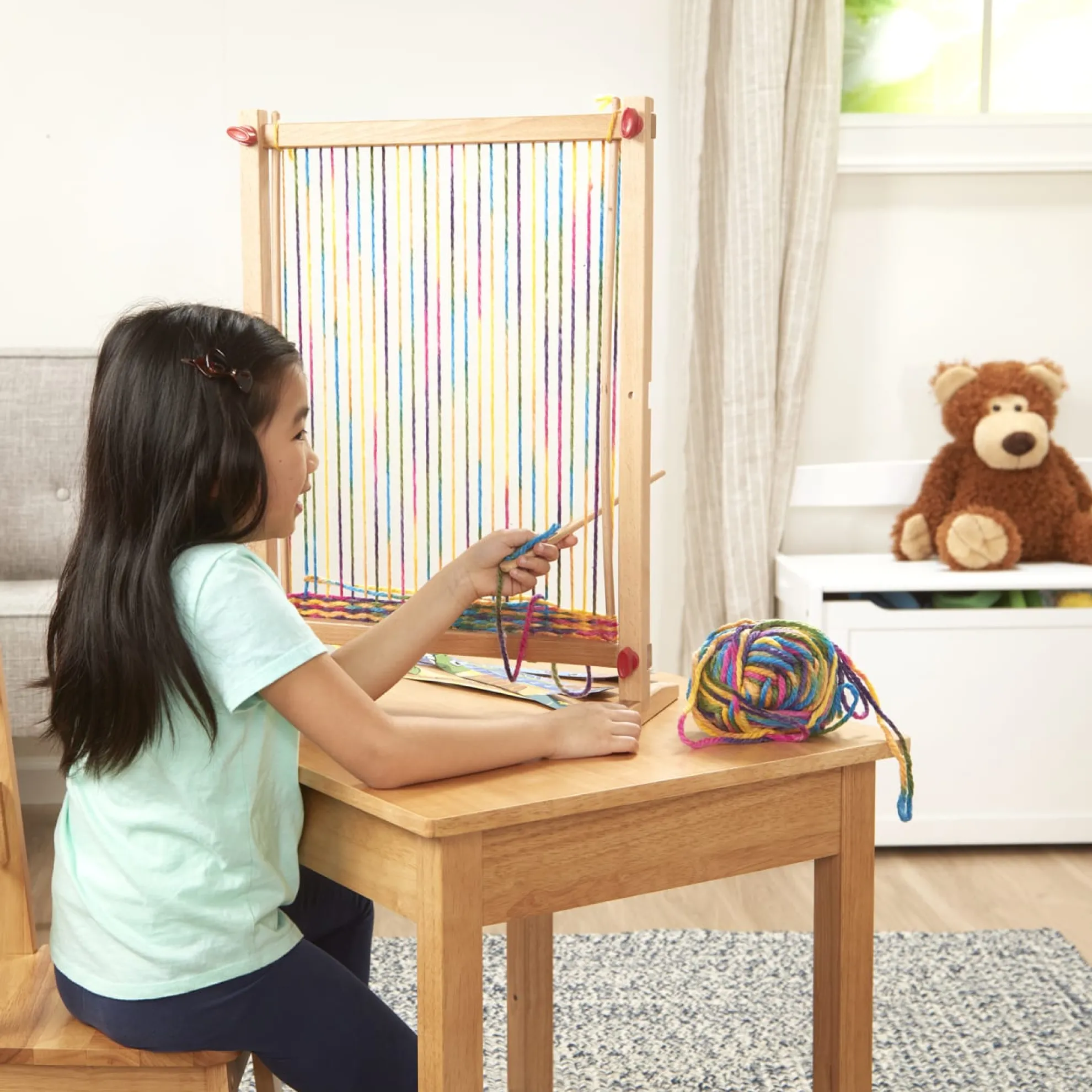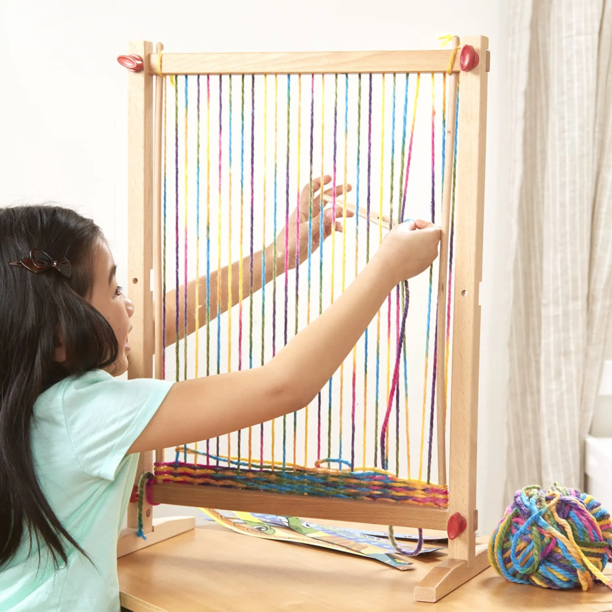 Youngsters will be thrilled to get creating with this Multi-Craft Weaving Loom. With its easy-to-use adjustable frame, oversize wooden needle and generous 91 yards of rainbow yarn, kids can choose to make a scarf, a tasseled coaster, a drawstring pouch, a crafty carry-all–or whatever they design themselves! Great for all skill levels, this loom also includes three picture tapestries to weave.