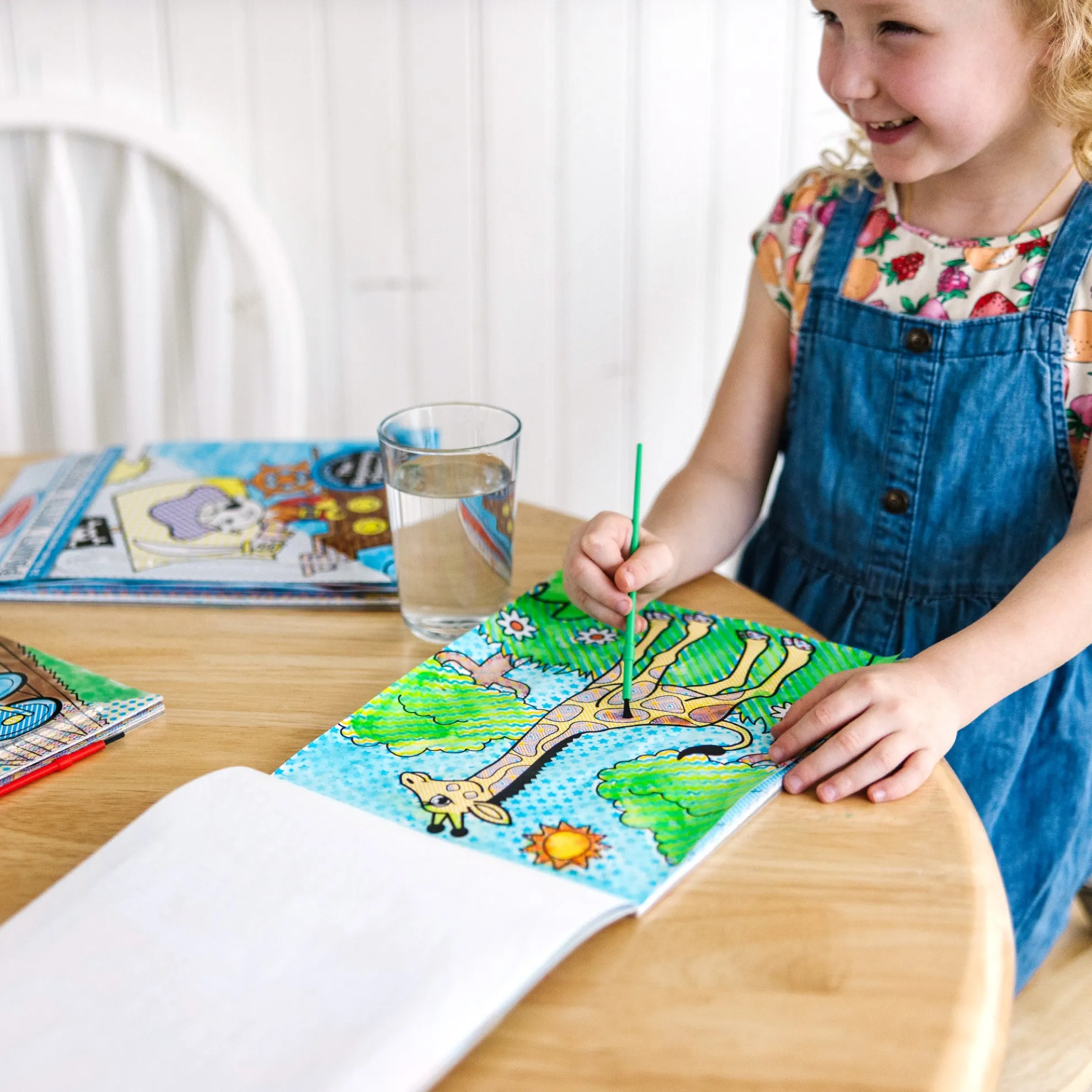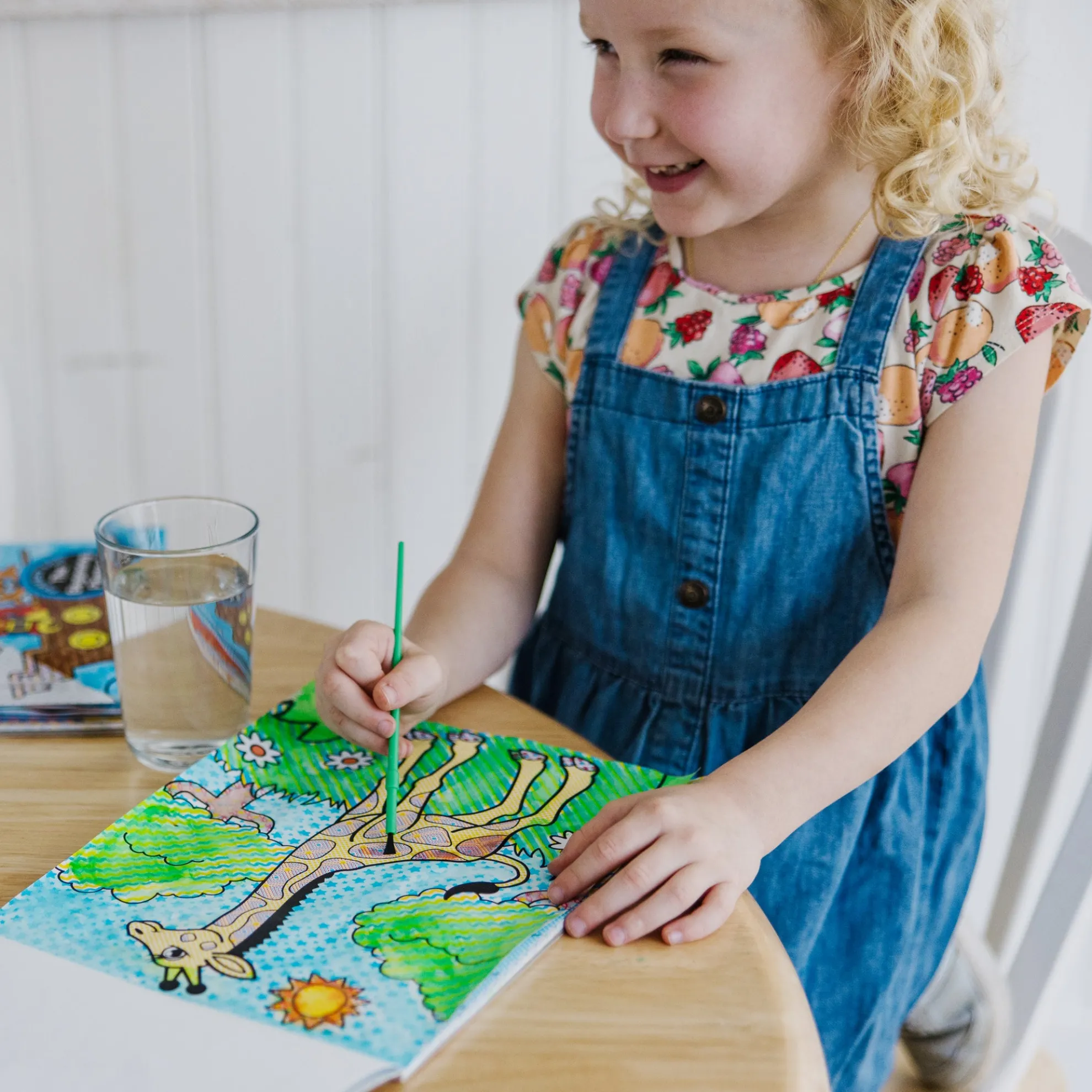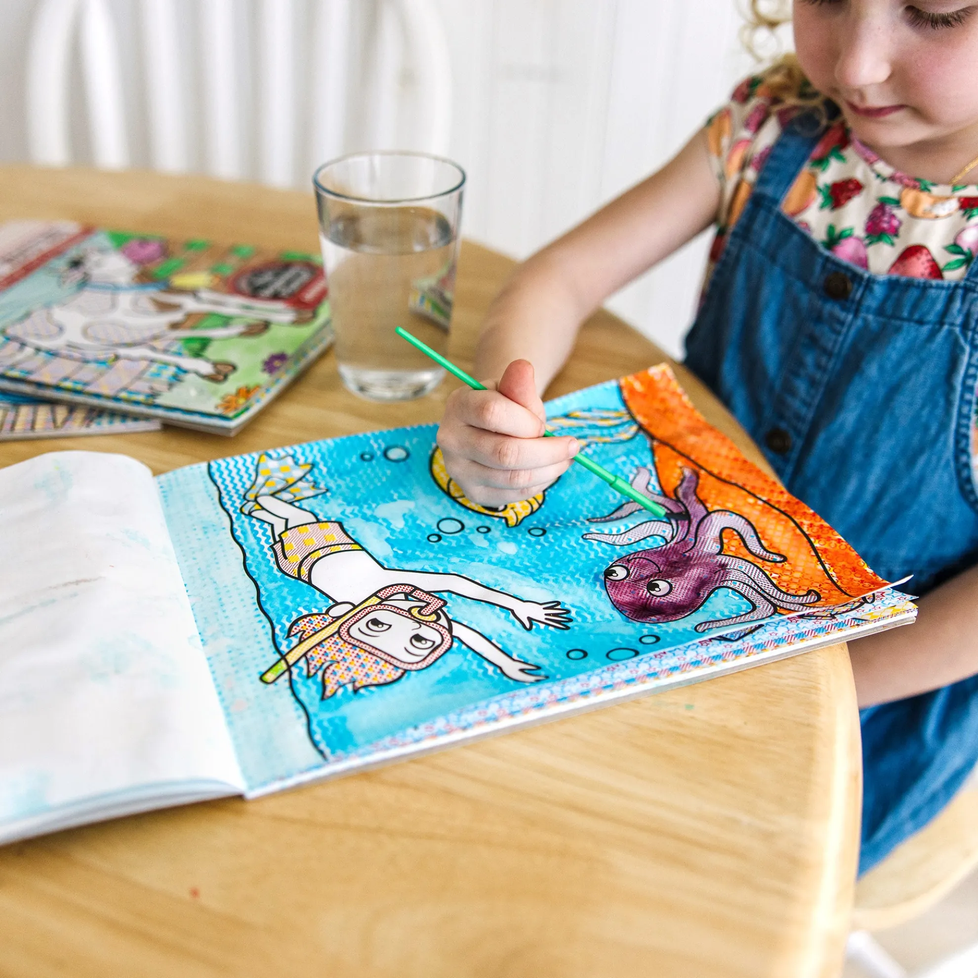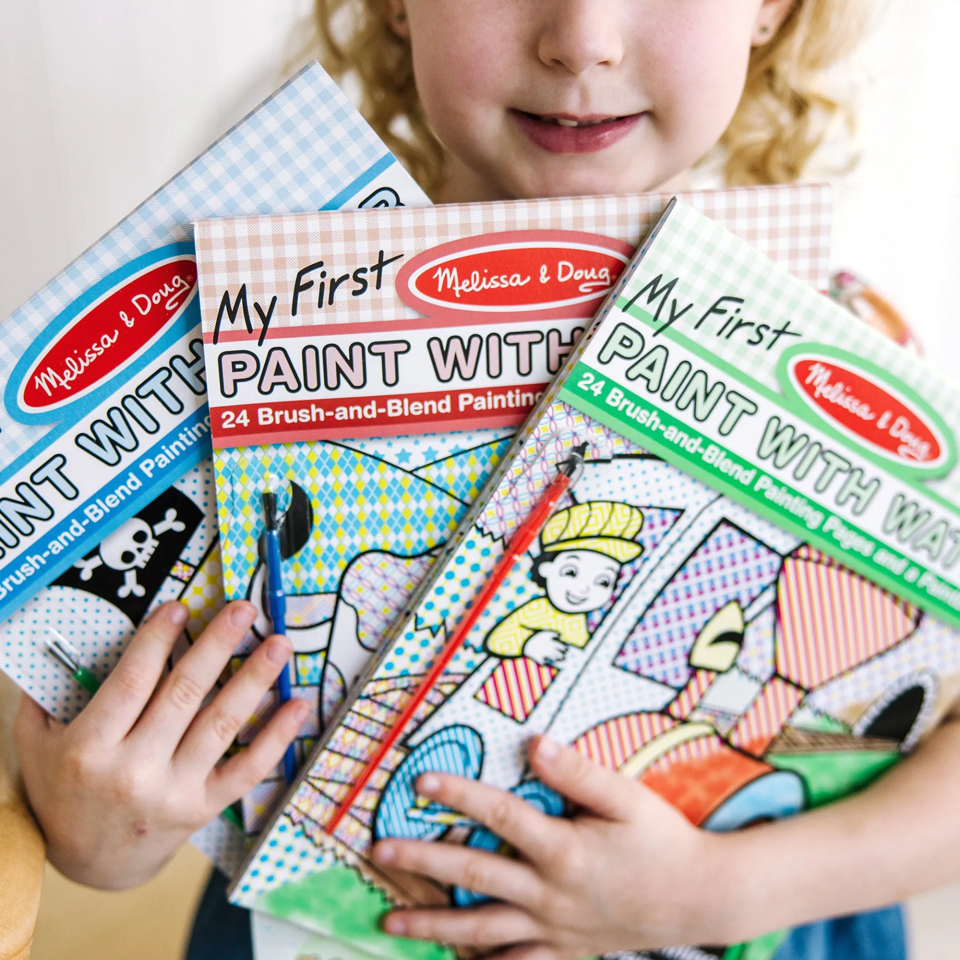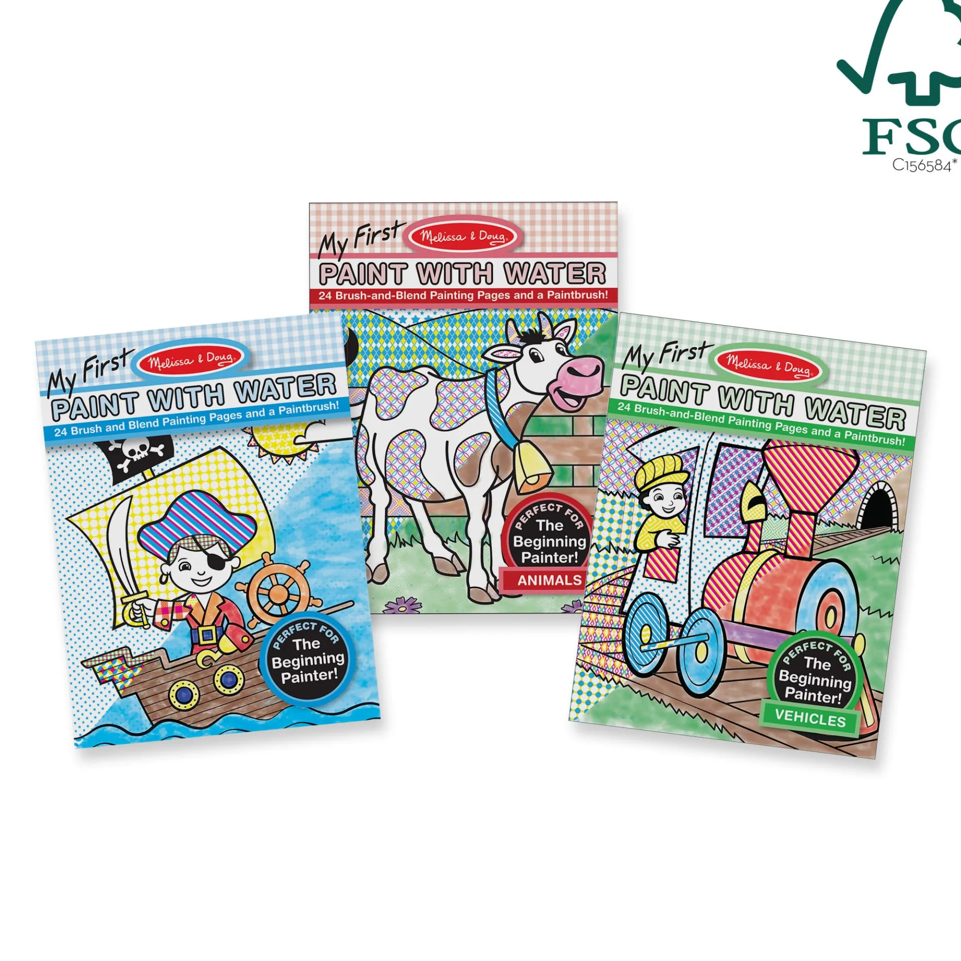These paint-with-water art pads let little ones enjoy “painting”–with no messy paint spills! The 24 brush-and-blend pages in each are filled with outlined scenes (Multi-Theme, Animals, and Vehicles) with pigment patterns printed right inside. Each set includes a paintbrush, so all you add is water: Just brush it on to make the colors come to life and the pictures fill with vibrant color! These painting kits for kids offer an ideal first art activity and make great kids’ party favors, too! This product is certified by the Forest Stewardship Council. FSC certification ensures that products come from responsibly managed forests that provide environmental, social, and economic benefits, and that forests are protected for future generations. Please note that FSC certification applies to new inventory only (FSC C156584)