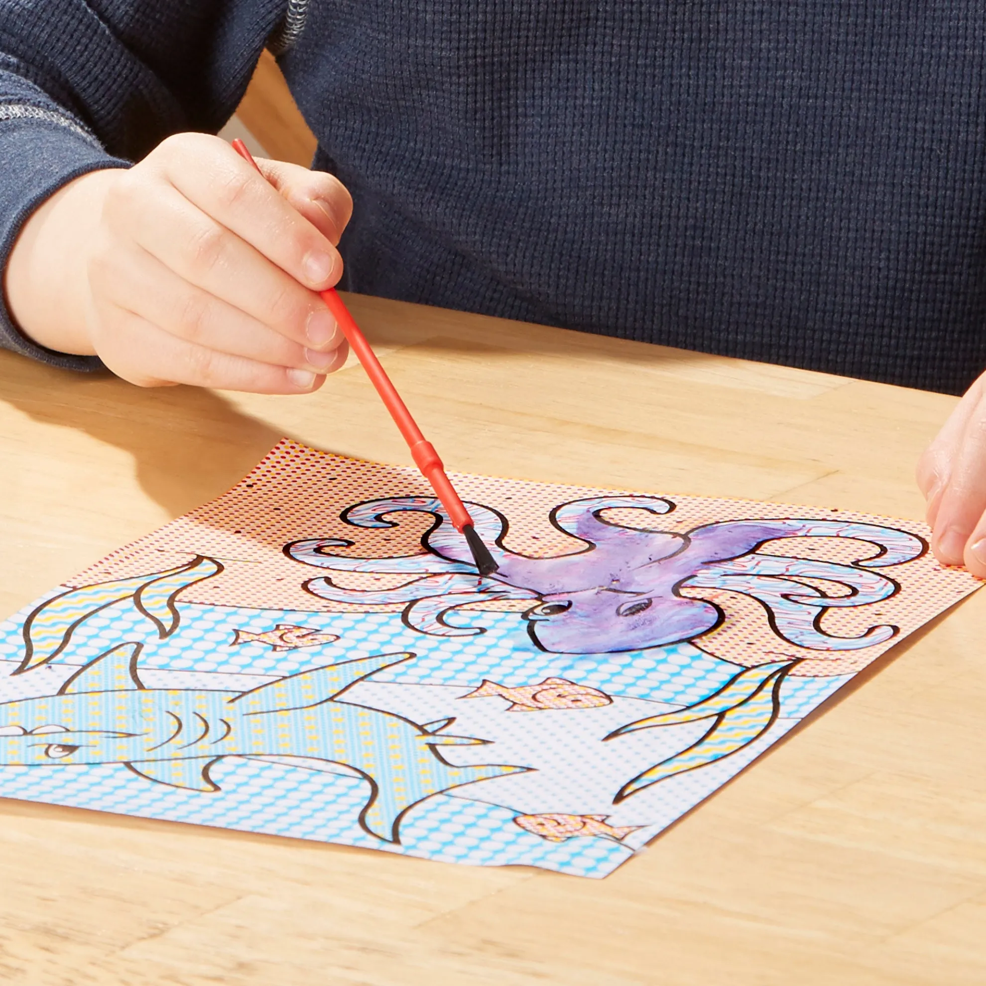 This special all-inclusive art pad is perfect for the beginning painter! With a cup of water and the included paintbrush, kids can get instant rewards–with no messy paint spills! Simply remove a page from the pad, dip the paintbrush into a container of water, and use the damp brush to blend a patterned area. As kids brush, the colors in the pattern will blend together to create a single paint color! Includes 24 cool scenes showcasing kid-favorite animals. This product is certified by the Forest Stewardship Council. FSC certification ensures that products come from responsibly managed forests that provide environmental, social, and economic benefits, and that forests are protected for future generations. Please note that FSC certification applies to new inventory only (FSC C156584).