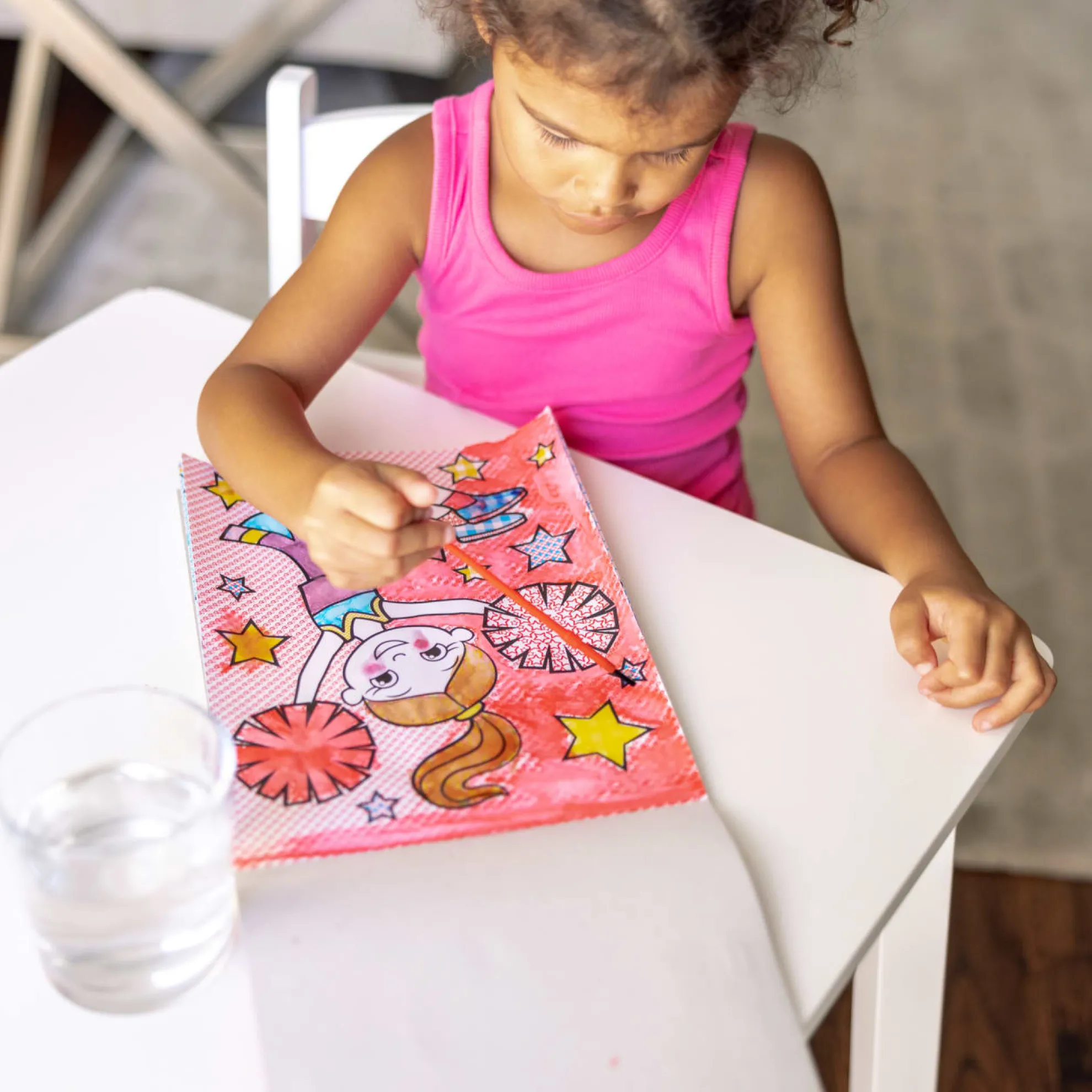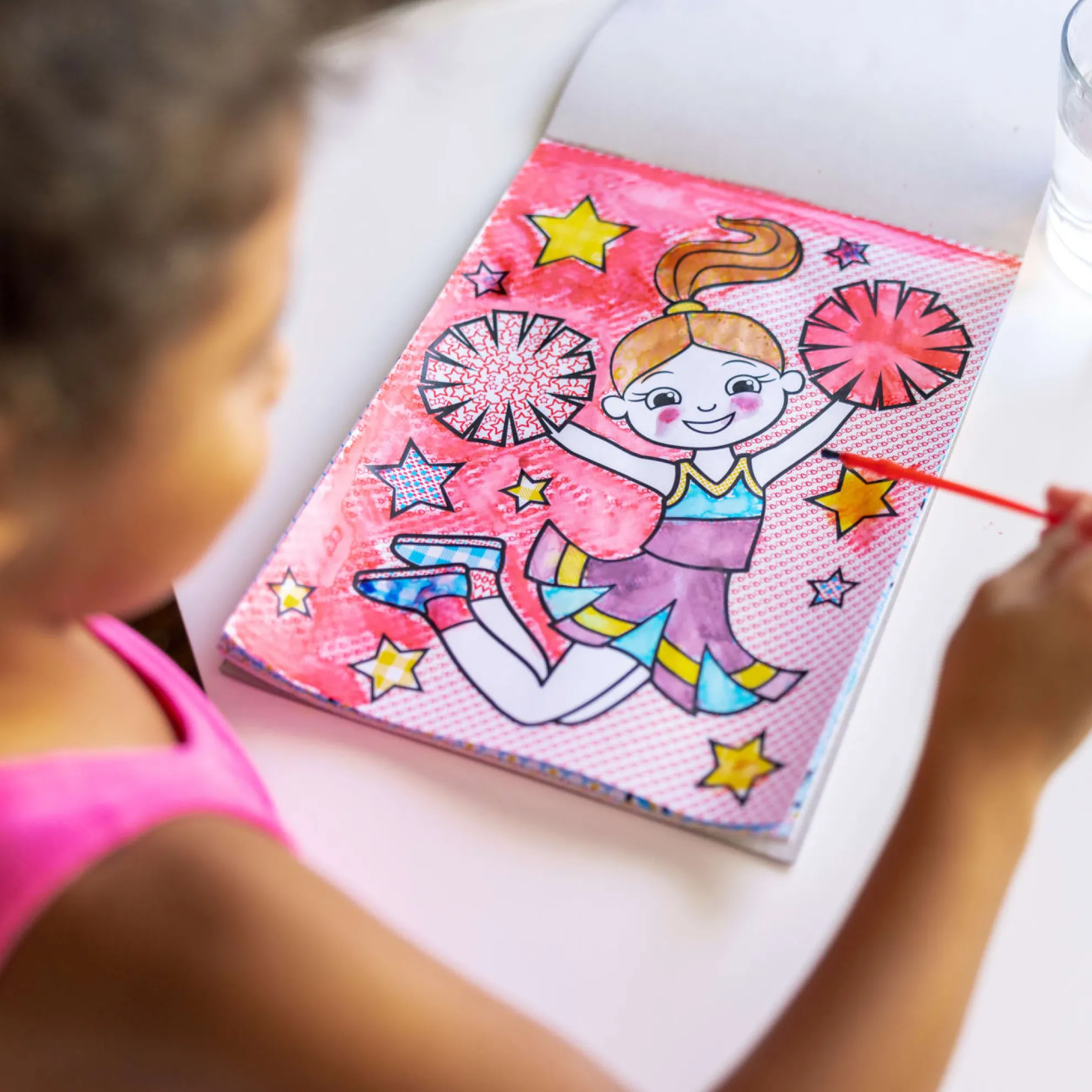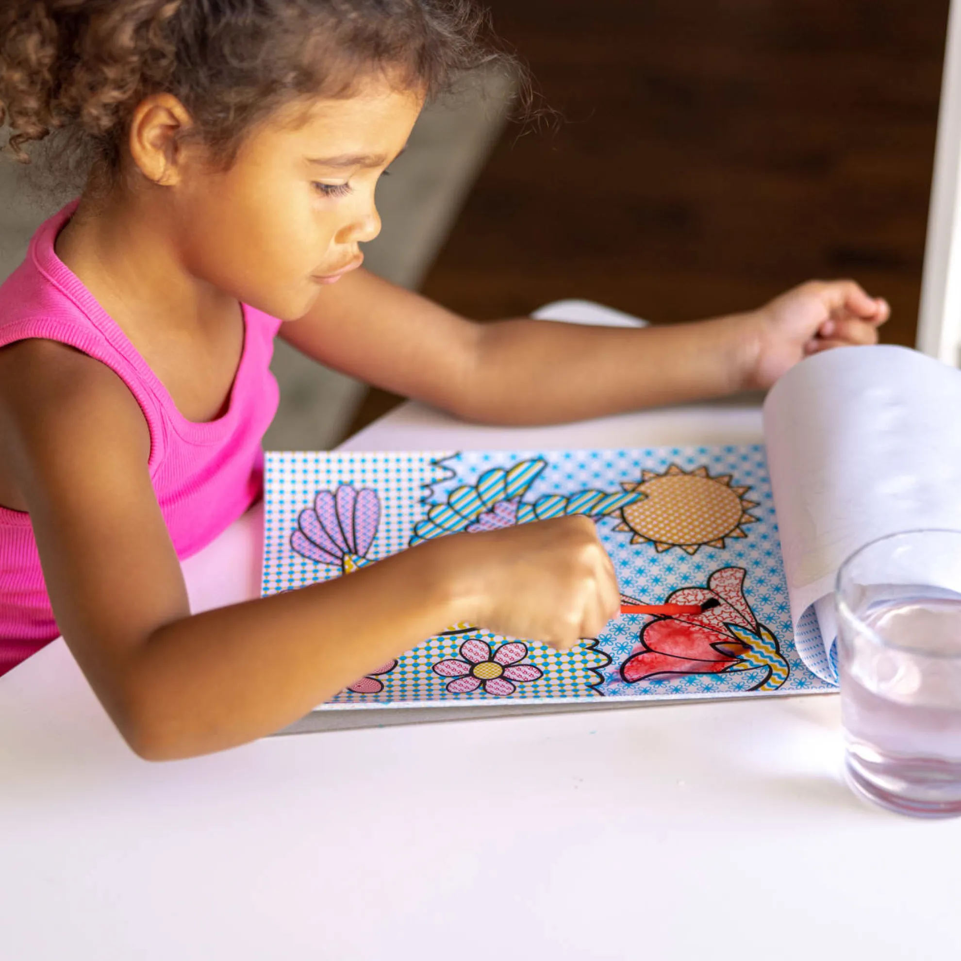 This kids’ art pad lets little ones enjoy “painting”, with no messy paint spills! 24 brush-and-blend pages are filled with pretty outlined scenes, with pigment patterns printed right inside. A paintbrush is included, so all you add is water: Just brush it on to make the colors come to life and the pictures fill with vibrant color! This painting set for kids is an ideal first art activity!