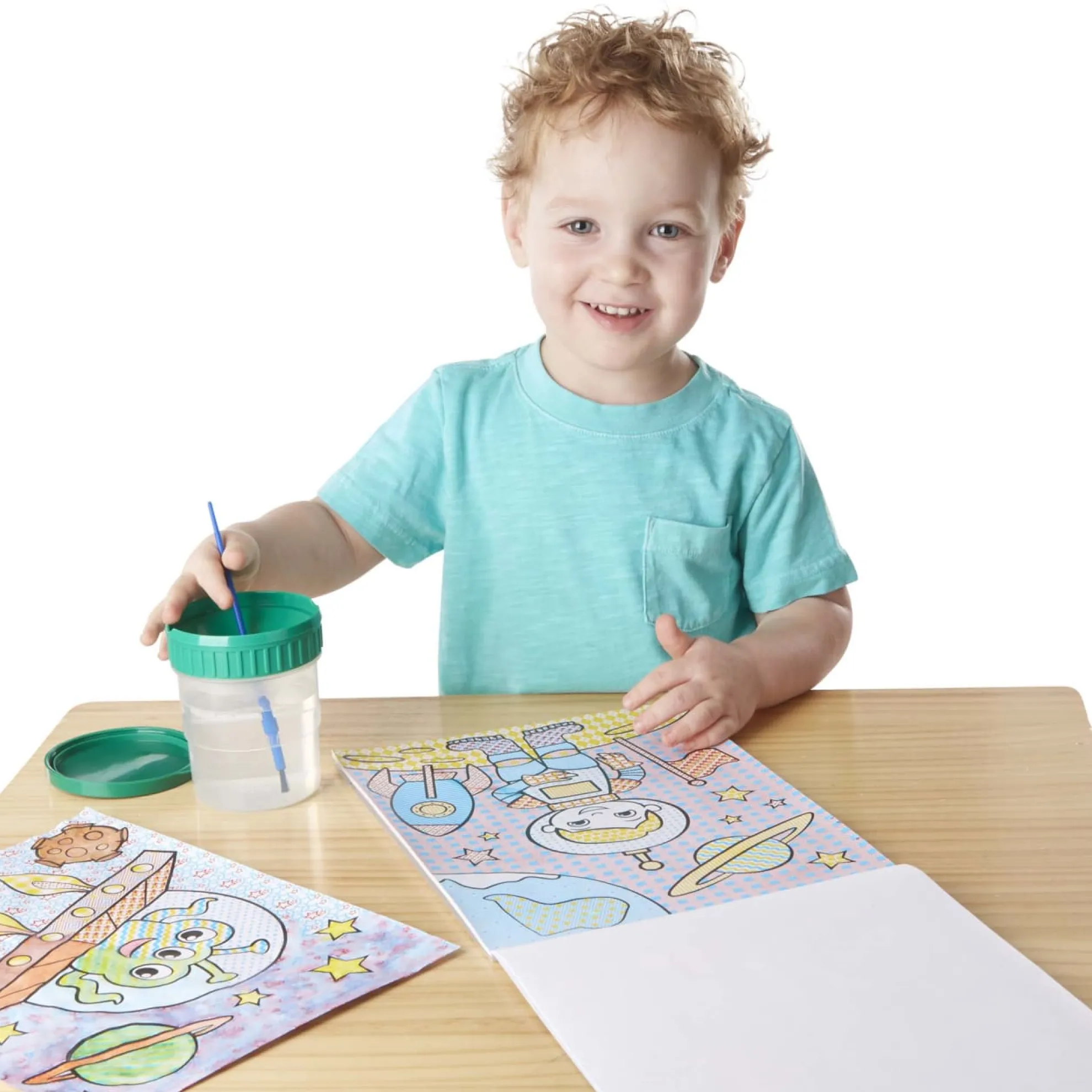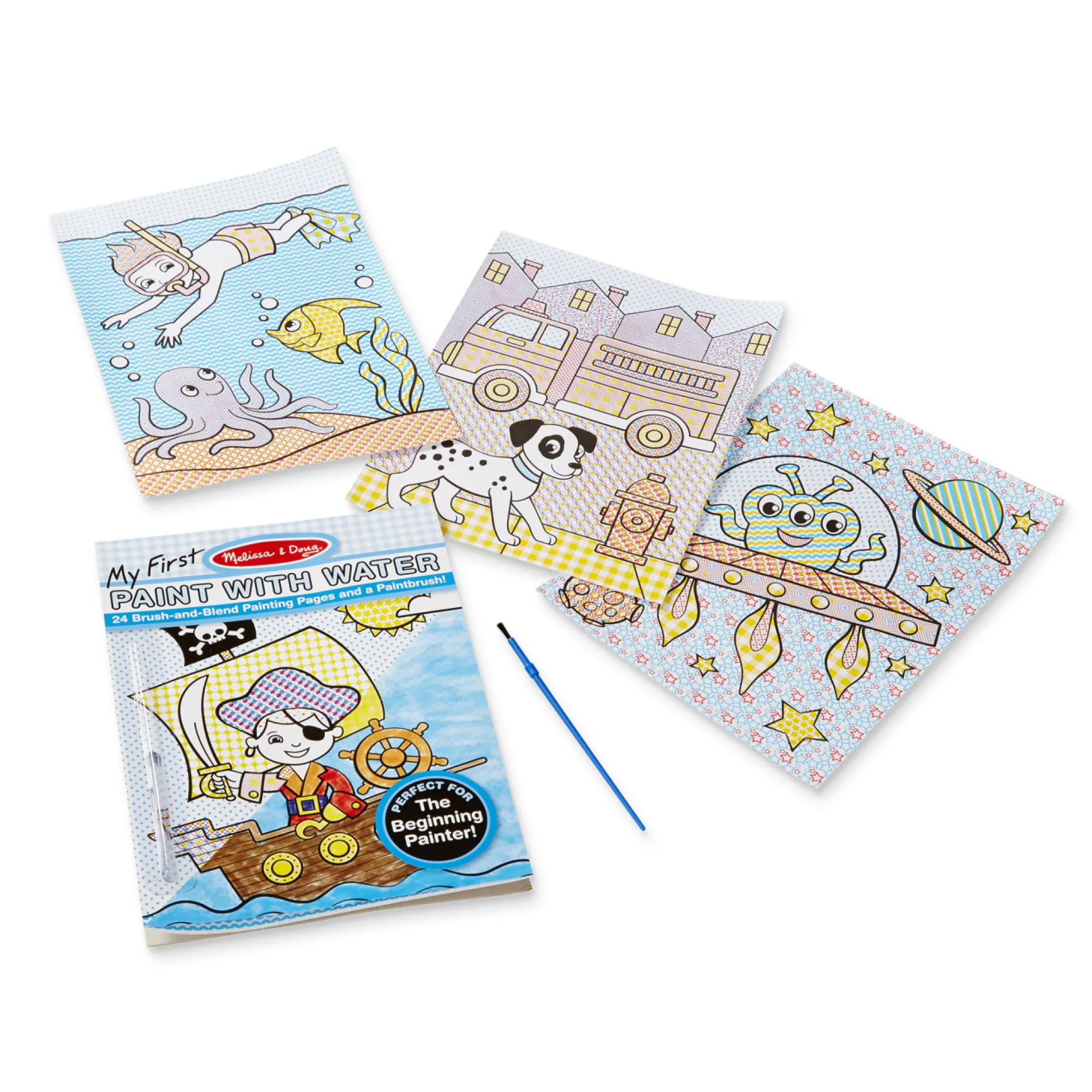 This paint-with-water kids’ art pad lets little ones enjoy “painting”–with no messy paint spills! 24 brush-and-blend pages are filled with pretty outlined scenes, with pigment patterns printed right inside. The kids’ painting set includes a paintbrush, so all you add is water: Just brush it on to make the colors come to life and the pictures fill with vibrant color! This painting kit for kids is an ideal first art activity and a great kids’ party favor, too!