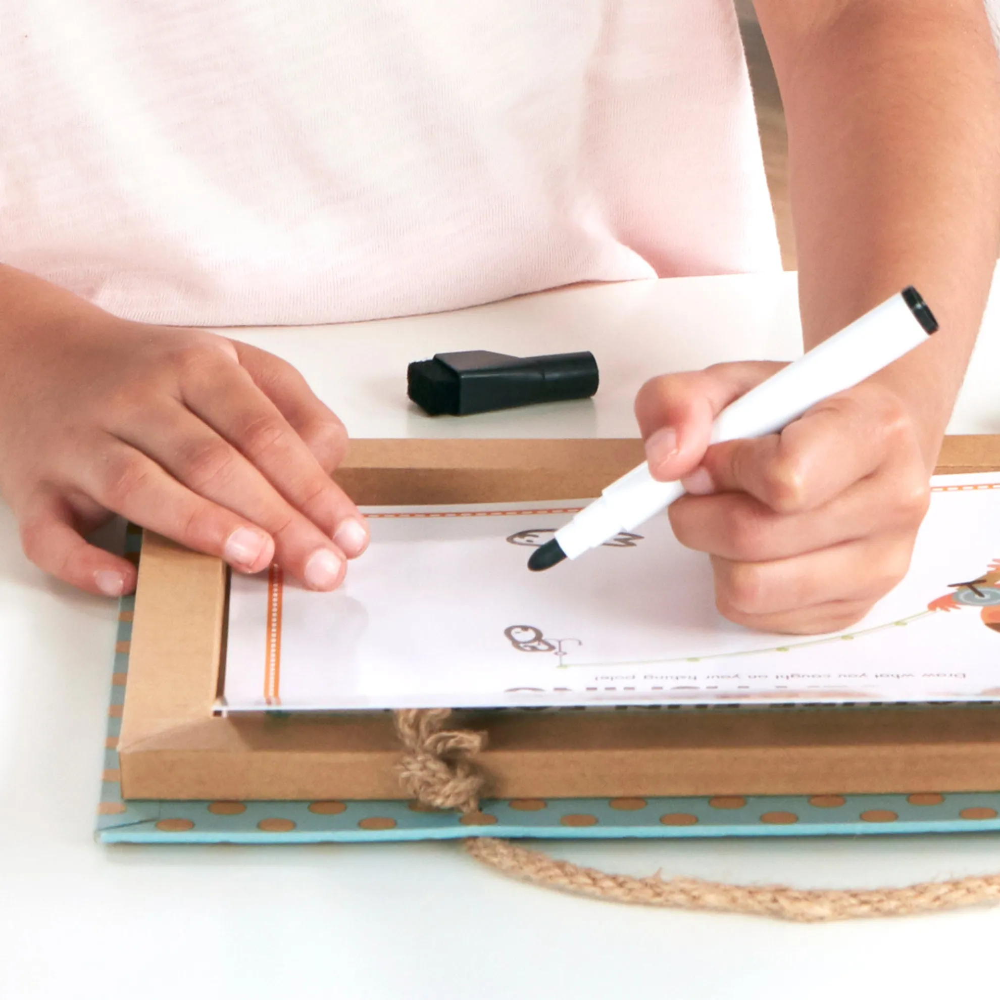 Make waves! The Natural Play ocean-themed Play, Draw, Create activity kit offers hours of imaginative, creative play anytime, anywhere! This reusable drawing and magnet activity kit includes a take-along case with rope handles to conveniently store and carry 42 magnets, 5 dry-erase markers with an eraser, a built-in magnetic dry erase board, and a 13-page spiral-bound dry-erase activity book. Flip it open for a ready-made play surface, and snap it closed to take creativity on the go! Natural Play is a hands-on way for kids to discover the world around them; the packaging uses recycled materials and soy-based inks. This product is certified by the Forest Stewardship Council. FSC certification ensures that products come from responsibly managed forests that provide environmental, social, and economic benefits, and that forests are protected for future generations. Please note that FSC certification applies to new inventory only (FSC C156584)