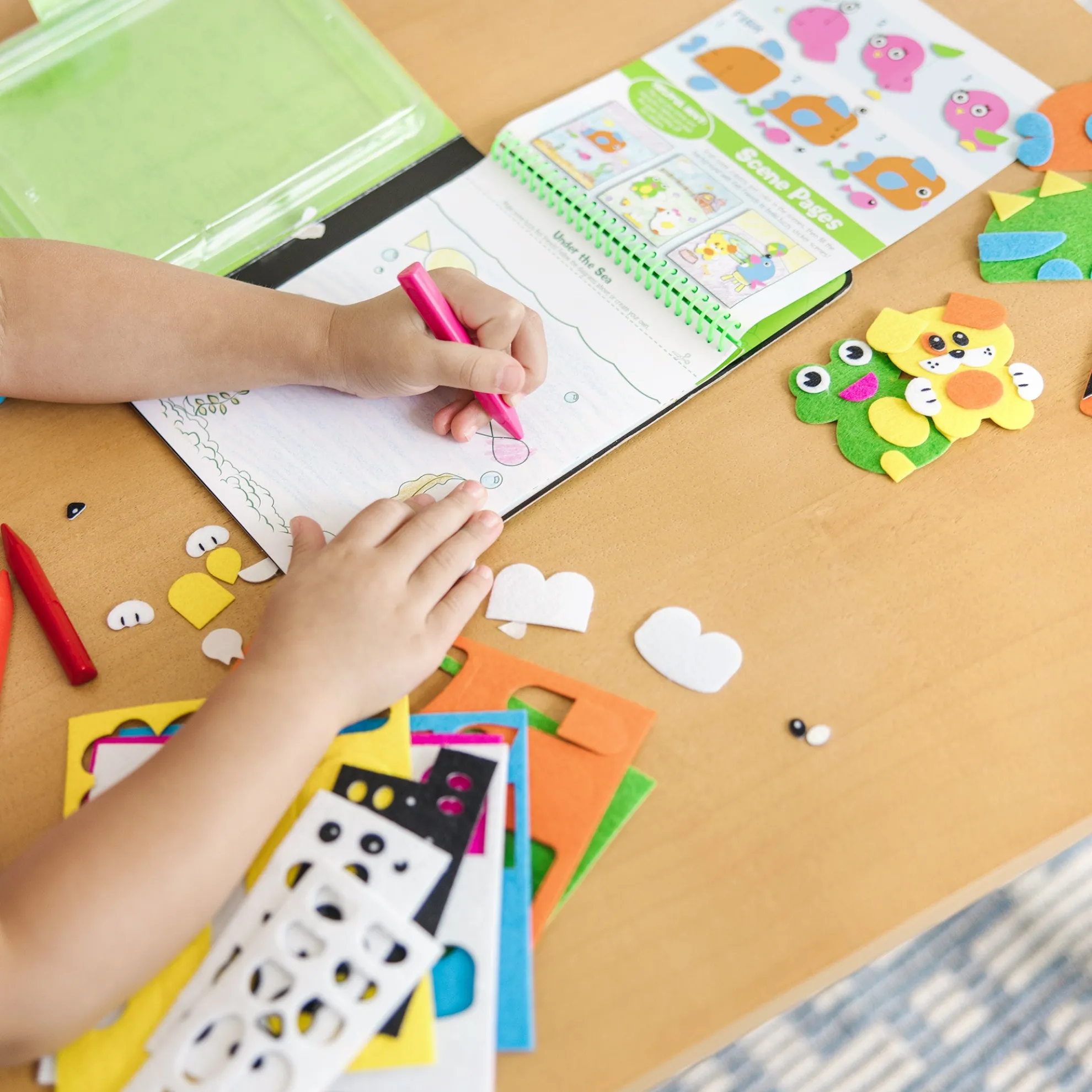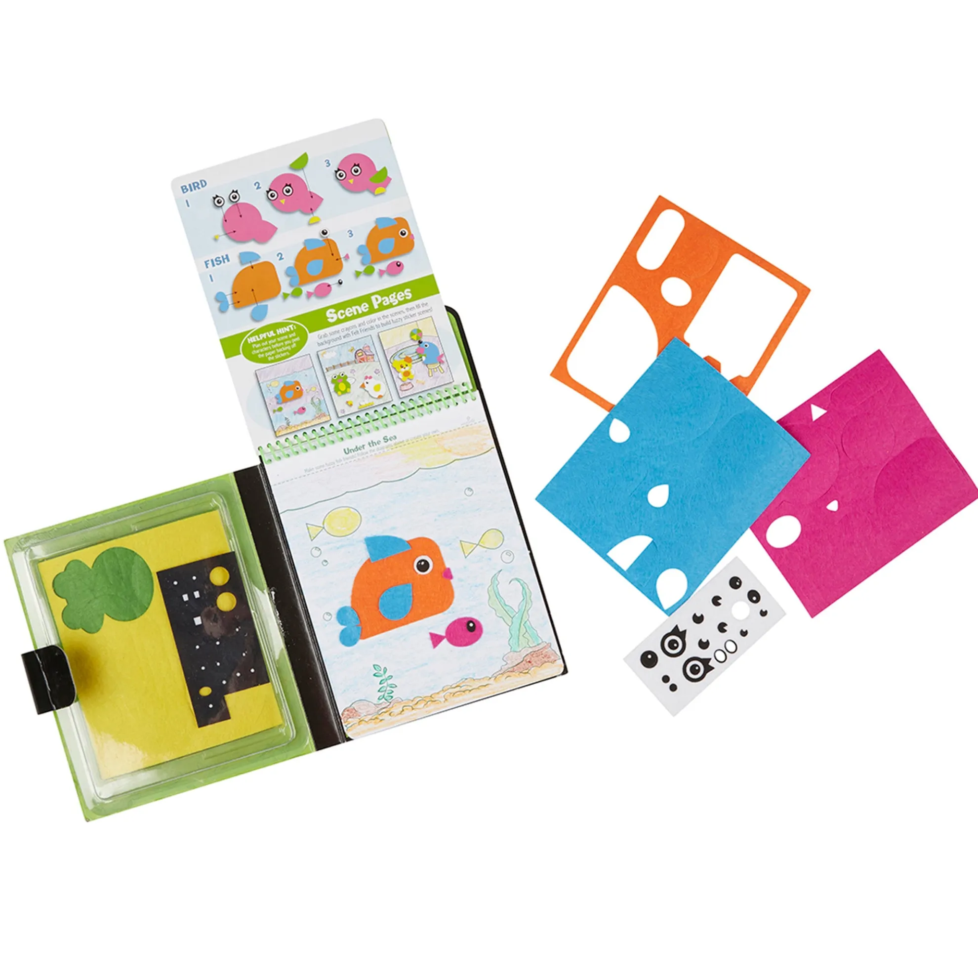 - Includes 142 felt sticker shapes, 46 printed felt feature stickers, 4 color-in scenes (Under the Sea, On the Farm, Pet Playtime, Outdoor Pals), and idea book