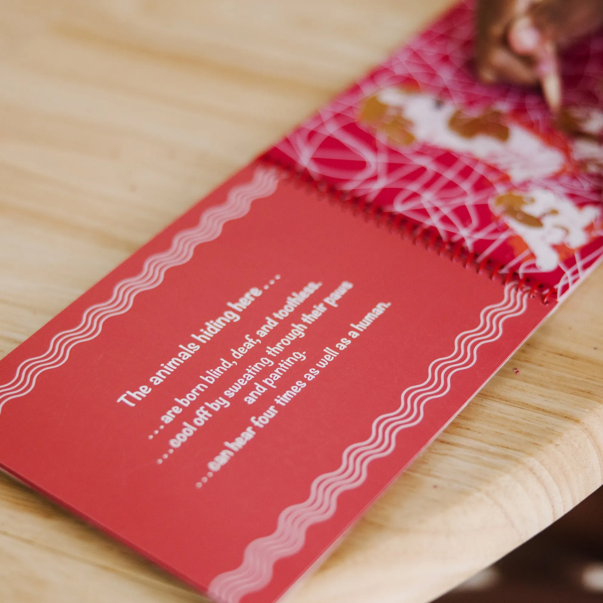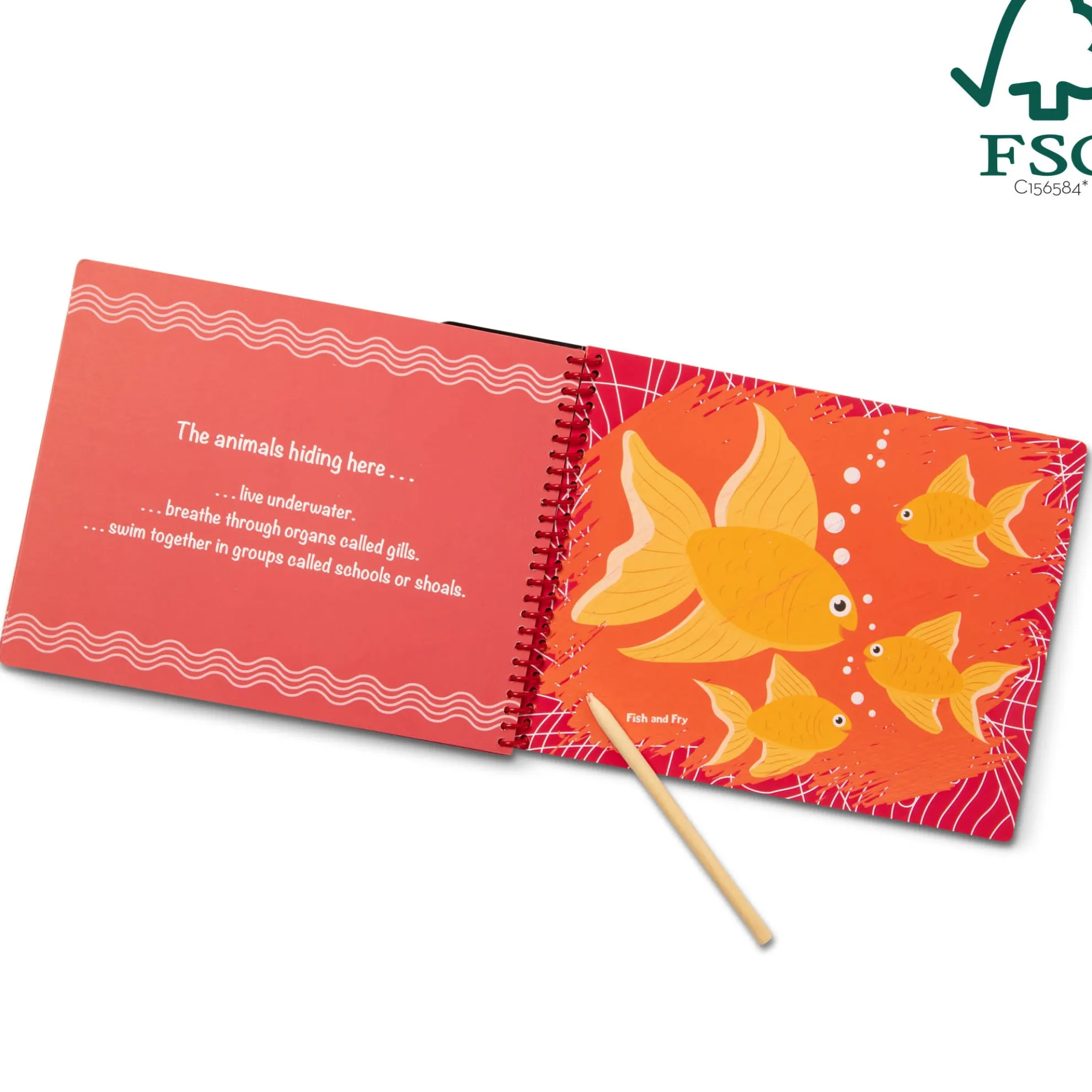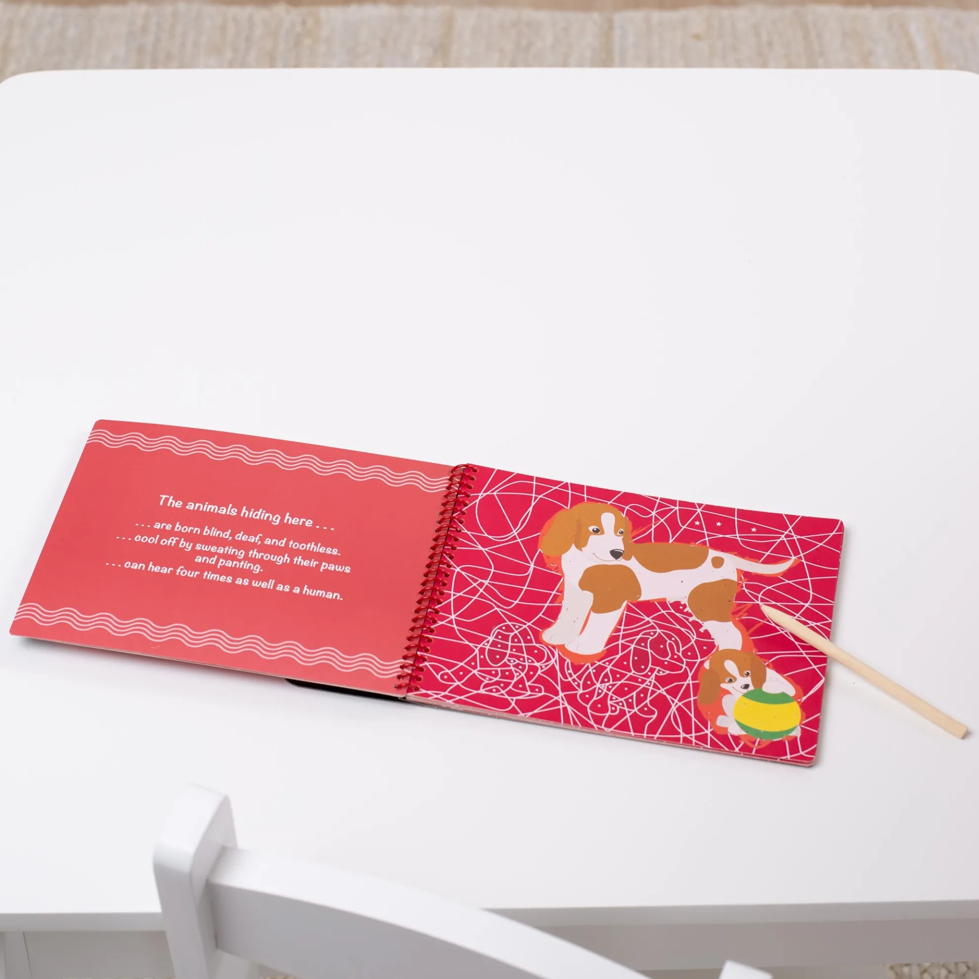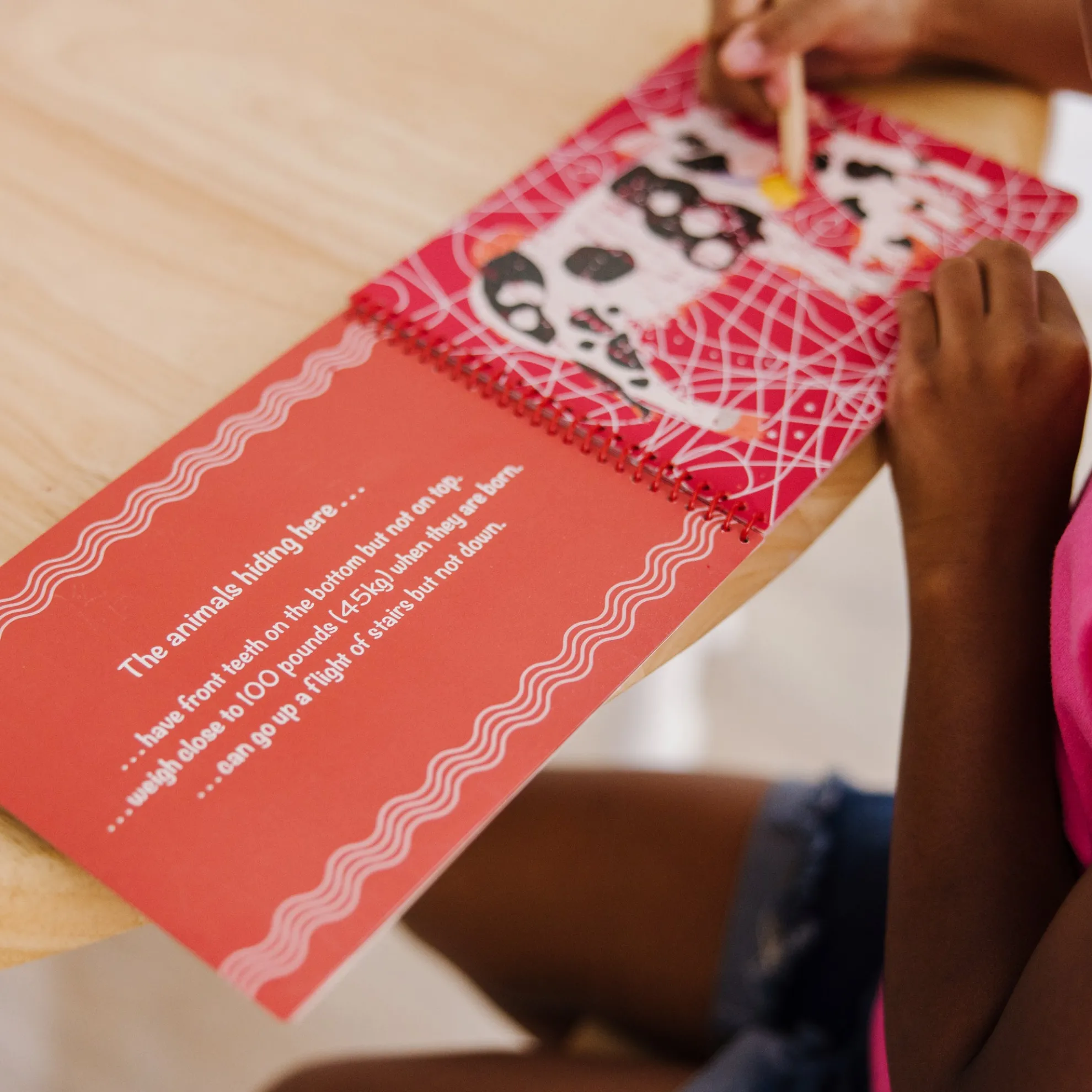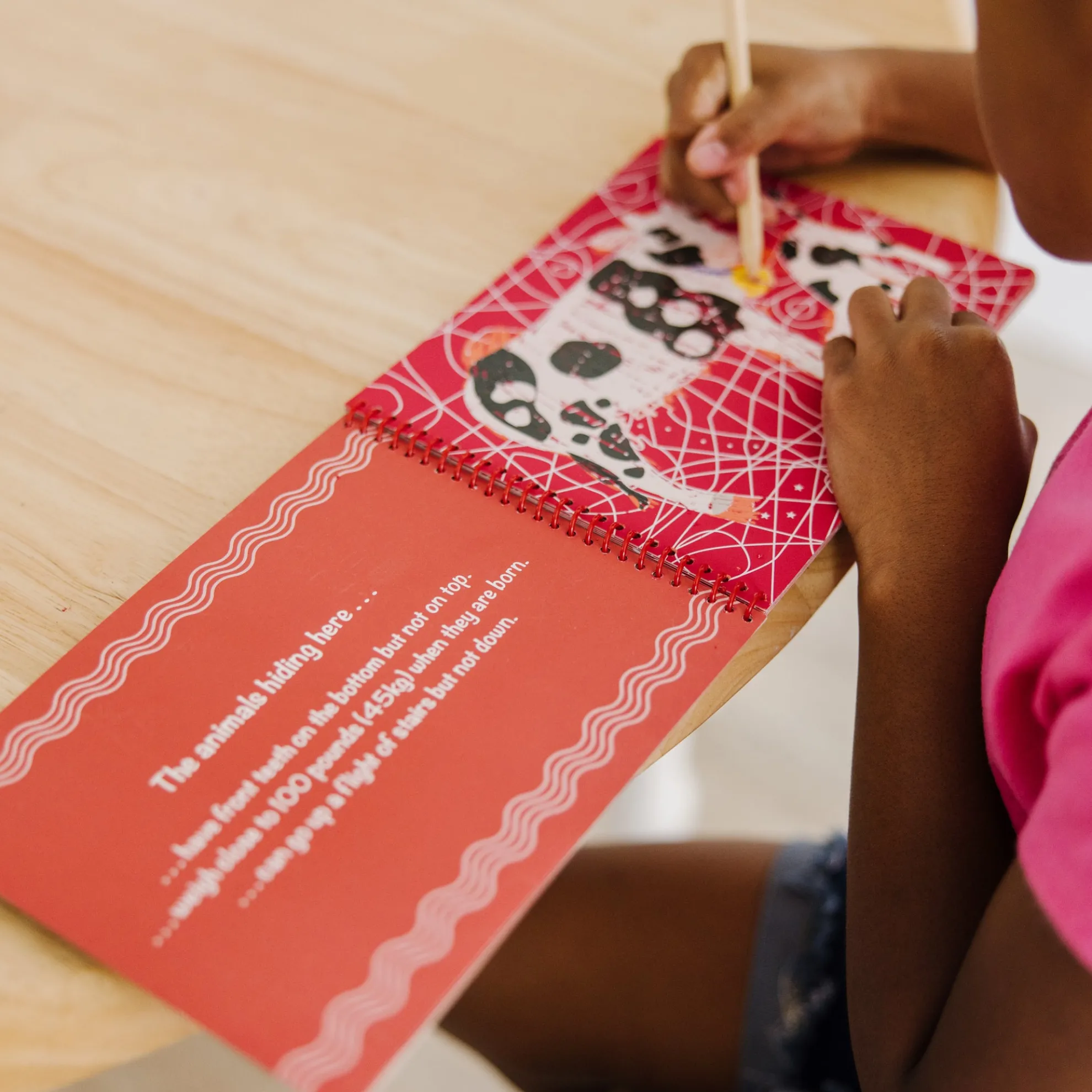 Can you guess which animals are hidden? Read the clues–like which animals have front teeth on the bottom but not on top–then look for the sections with dots and scratch away the surface coating with the included wooden stylus to see if you were right! A charming illustration of an animal family is concealed on each of the 12 Scratch Art pages. The spiral-bound pad features built-in stylus storage, making it a self-contained craft project that’s perfect for families on the go! This product is certified by the Forest Stewardship Council. FSC certification ensures that products come from responsibly managed forests that provide environmental, social, and economic benefits, and that forests are protected for future generations. Please note that FSC certification applies to new inventory only (FSC C156584).