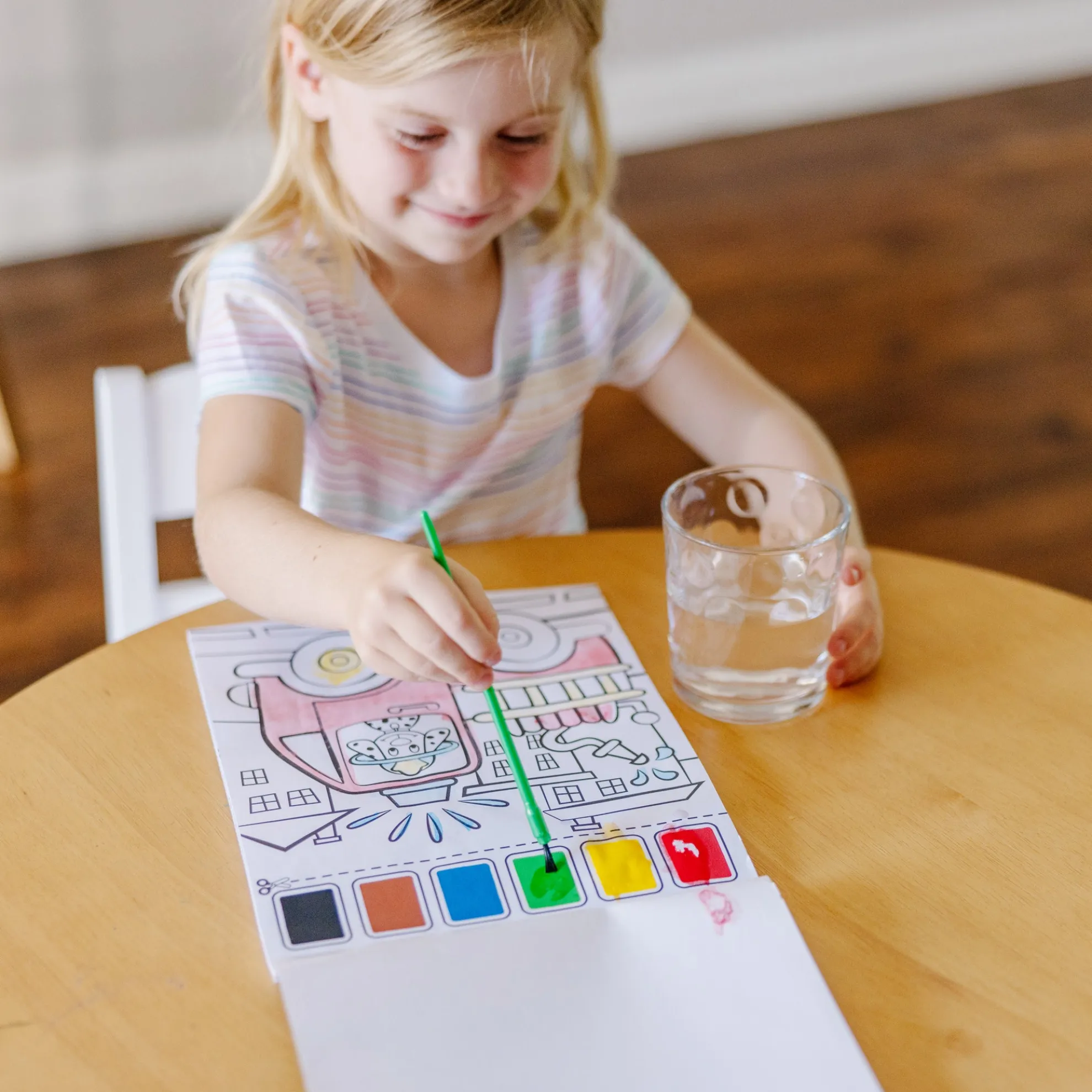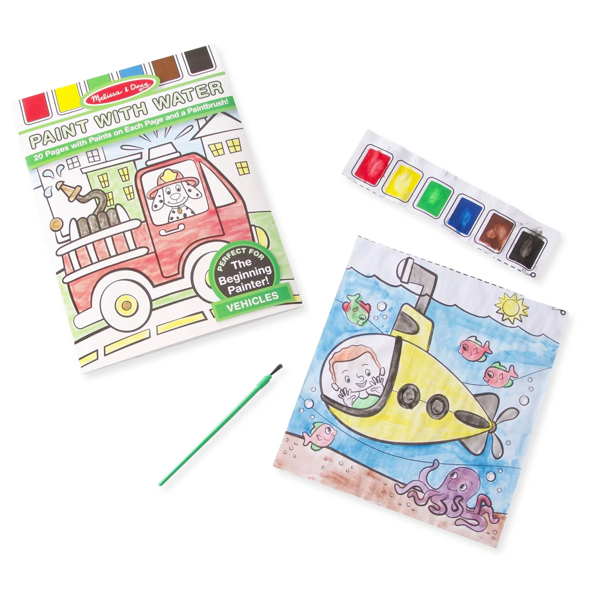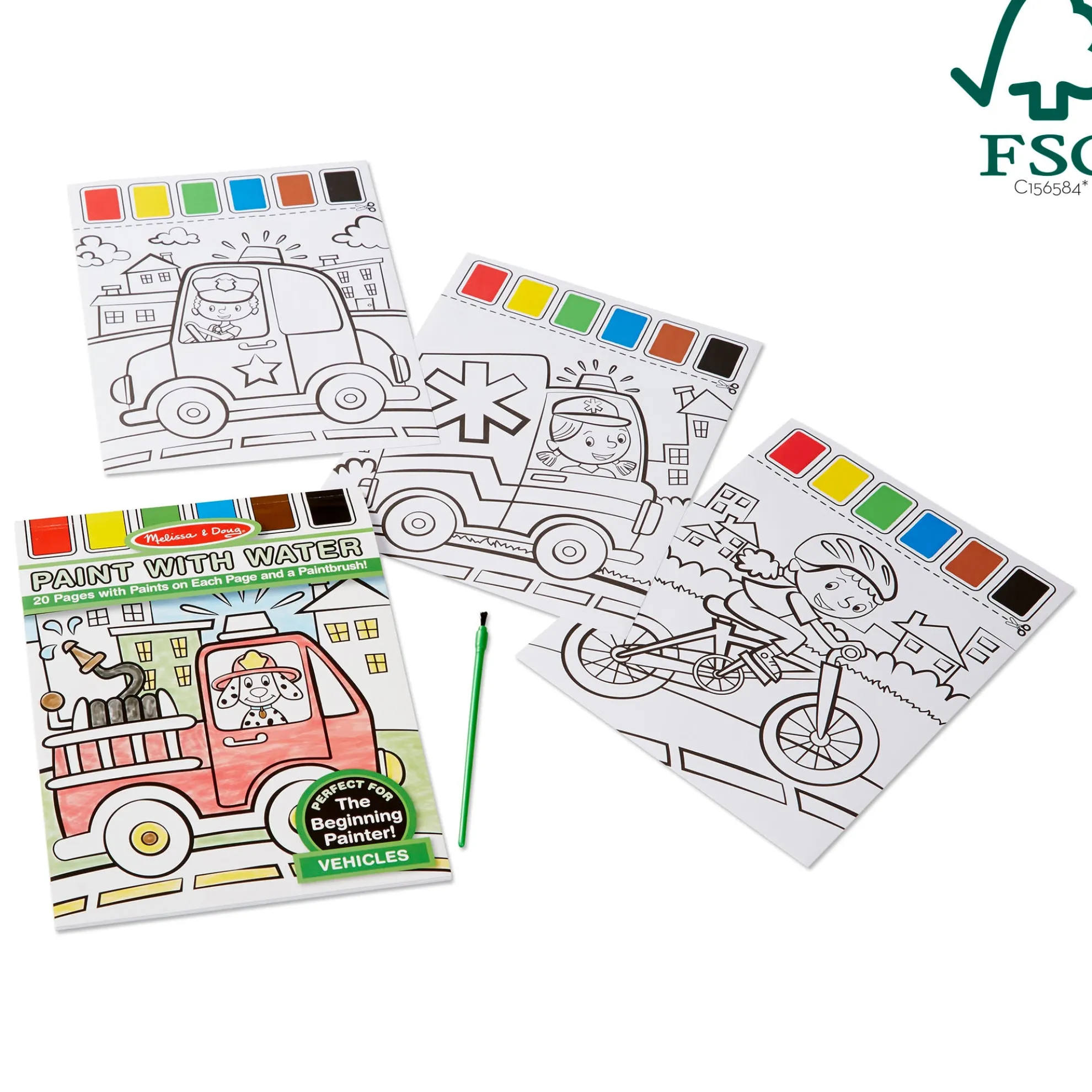 A special paint palette is embedded right in the pages of this all-inclusive paint-with-water art activity. With a cup of water and the included paintbrush, beginning painters can get instant rewards – with no messy paint spills! Twenty cool scenes of vehicles and things that go are fun for kids to color and easy to display. This product is certified by the Forest Stewardship Council. FSC certification ensures that products come from responsibly managed forests that provide environmental, social, and economic benefits, and that forests are protected for future generations. Please note that FSC certification applies to new inventory only (FSC C156584).