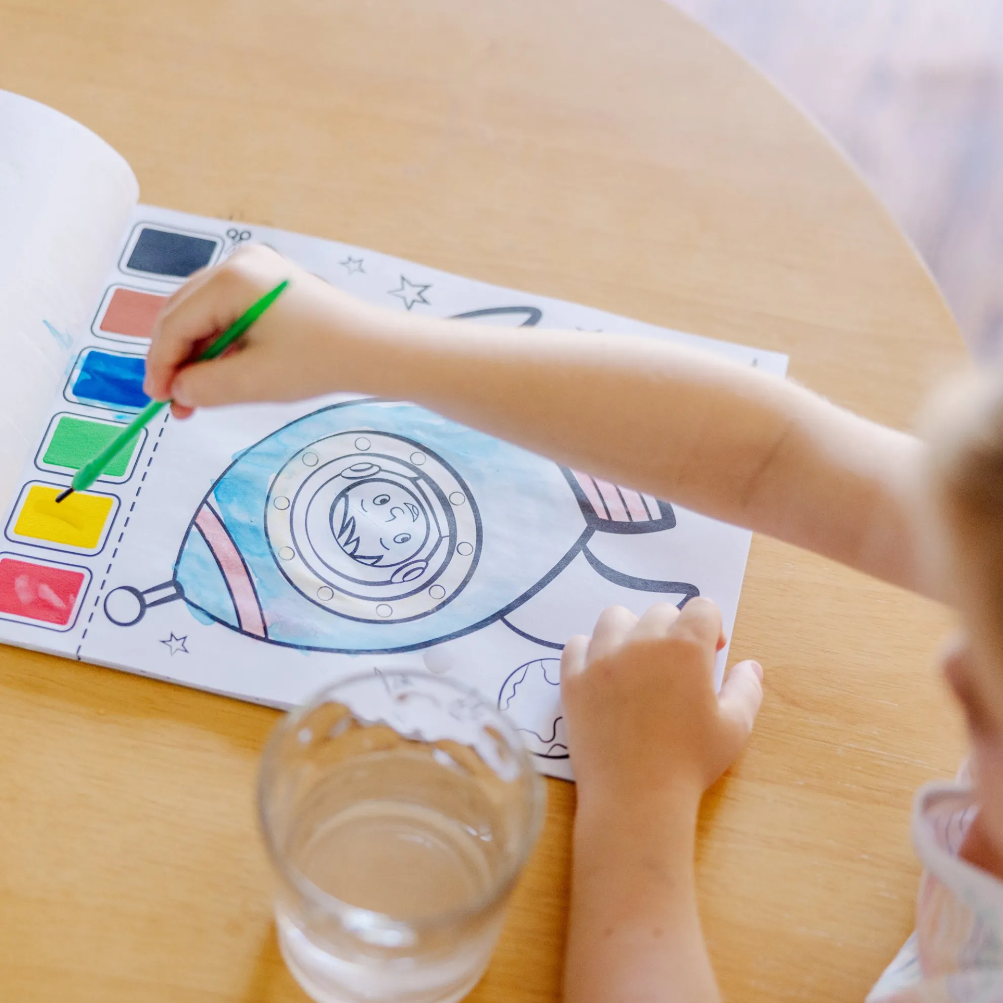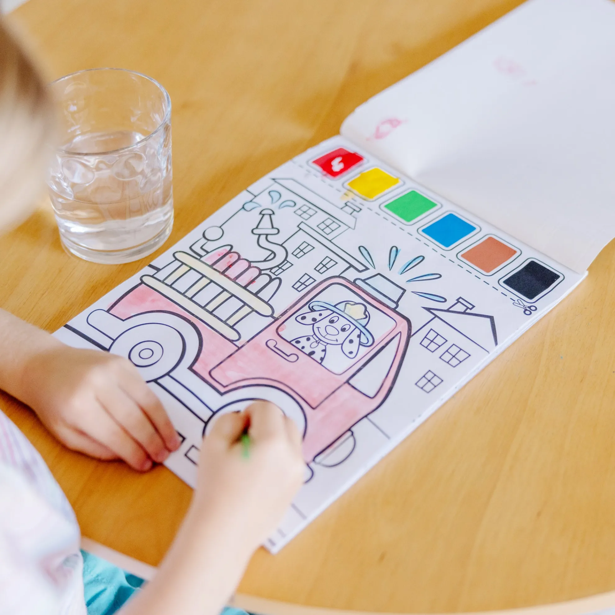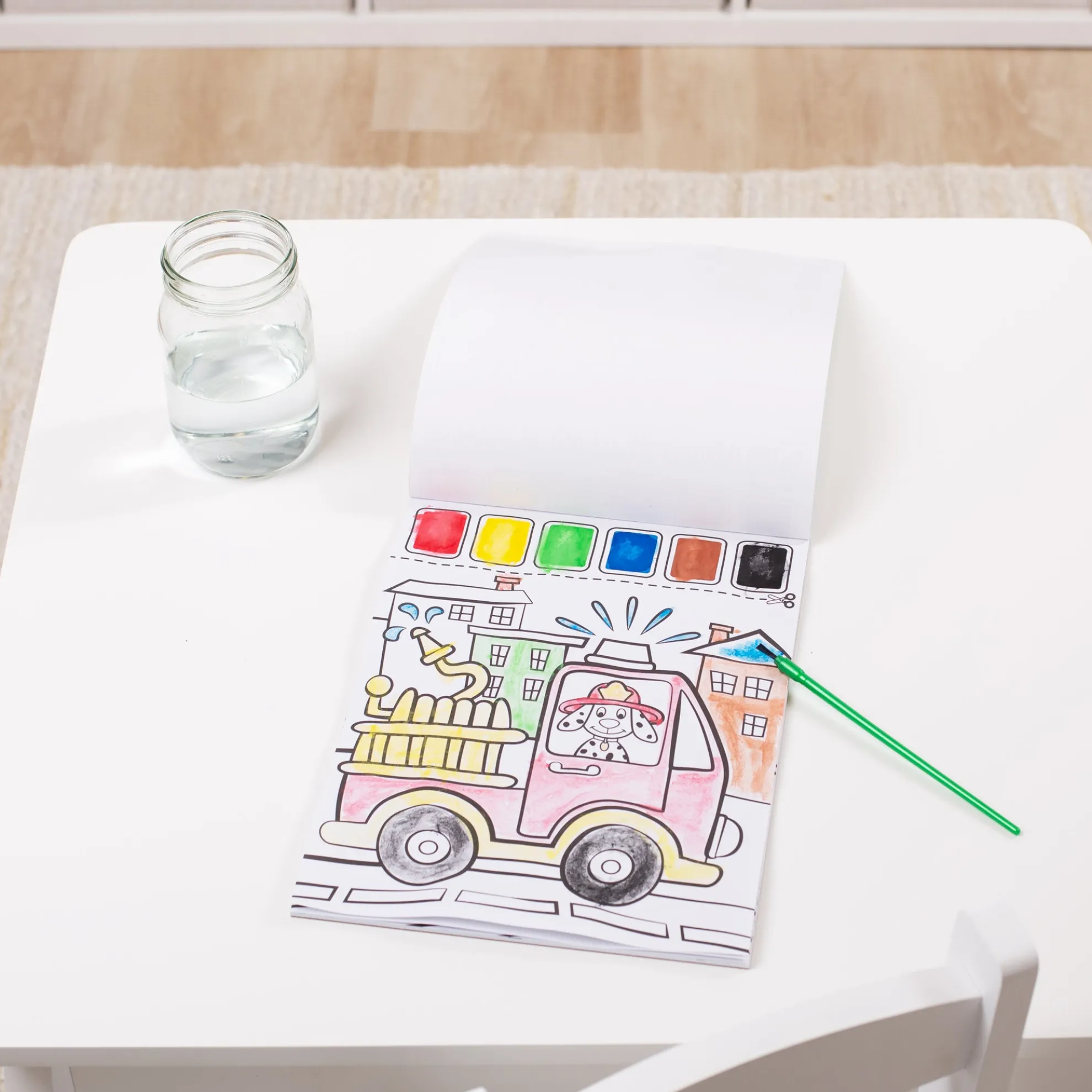 - Simply wet the paintbrush, moisten the paint palette and fill in the pictures!