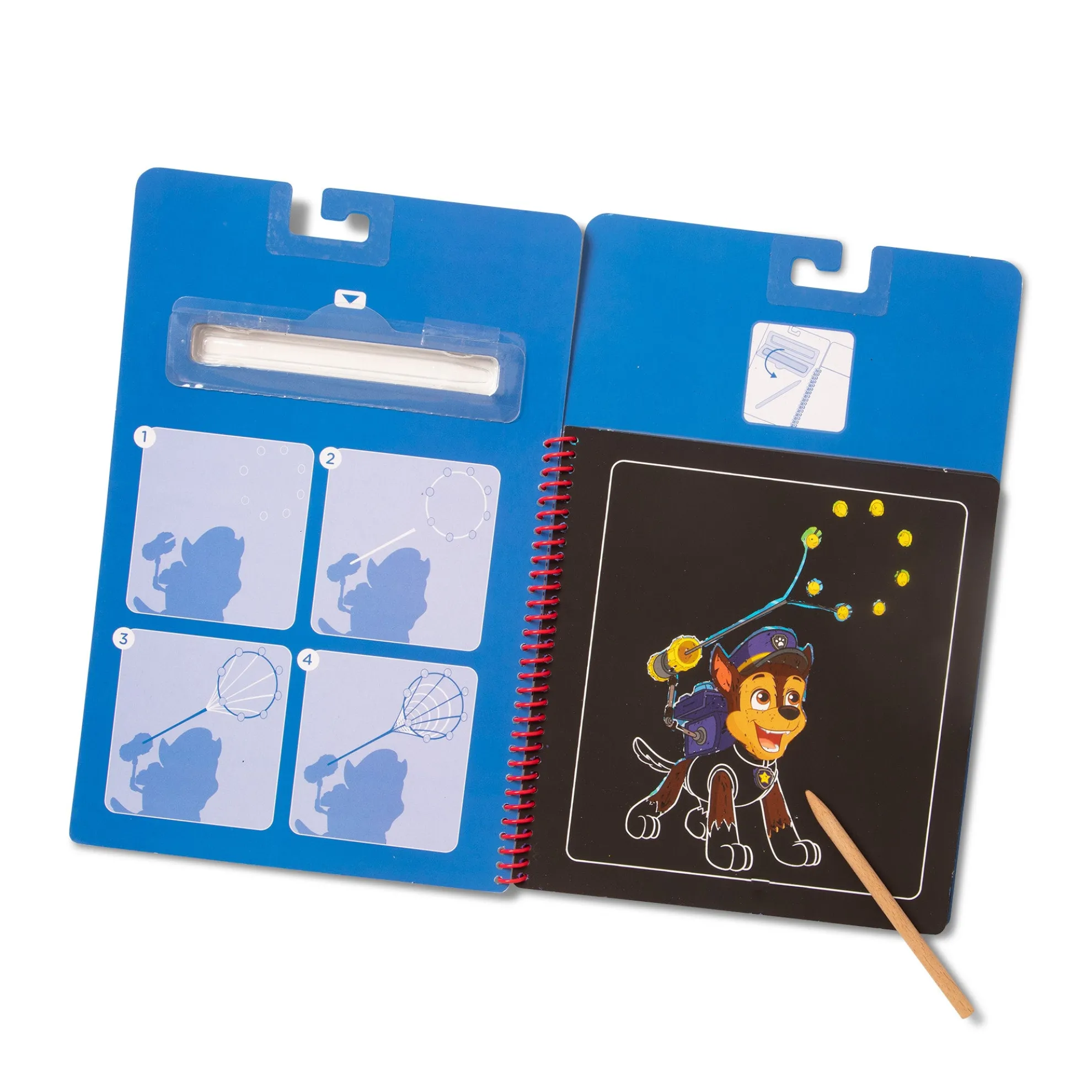 - 10 Scratch Art scenes featuring PAW Patrol pup Chase and friends with dot-to-dot or stencil activities on each page